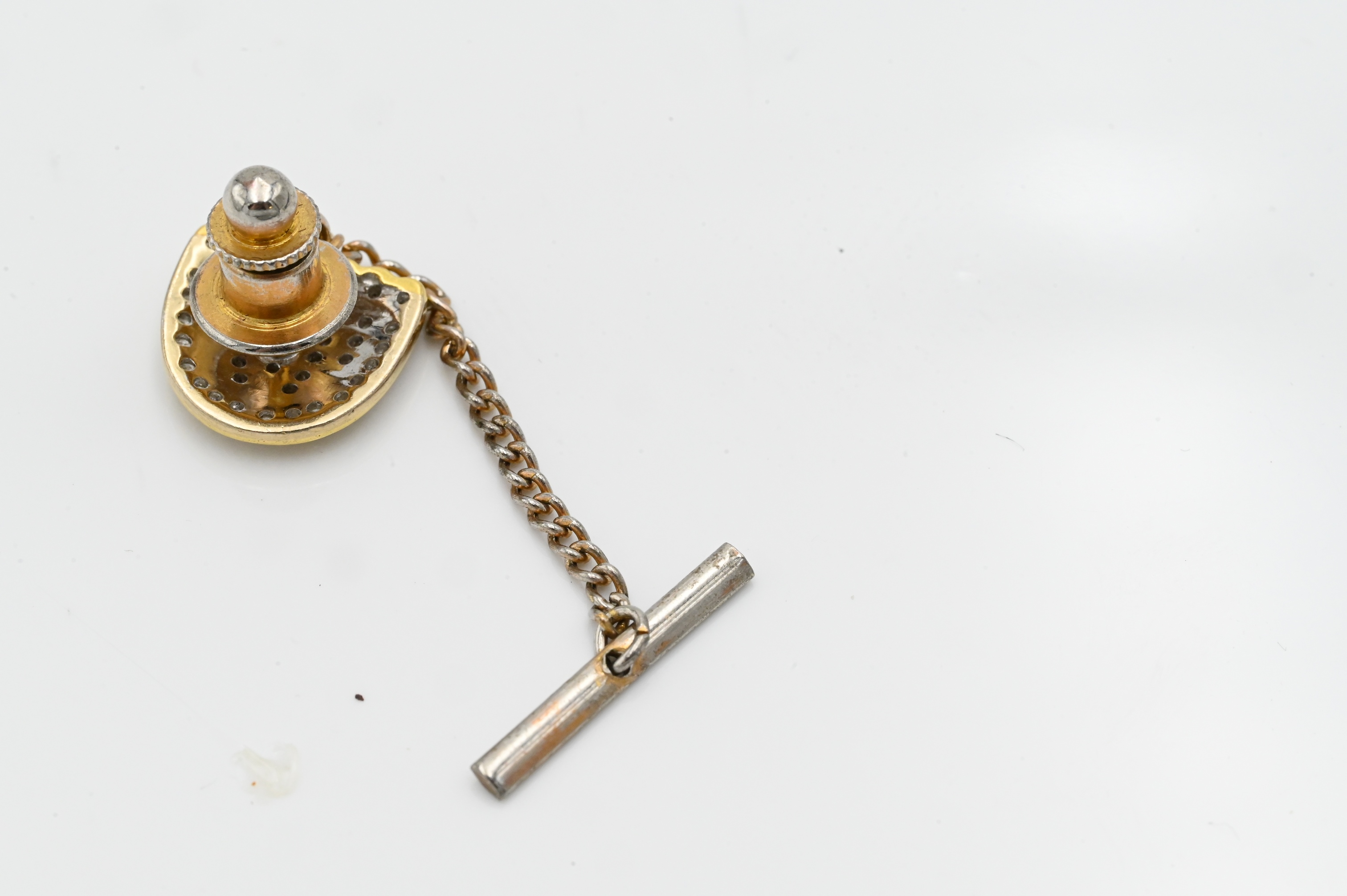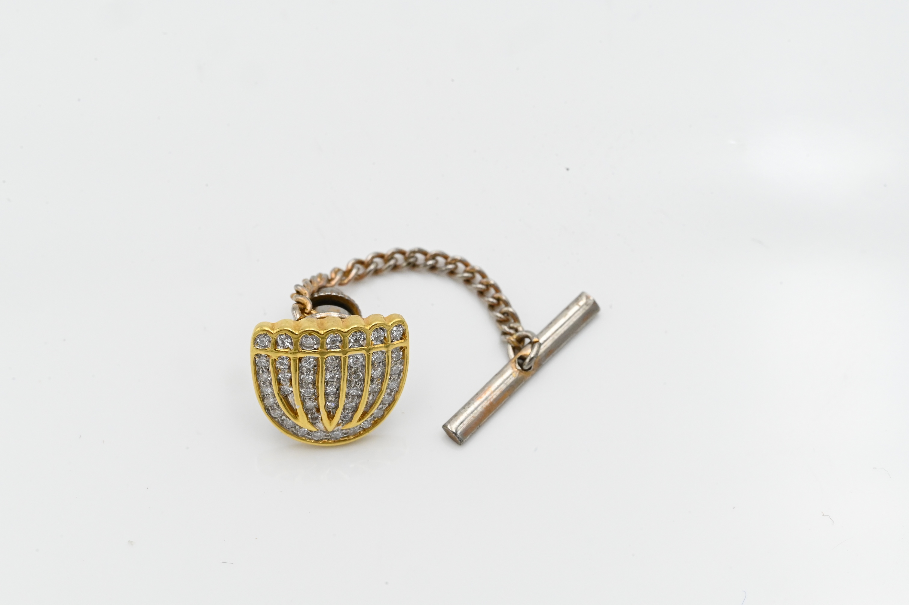 Lot 52: Menorah Style Diamond and 14K Yellow Gold Tie Tack