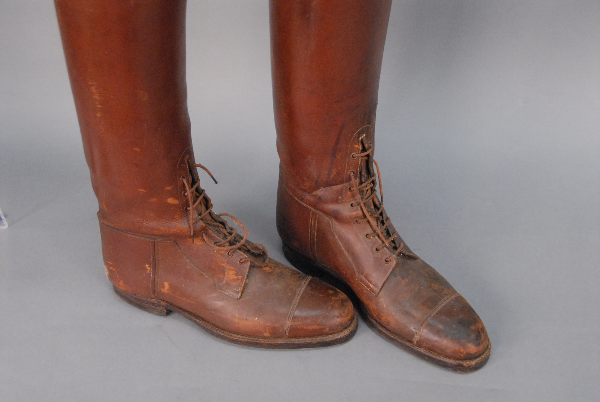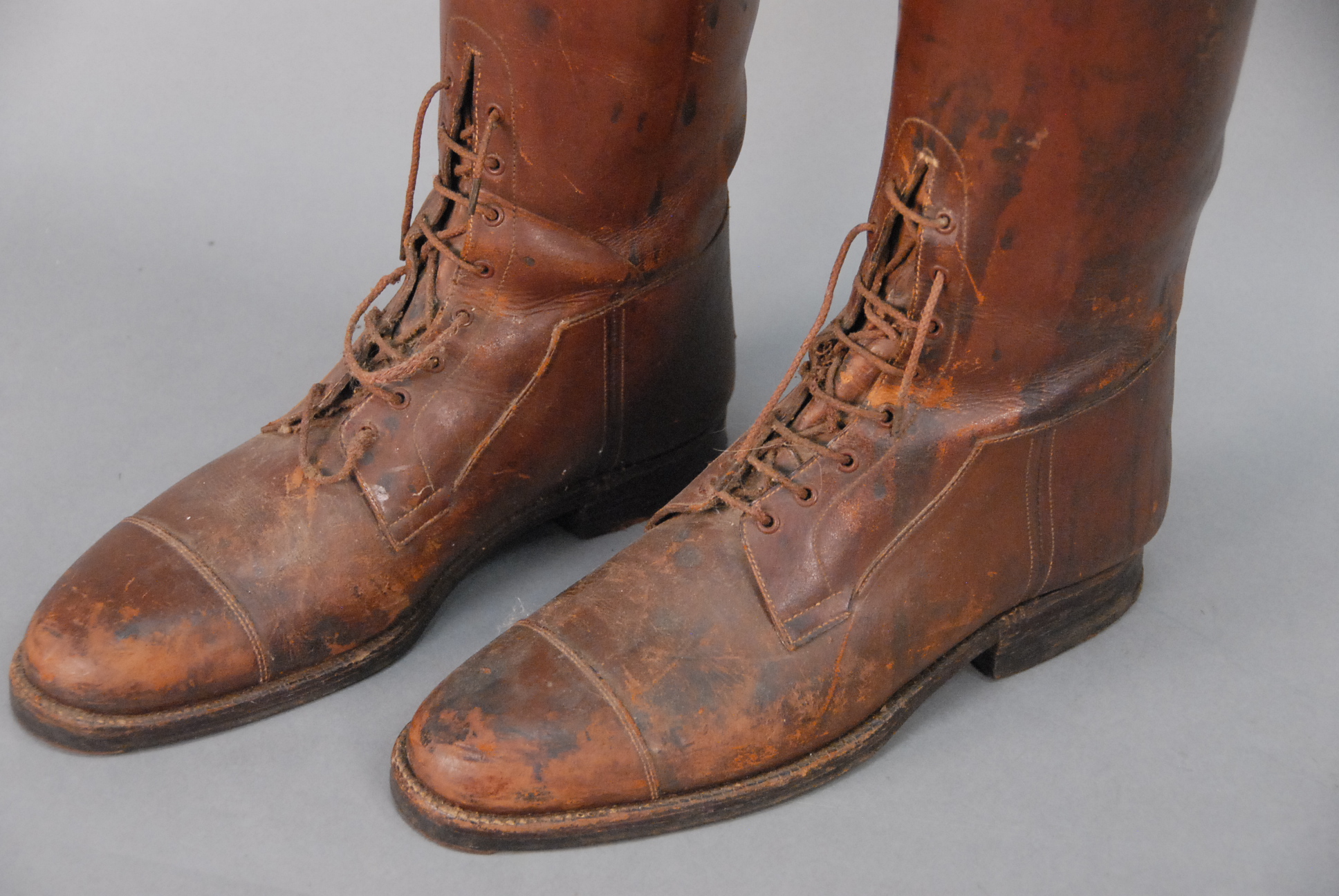 Lot 52: Pair of brown military riding boots, stretchers marked Lt. J. Joseph M. Rodgers Jr., Rogers was the first pilot of the first Air F…