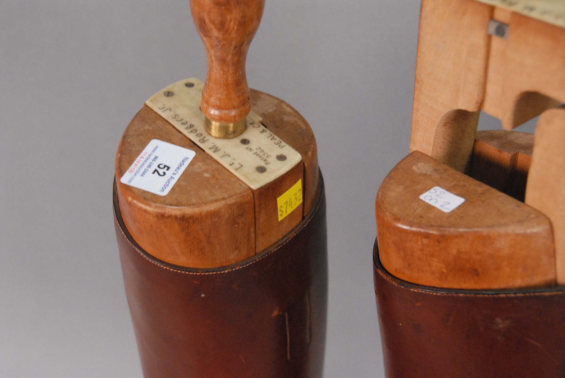 Pair of brown military riding boots, stretchers marked Lt. J. Joseph M. Rodgers Jr., Rogers was the first pilot of the first Air Force One in 1950’s. ht. 21 1/2 in.