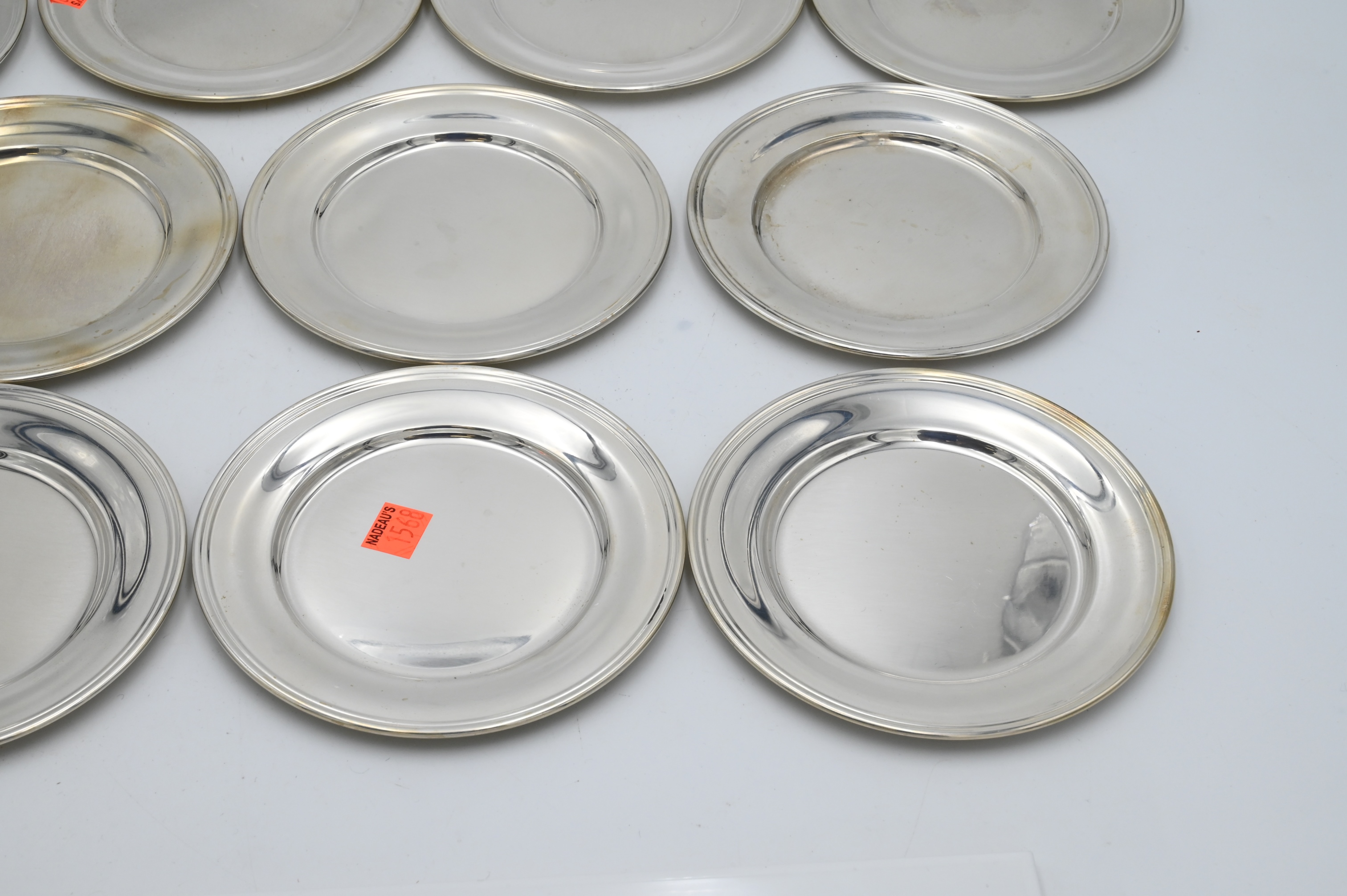 Set of 10 Sterling Silver Bread Plates, diameter 6 inches, 27.8 t.oz.