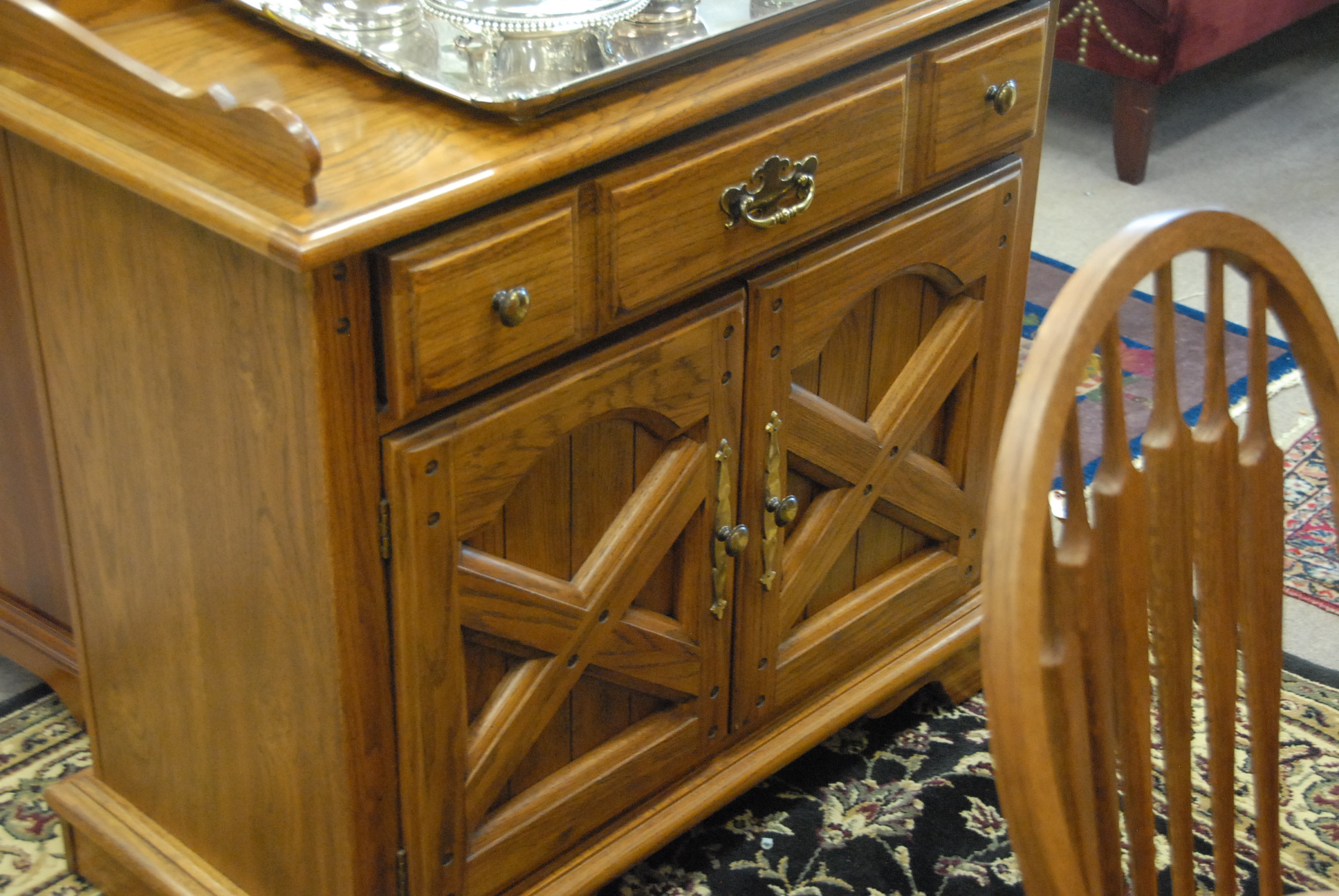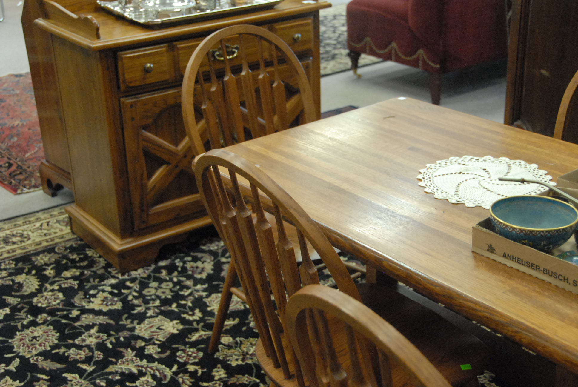 Lot 52: Six piece oak set with table, four chairs, and server, ht. 30in. lg. 48in. wd. 30in.