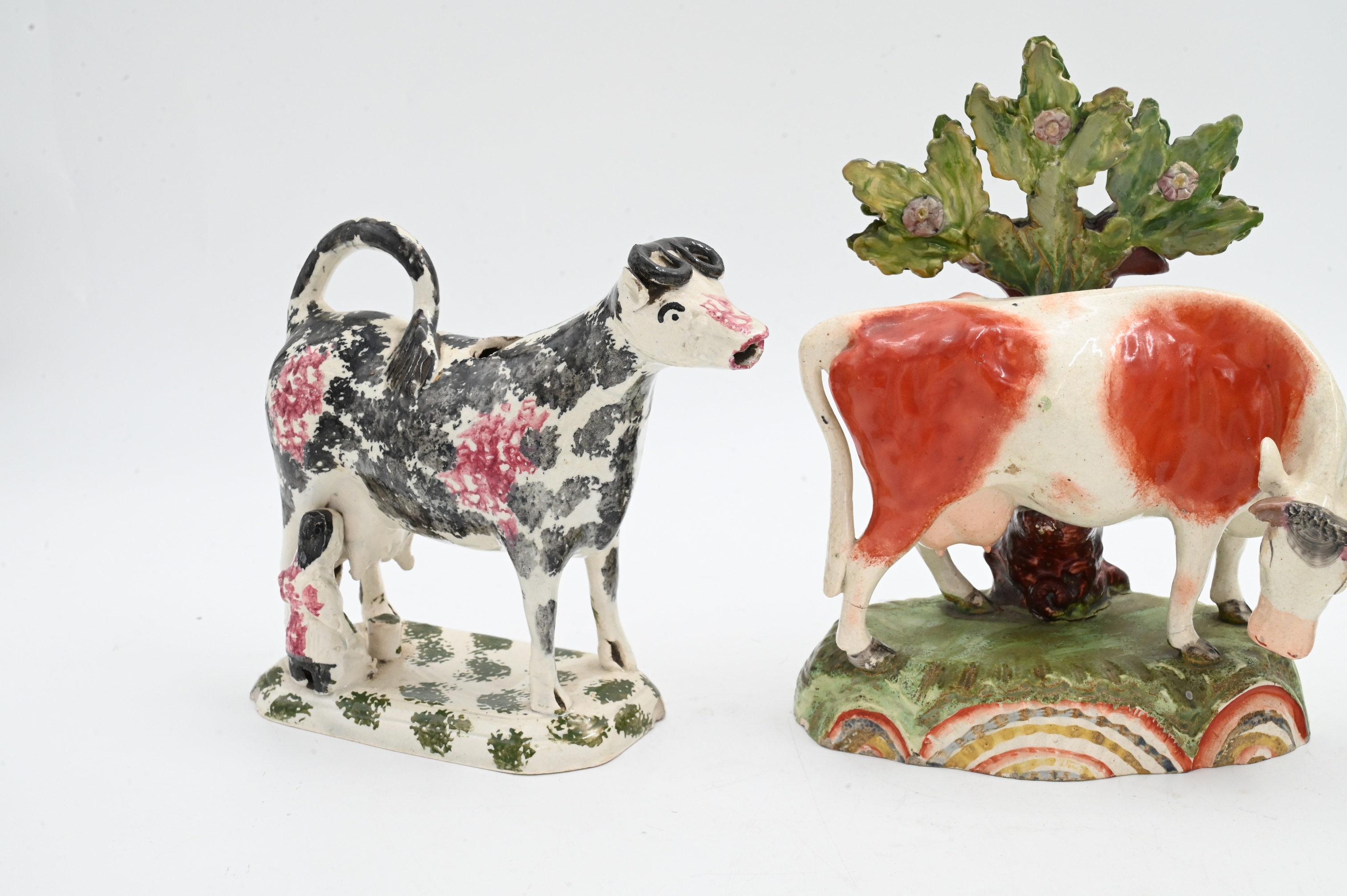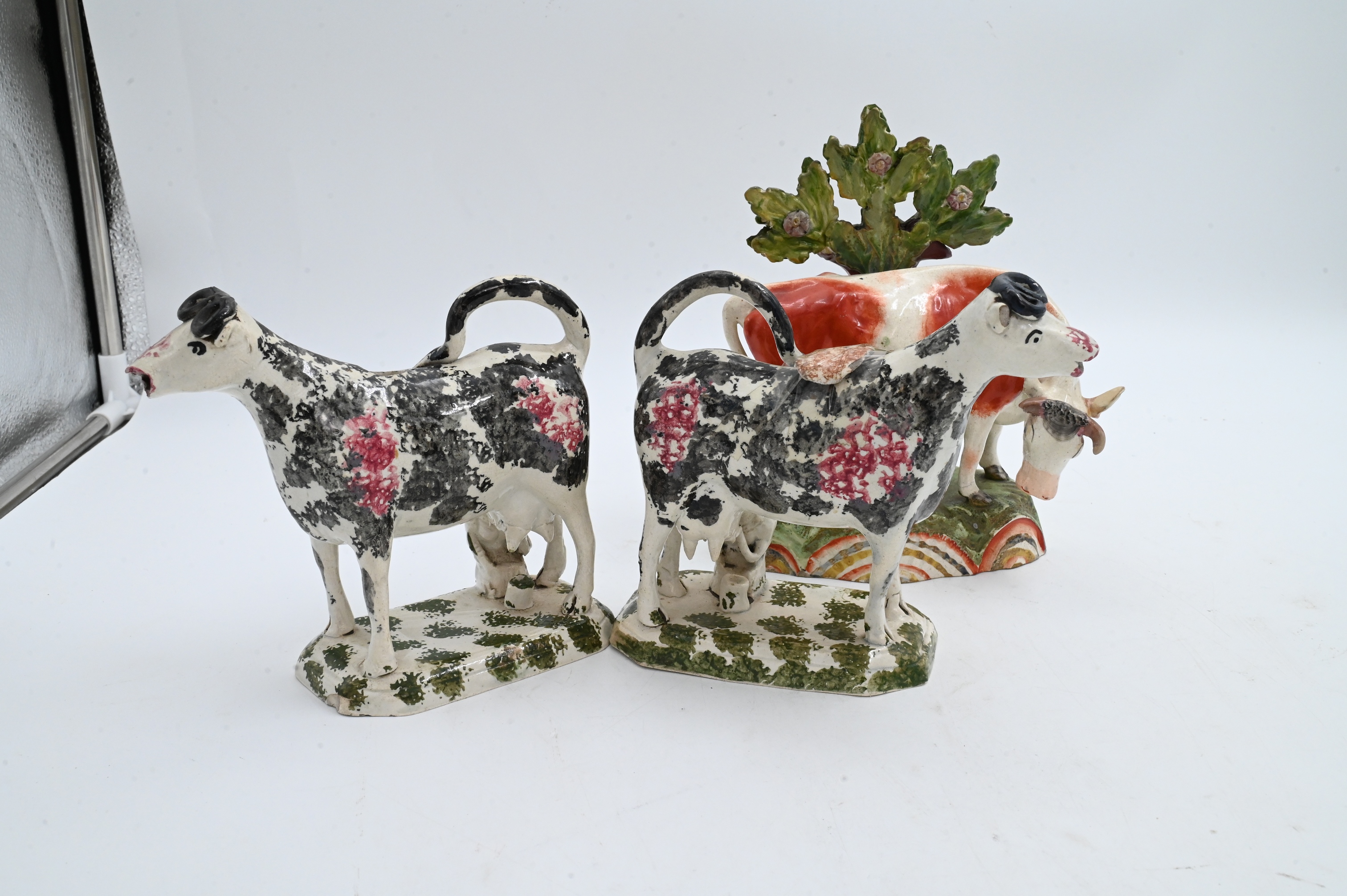 Lot 52: Three Piece Early Staffordshire Cow Pearlware Group