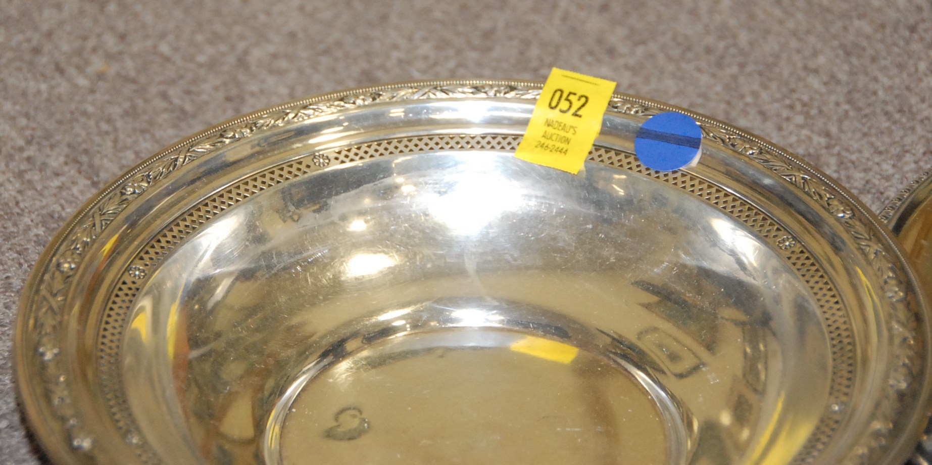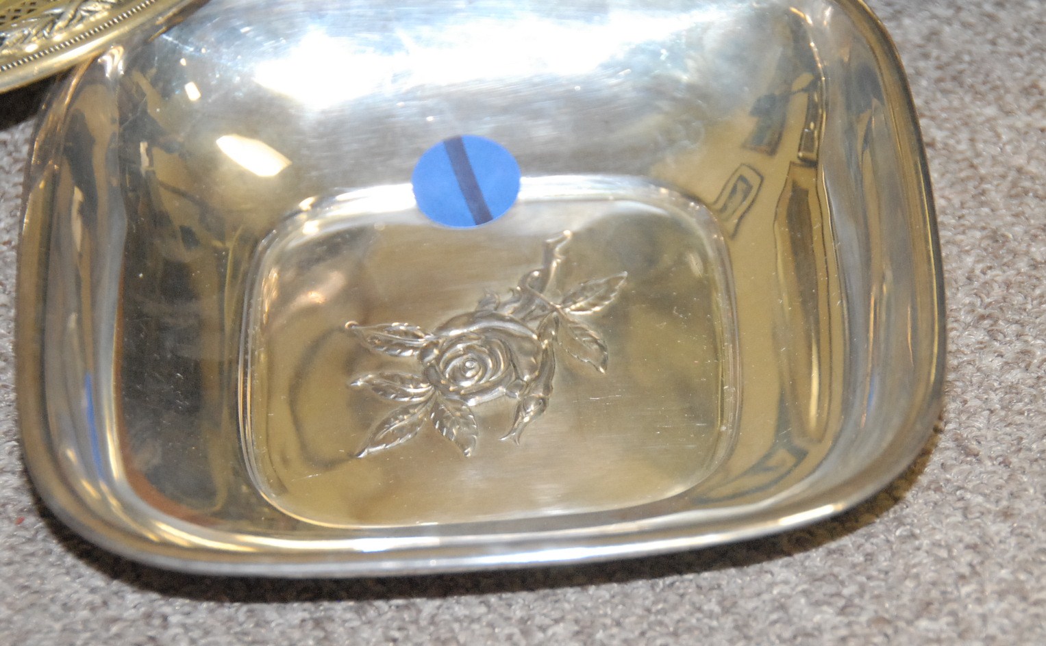 Three sterling silver pieces a bowl, plate, and small square bowl, 19.6 t oz.
