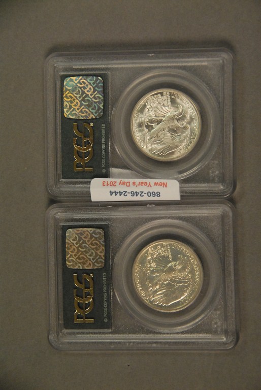 Two half dollars 1935-D PCGS 64 and 1940 PCGS proof 63.