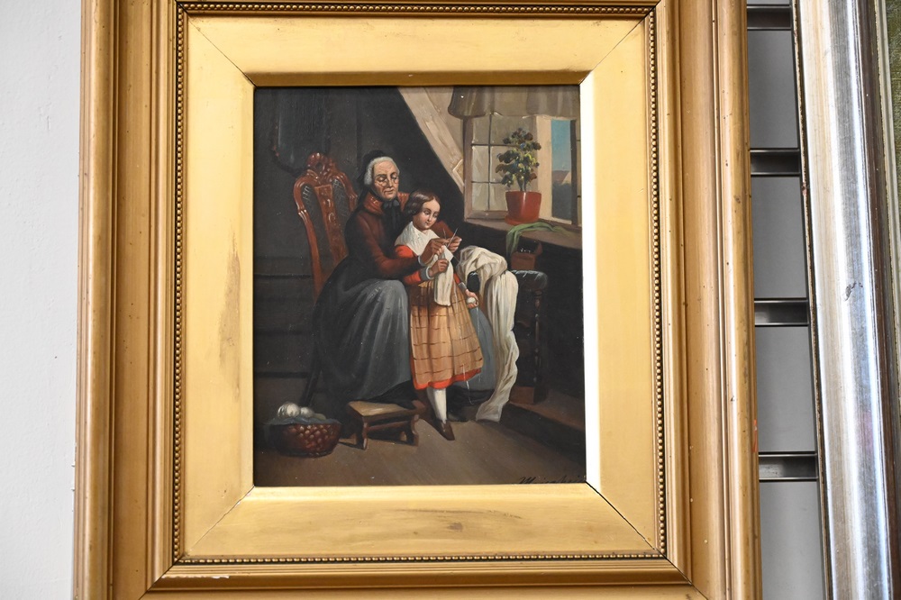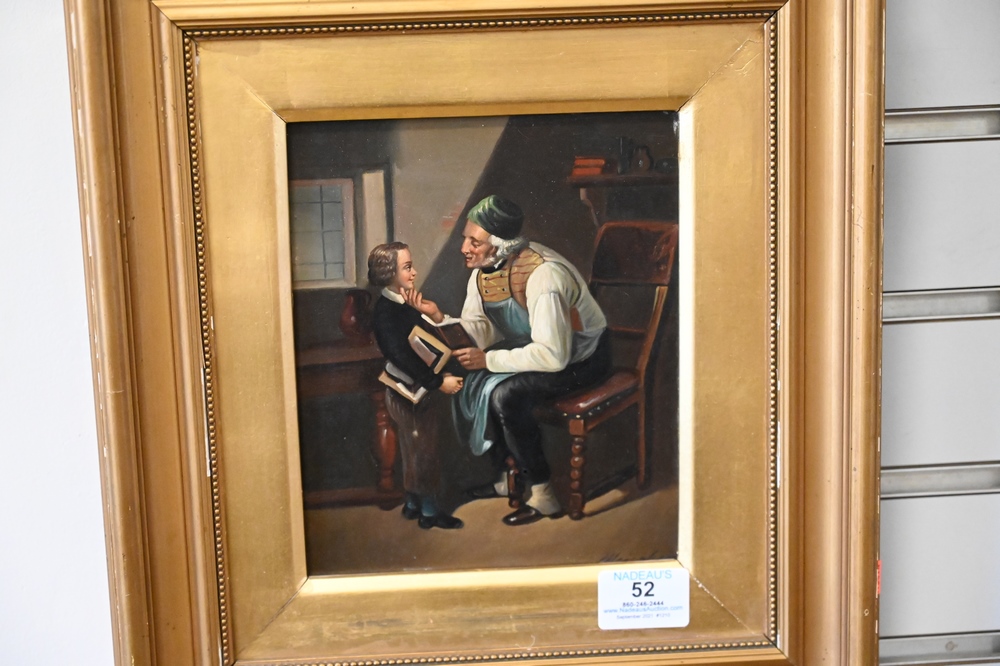 Two Piece Lot, to include Continental School (20th Century), Interior Scenes, oil on tin, both signed indistinctly lower right, in m…