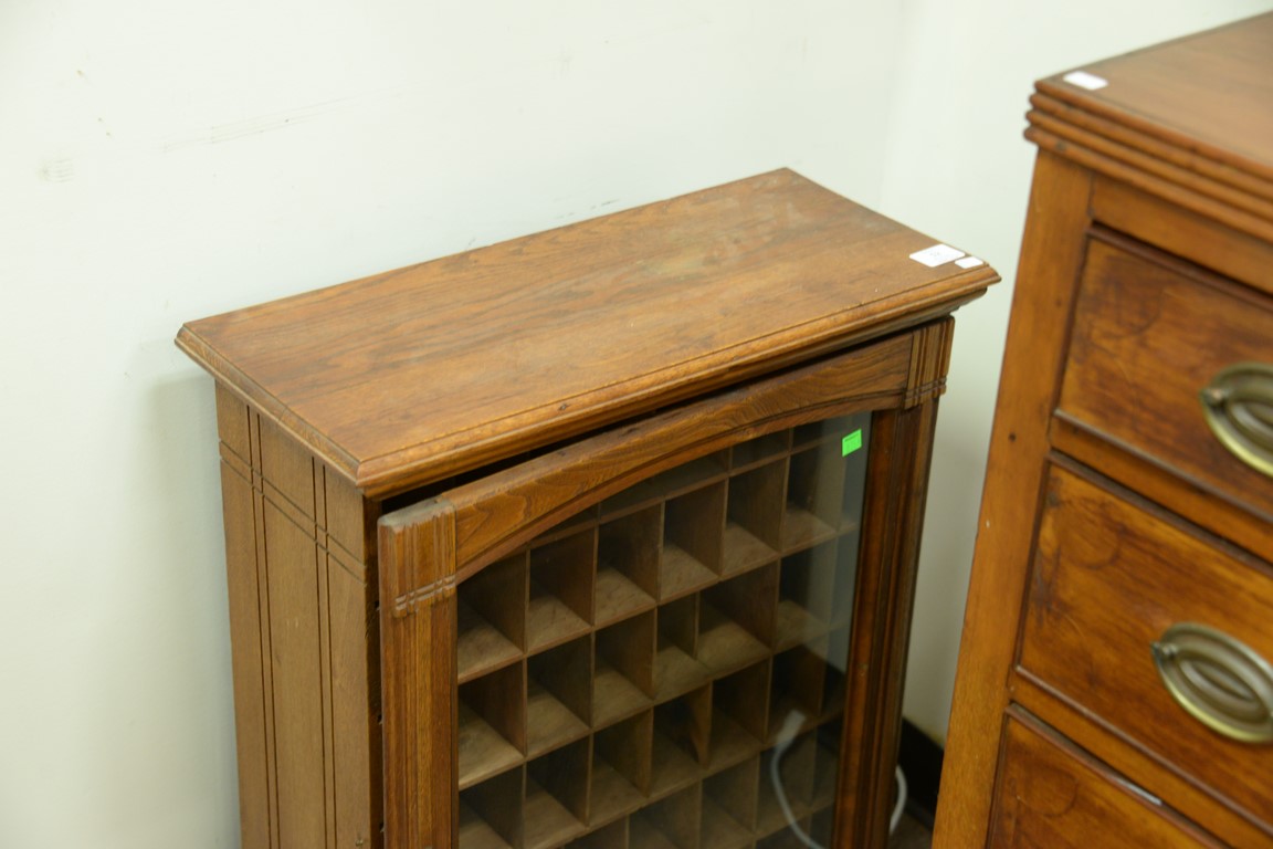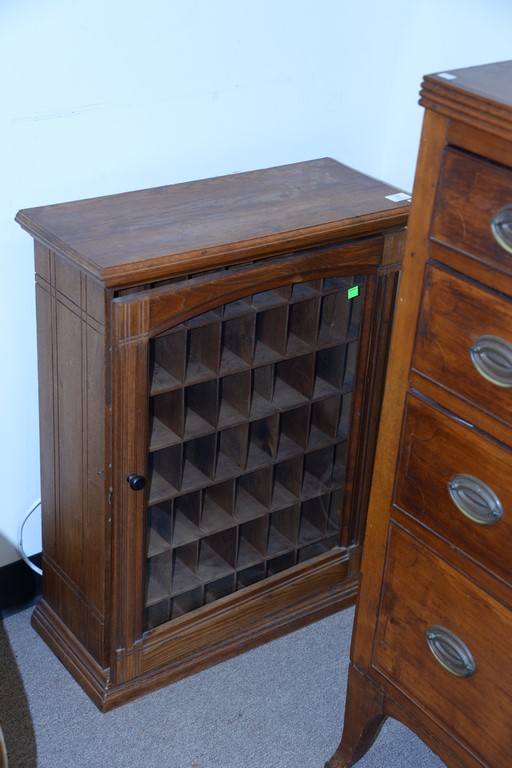 Victorian one door cabinet with pigeon holes. ht. 30in., wd. 23in.