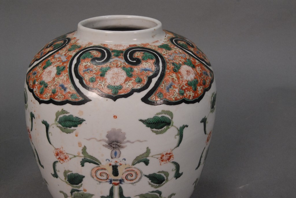 Famille Verte jar with four character mark on bottom. ht. 11in.