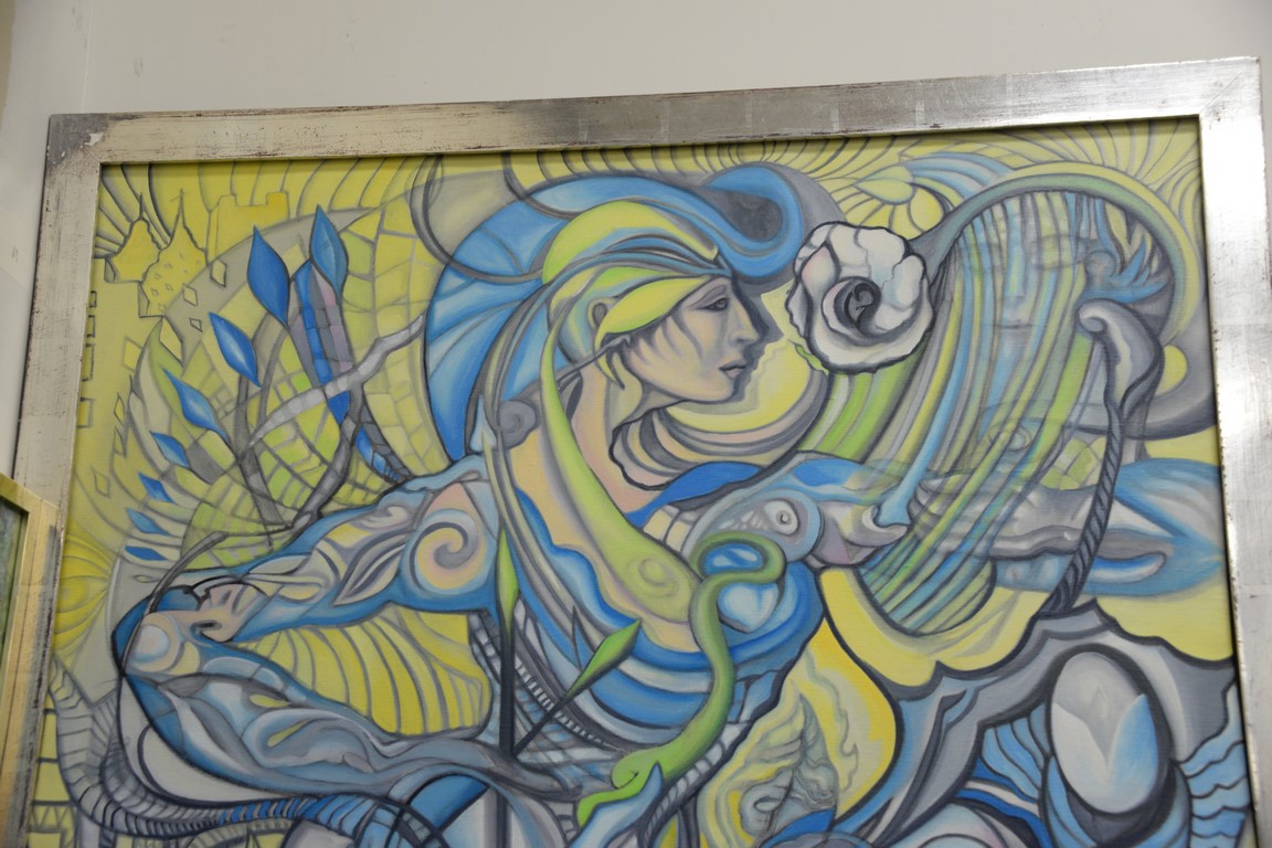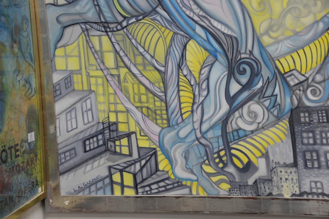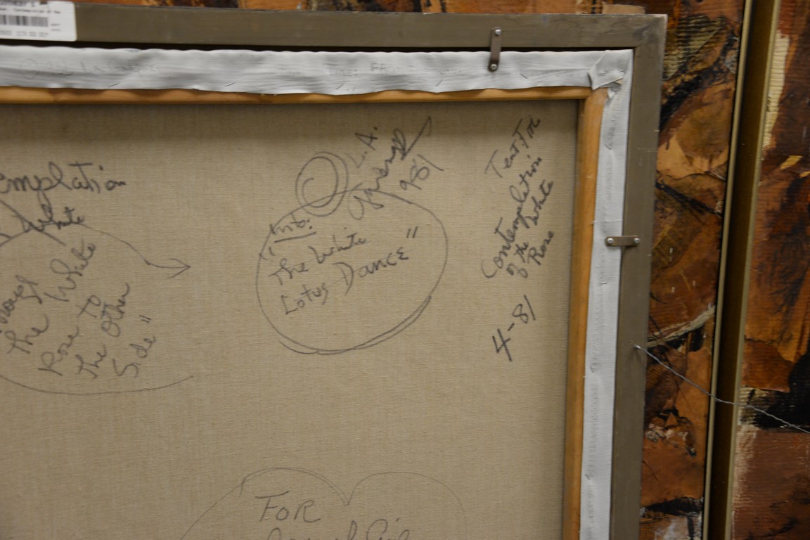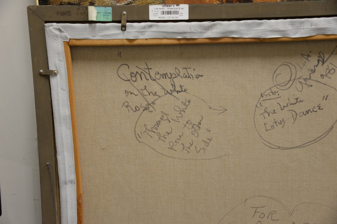 Lot 520: Linda Gardner oil on canvas Contemplation of the White Rose signed and dated lower left: 1981 L.A. Gardner 53 1/4 x 39 1/2 Pro…