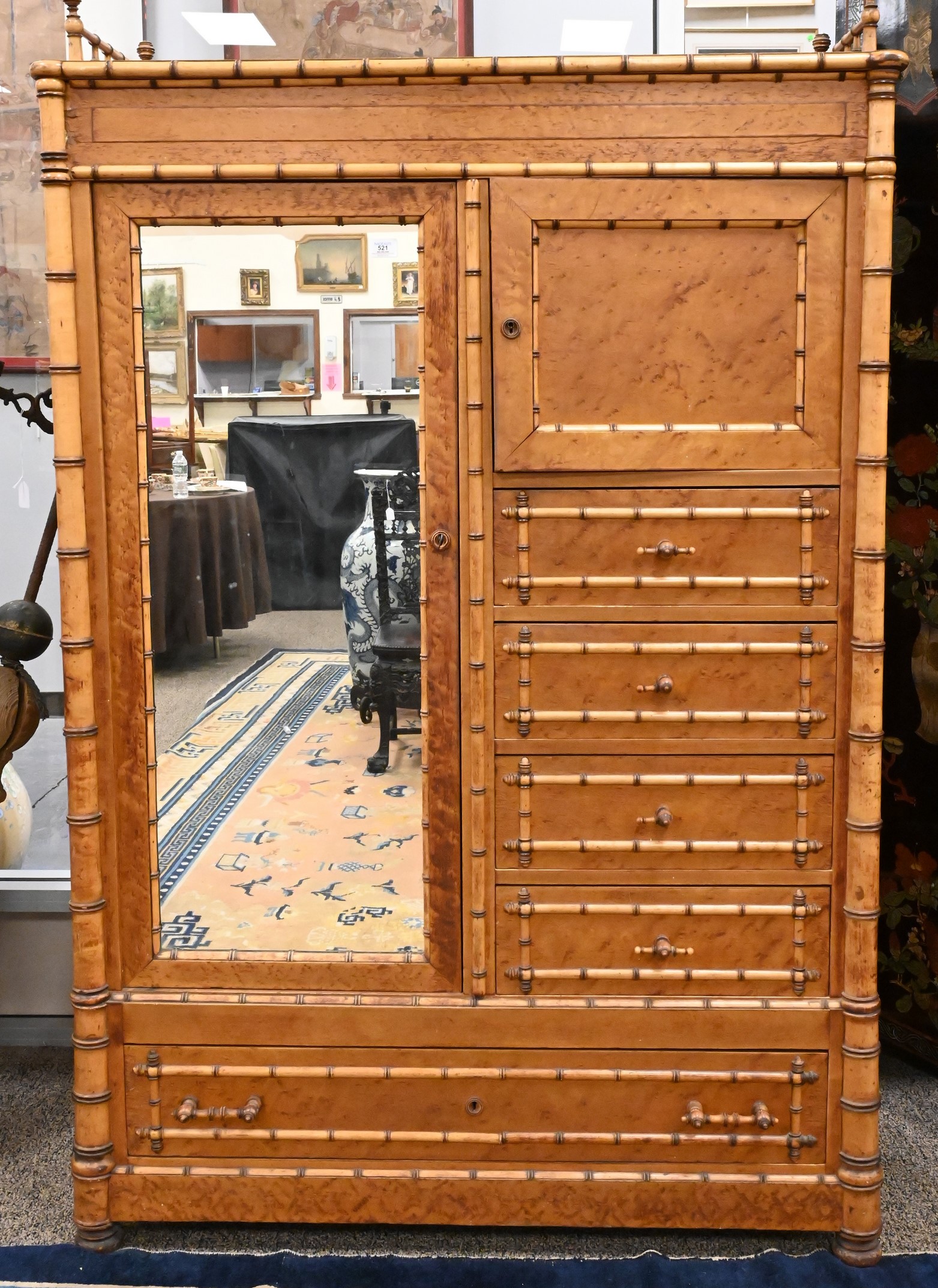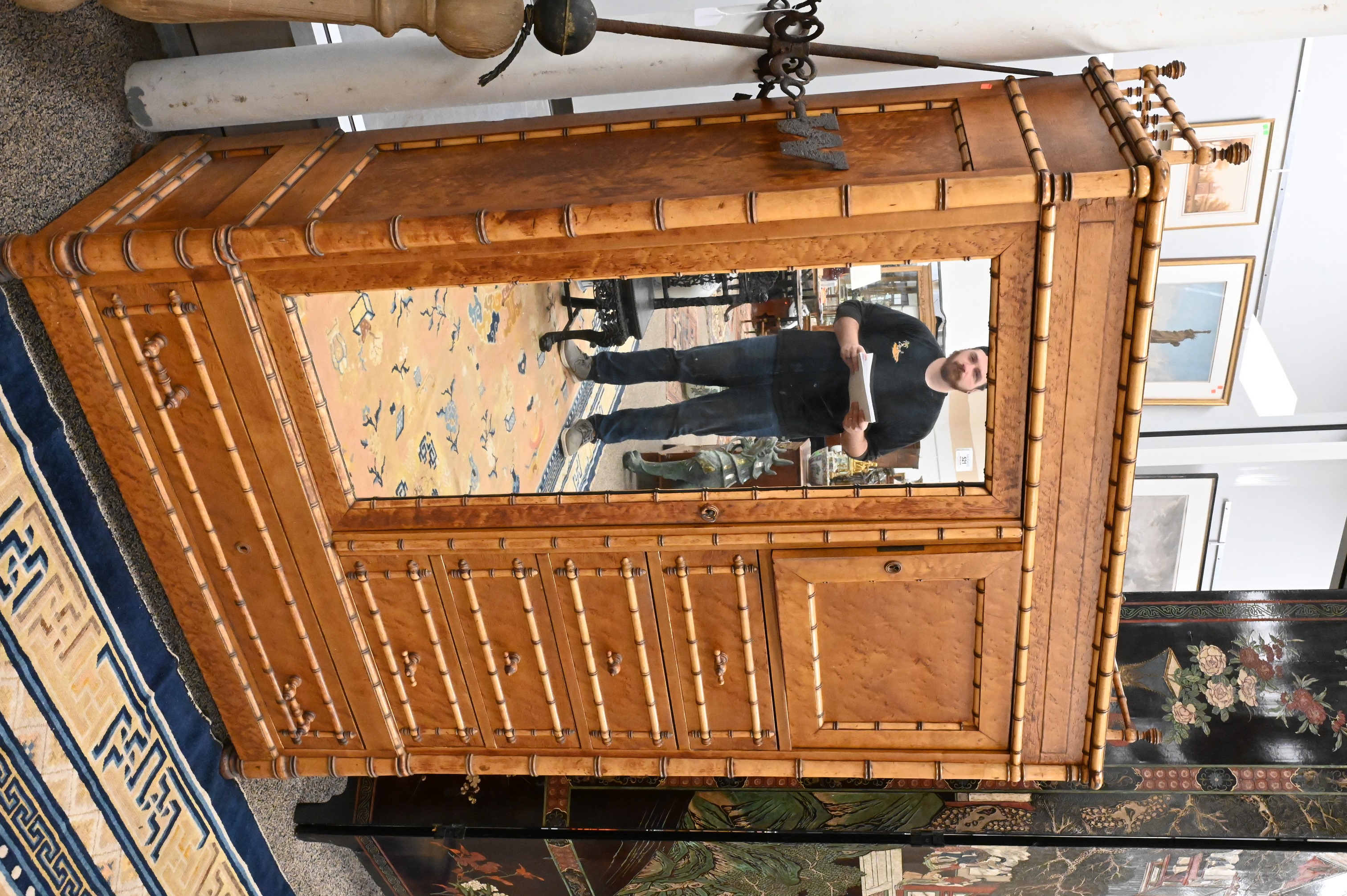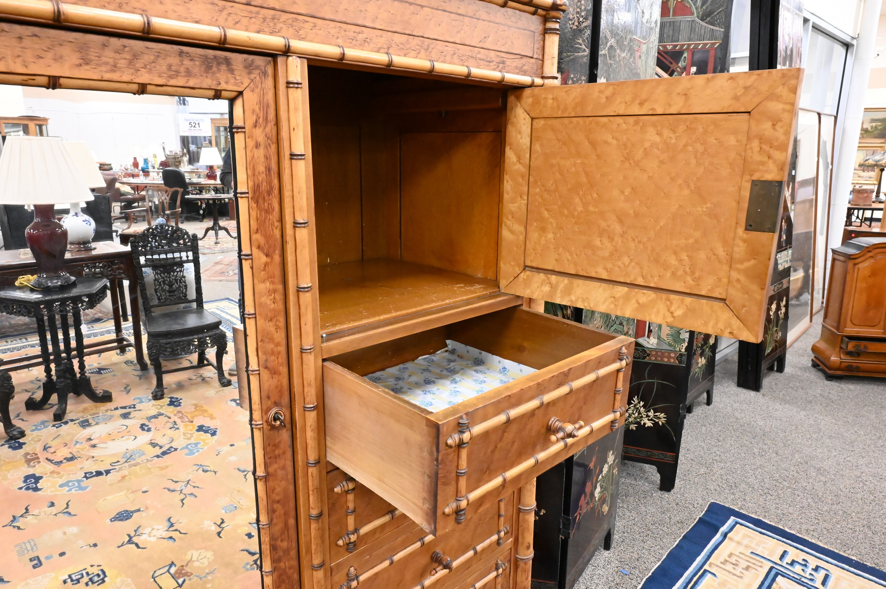 Lot 521: Attributed to Horner Faux Bamboo and Birds Eye Maple Chifferobe