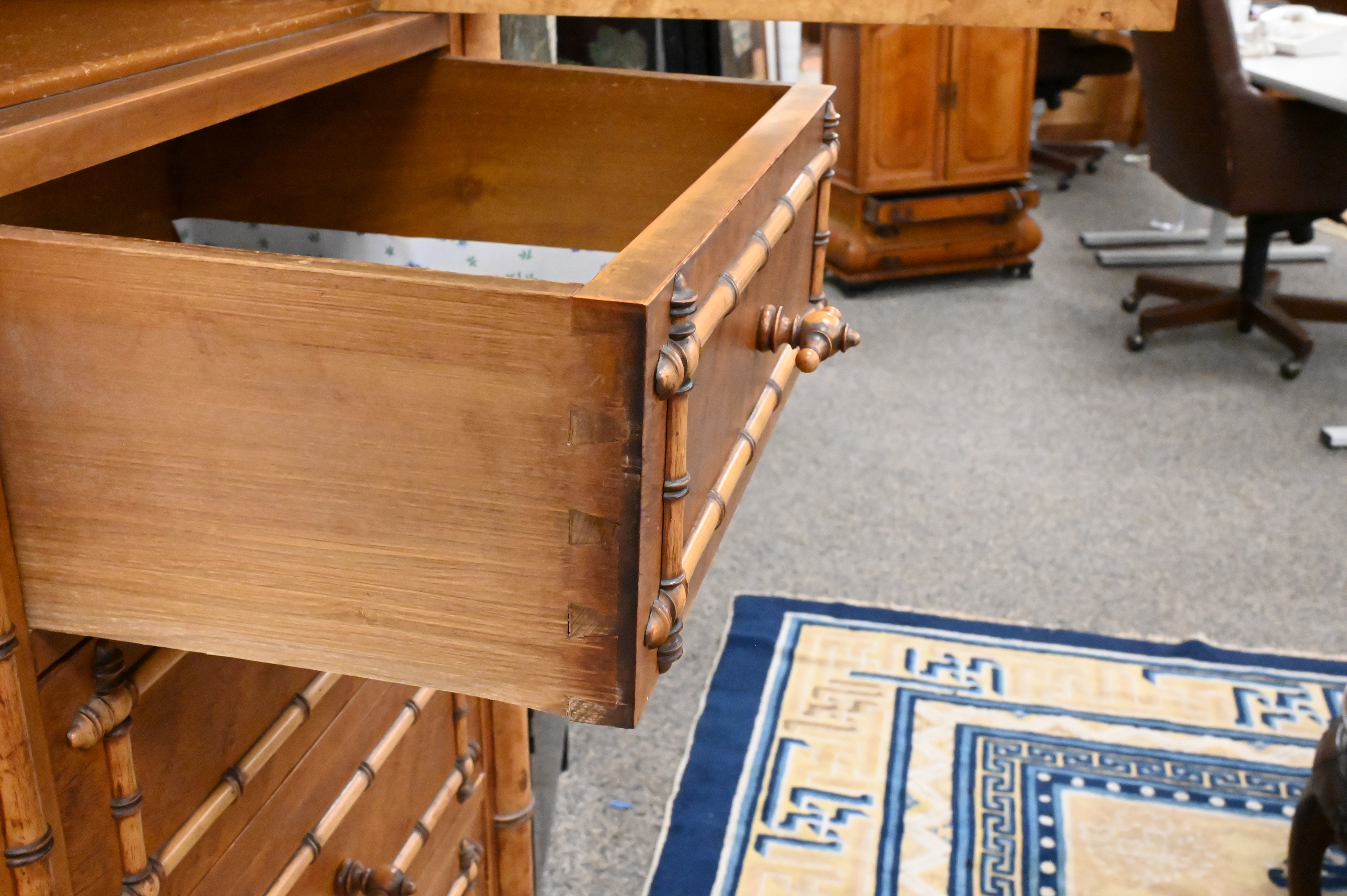 Attributed to Horner Faux Bamboo and Birds Eye Maple Chifferobe
