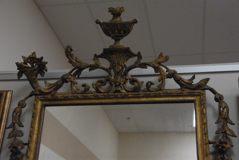 Continental gilt mirror with urn top, 19th century minor losses. ht. 56in.