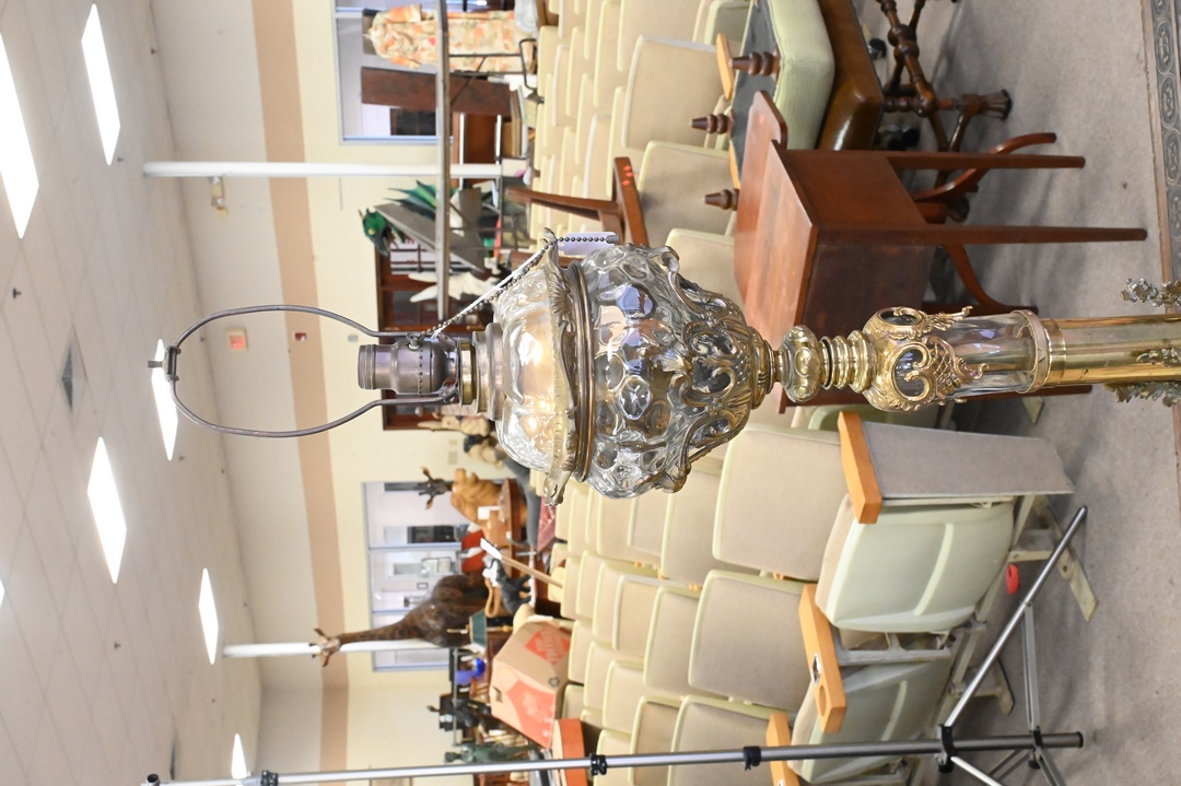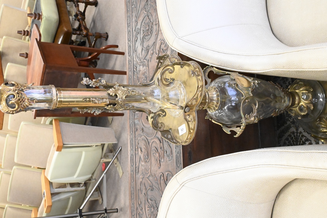 French Brass and Crystal Floor Lamp, height 70 inches.