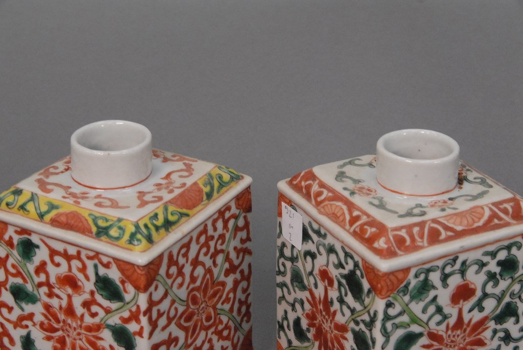 Pair of Chinese porcelain tea caddies with covers. ht. 5 3/4in.