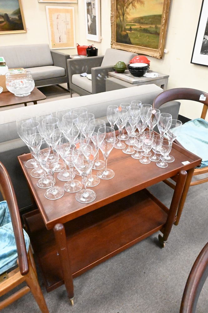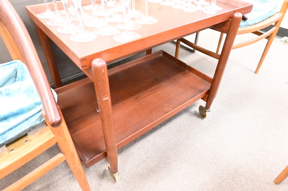 Poul Volther Teak Two Tier Bar Cart, height 23 inches, top 19″ x 29″.
