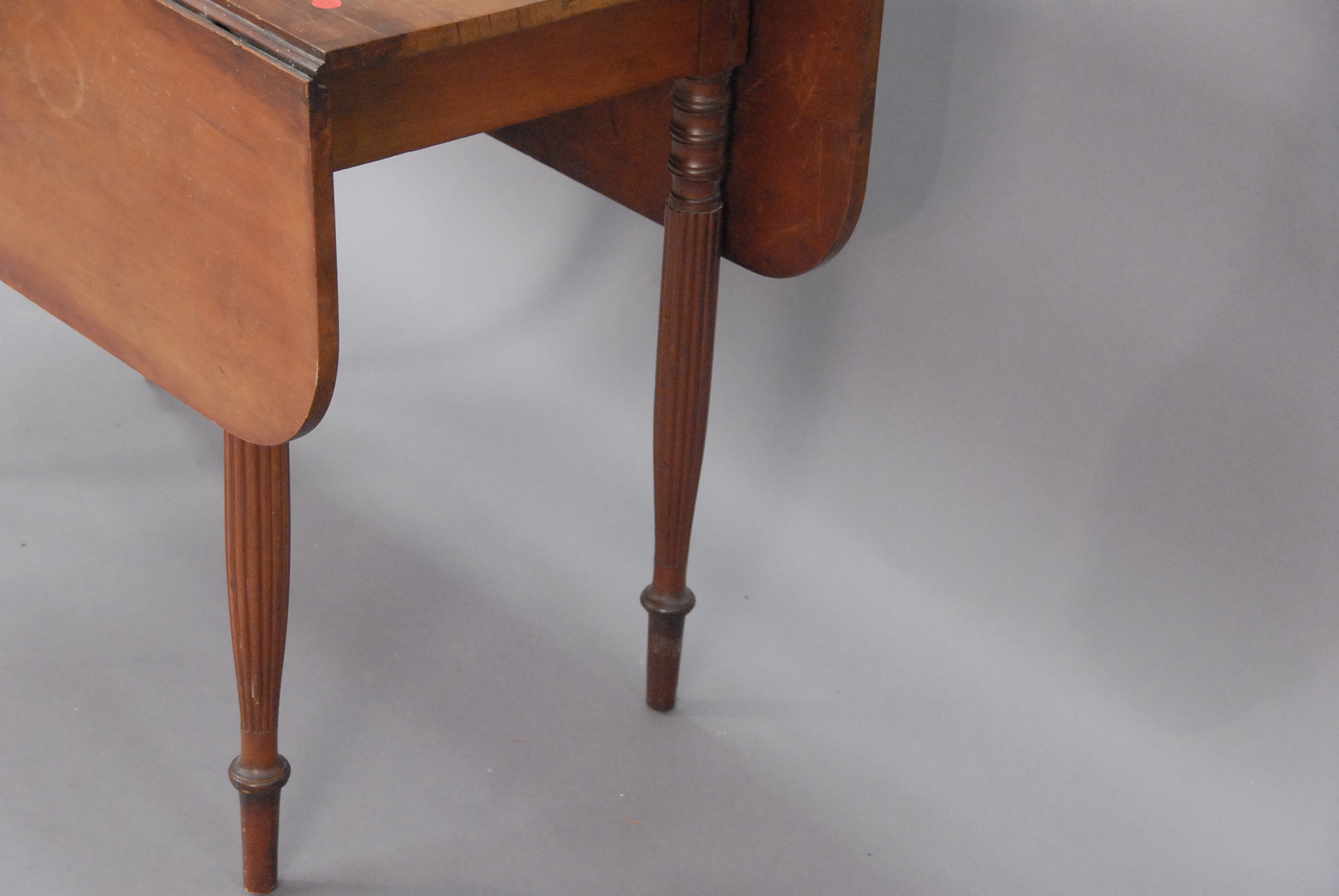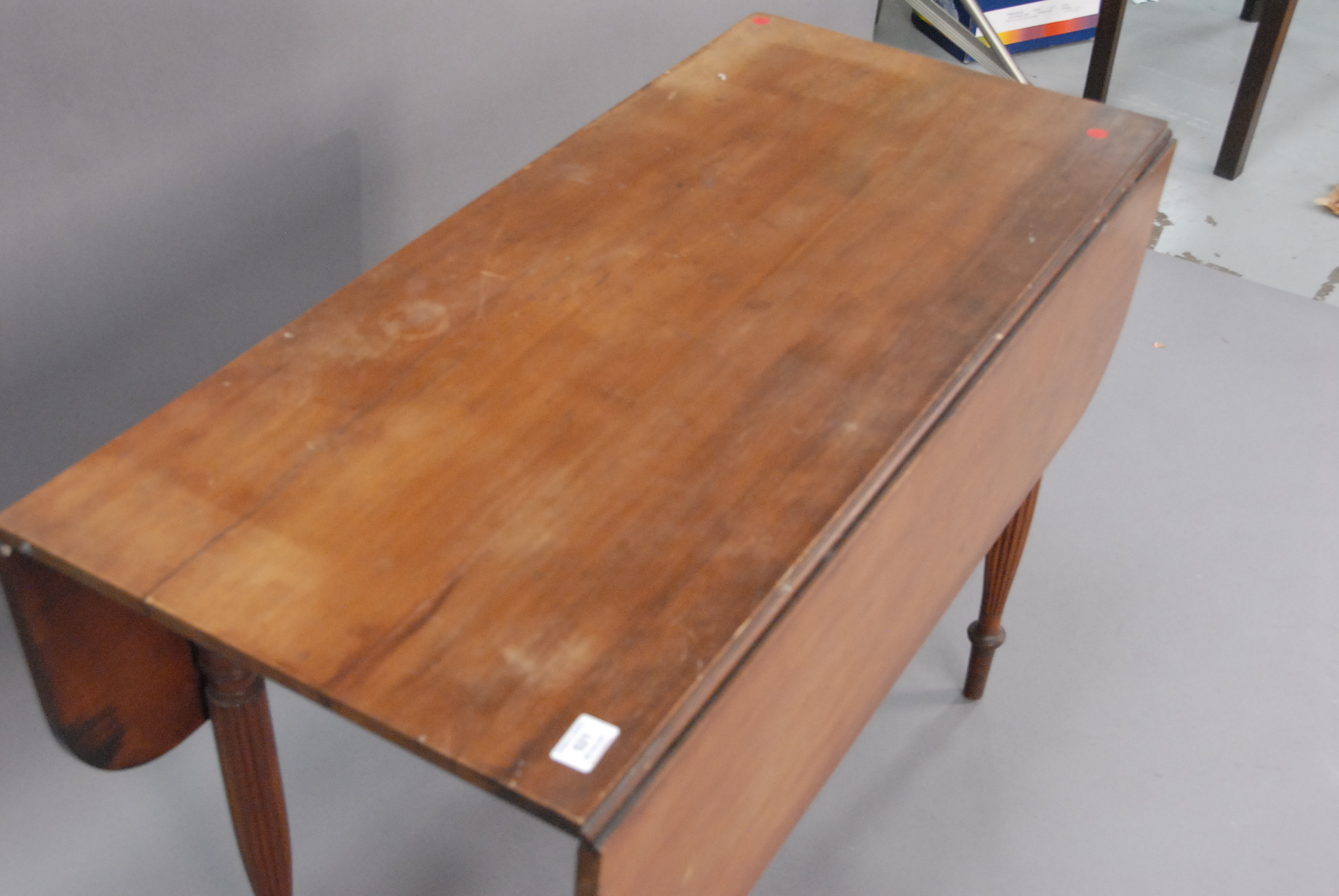 Sheraton drop leaf table on fluted legs.