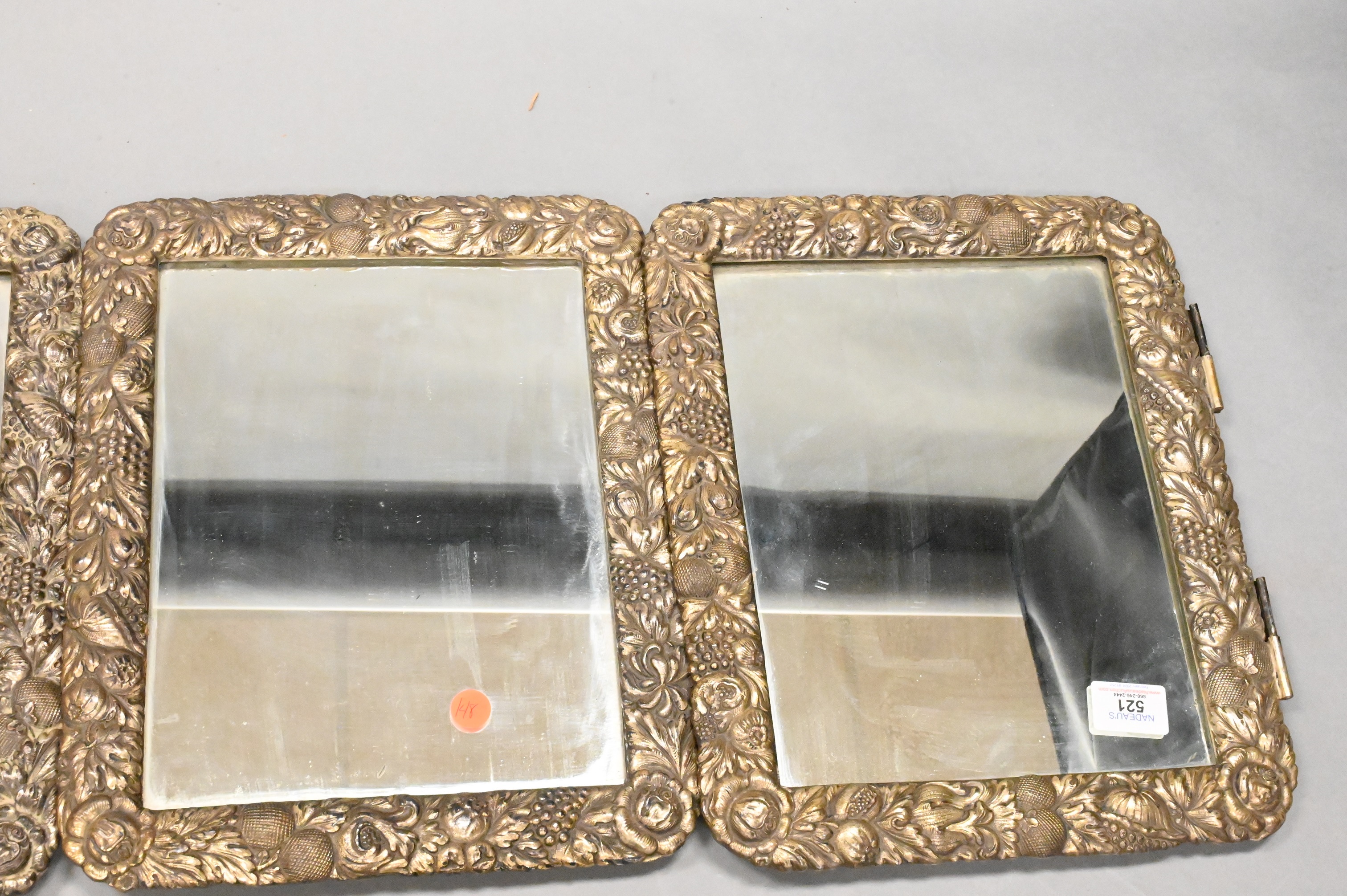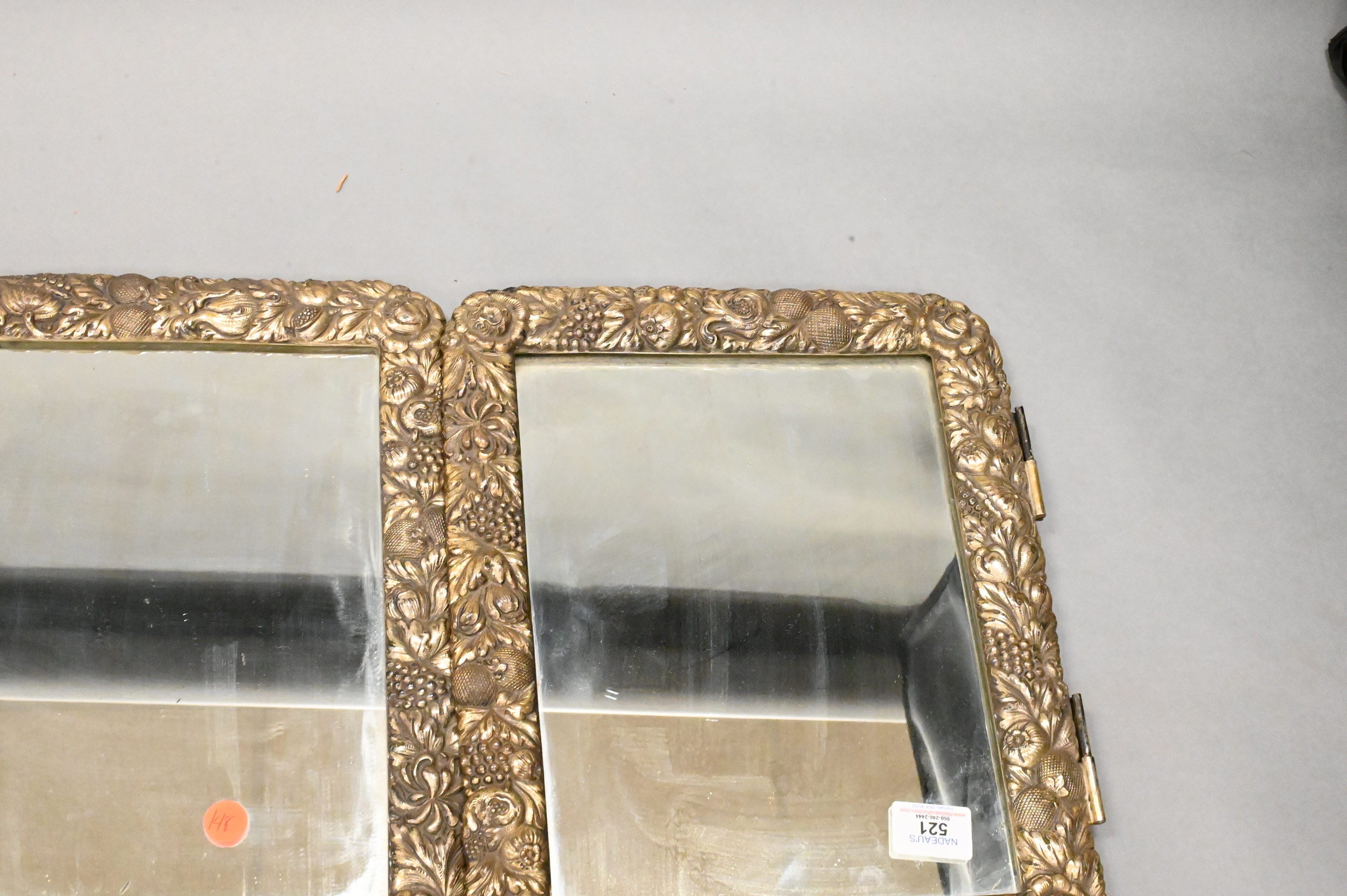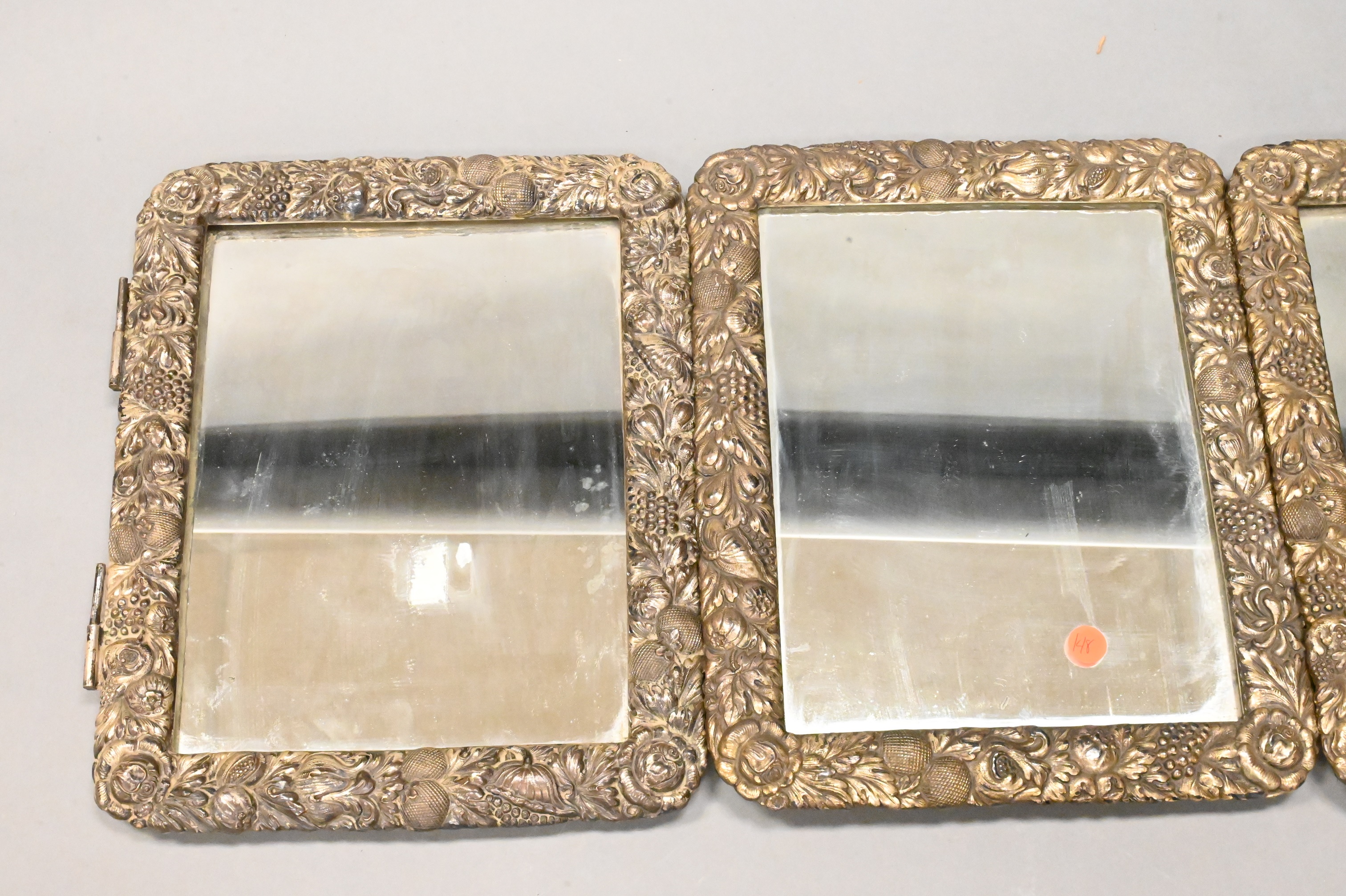 Lot 521: Tri Fold Repousse Silver Plated Mirror