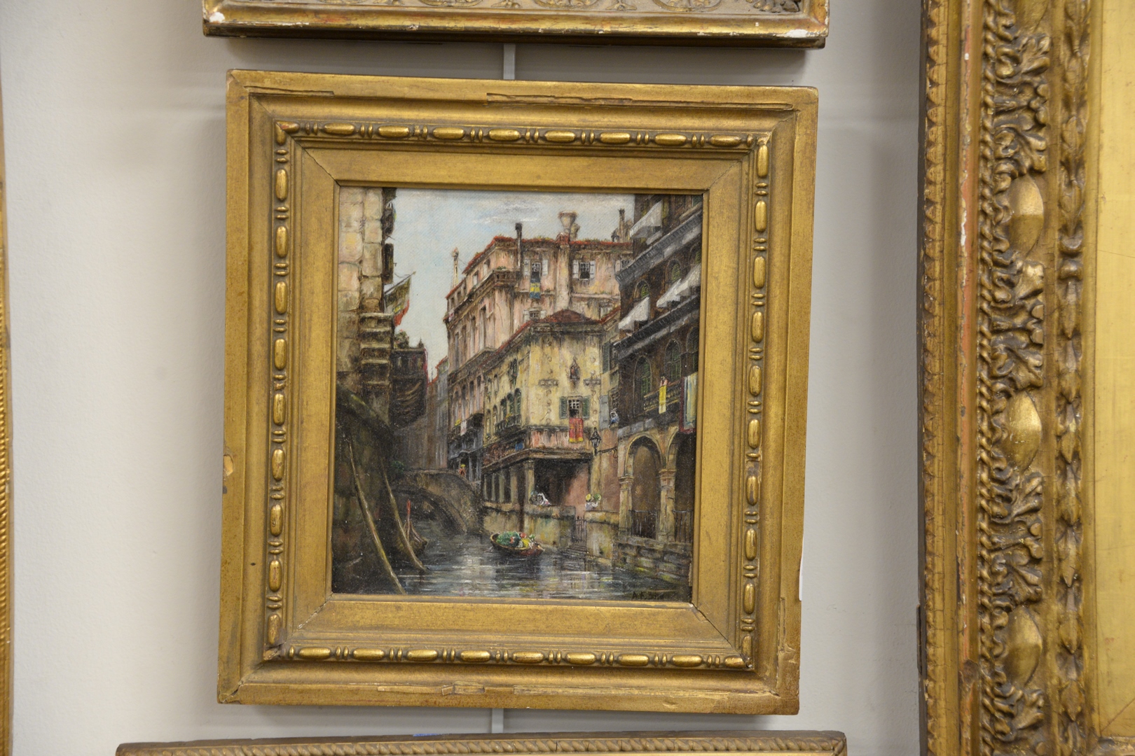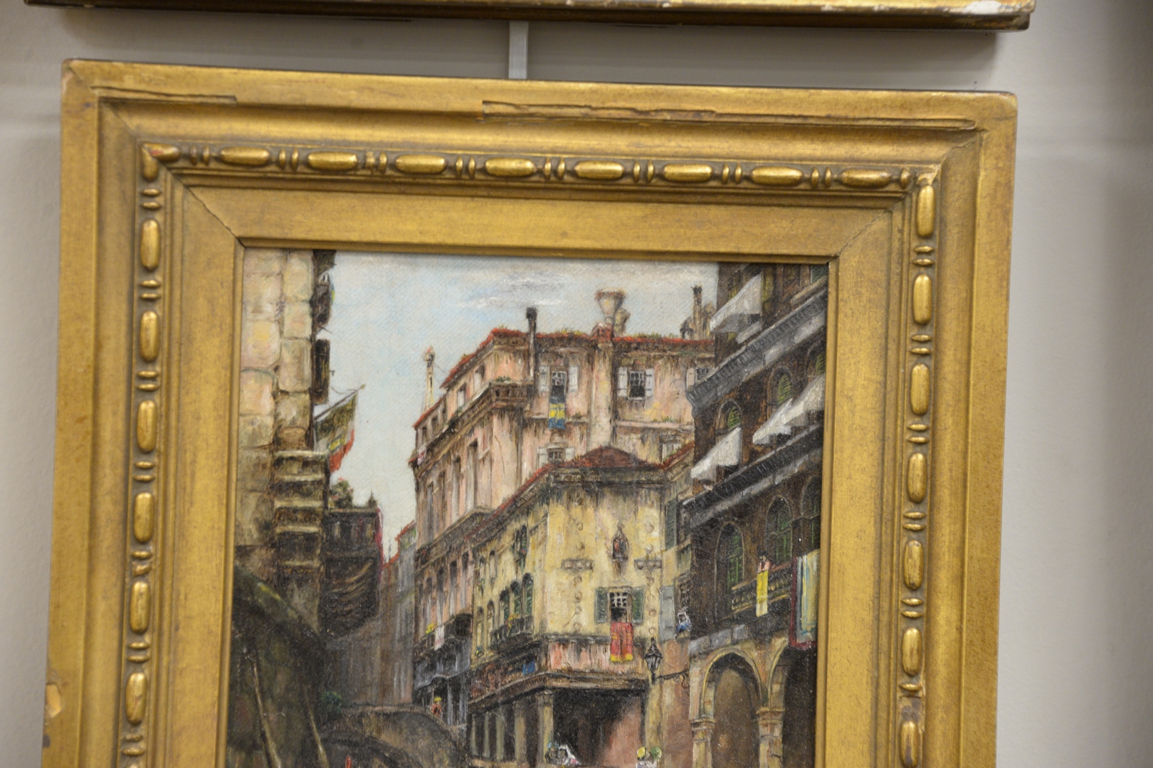 Lot 522: Andrew F. Bunner American, 1841 – 1897, Venetian canal, oil on wax lined canvas, signed lower right A.F. Bunner 9 1/2 x 7 3/4.