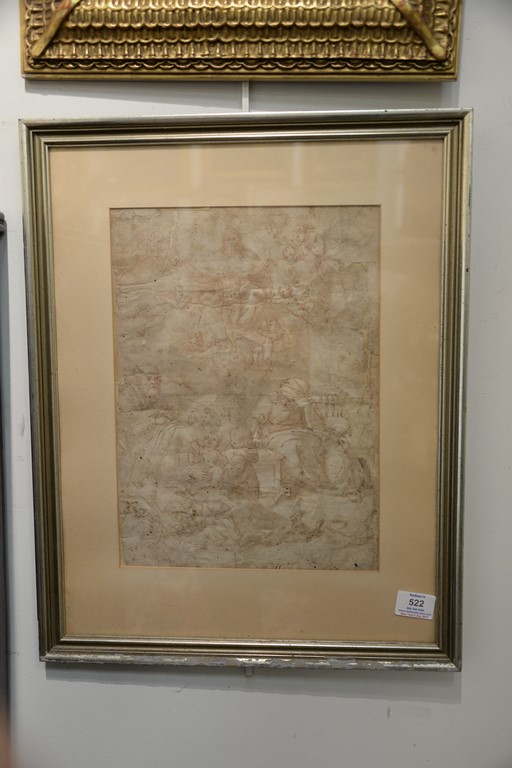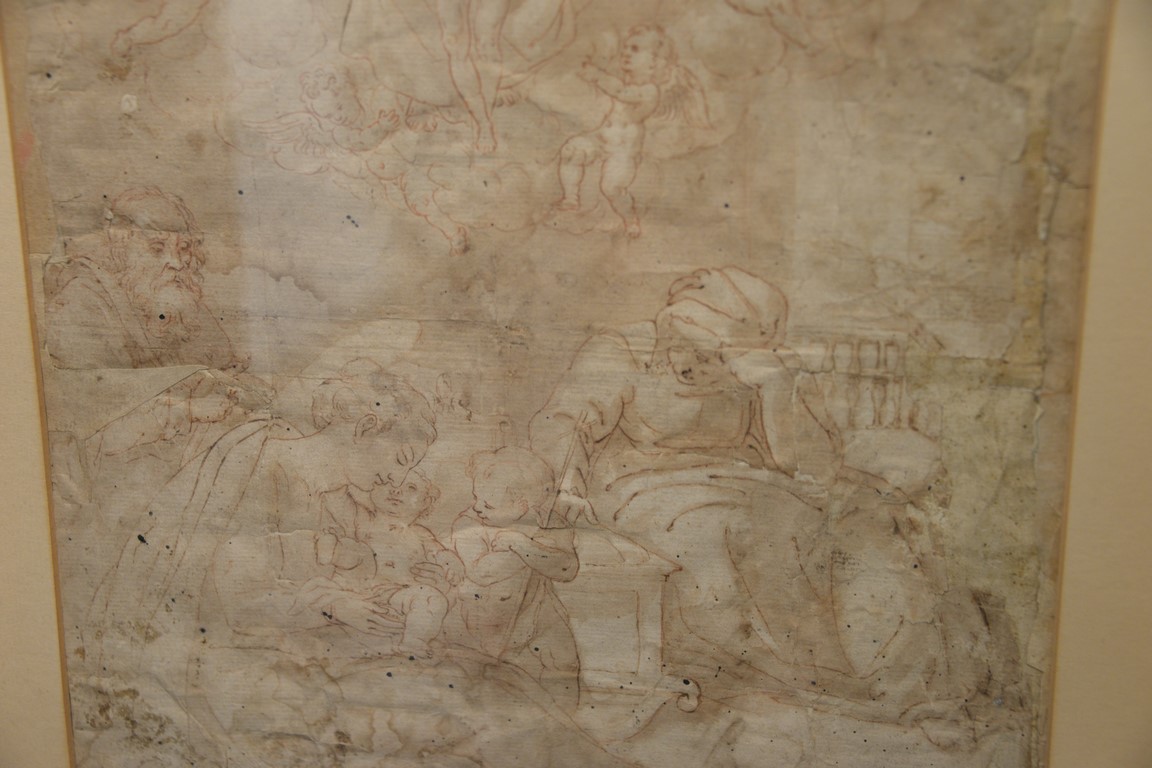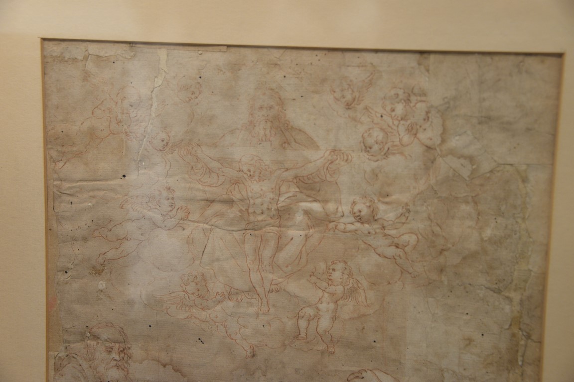 Lot 522: Attributed to Alonso Cano 1601-1667 pen and ink wash Religious, Christ with Angels unsigned writing on original board on back:…