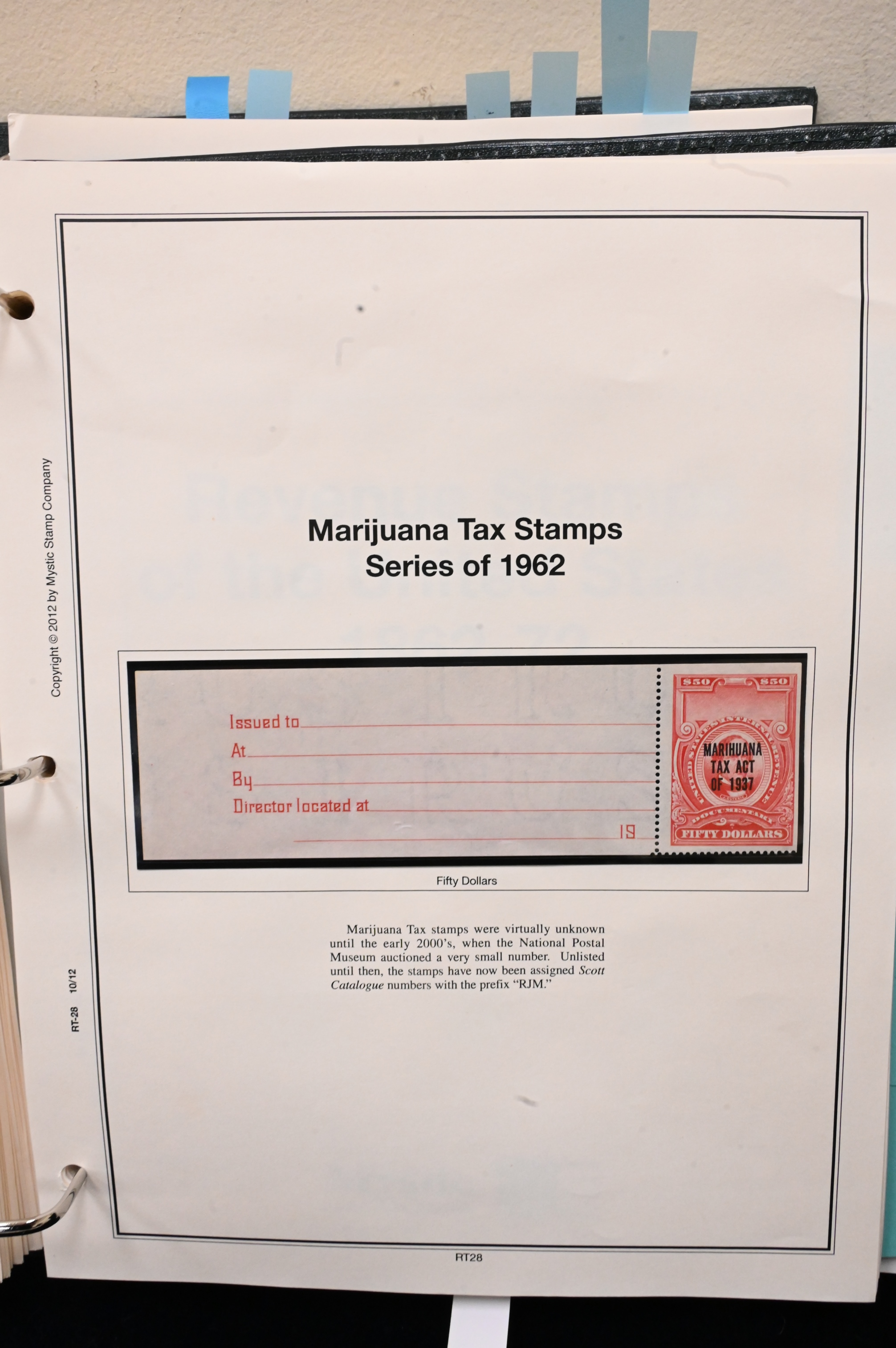 Collection of Revenue Stamps, to include Wines, Marijuana, Playing Cards, Tobacco and Stock transfer stamps