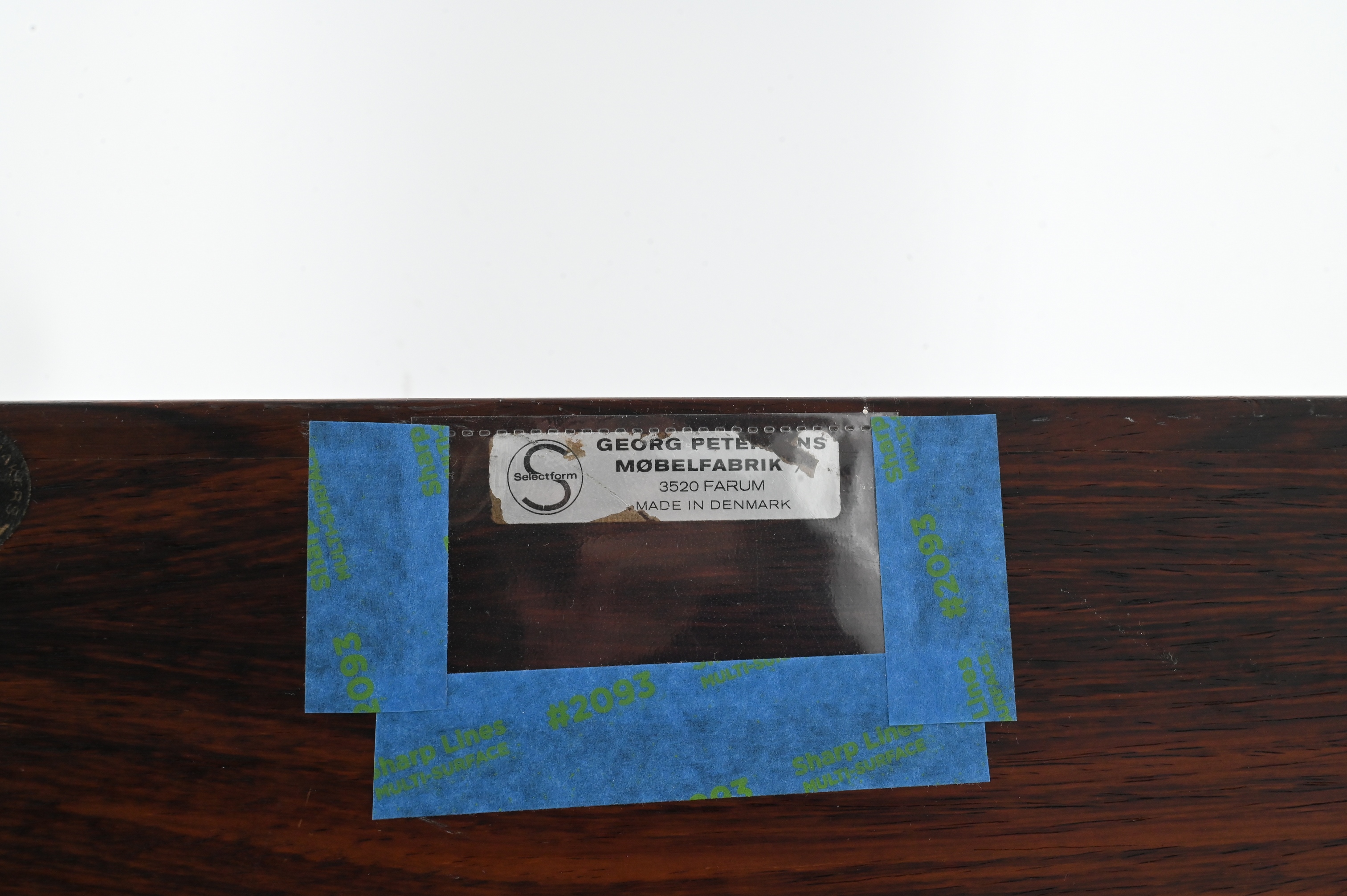 Danish rosewood organizer having slot storage cubbies marked on underside Georg Petersens Mobelfabrik
