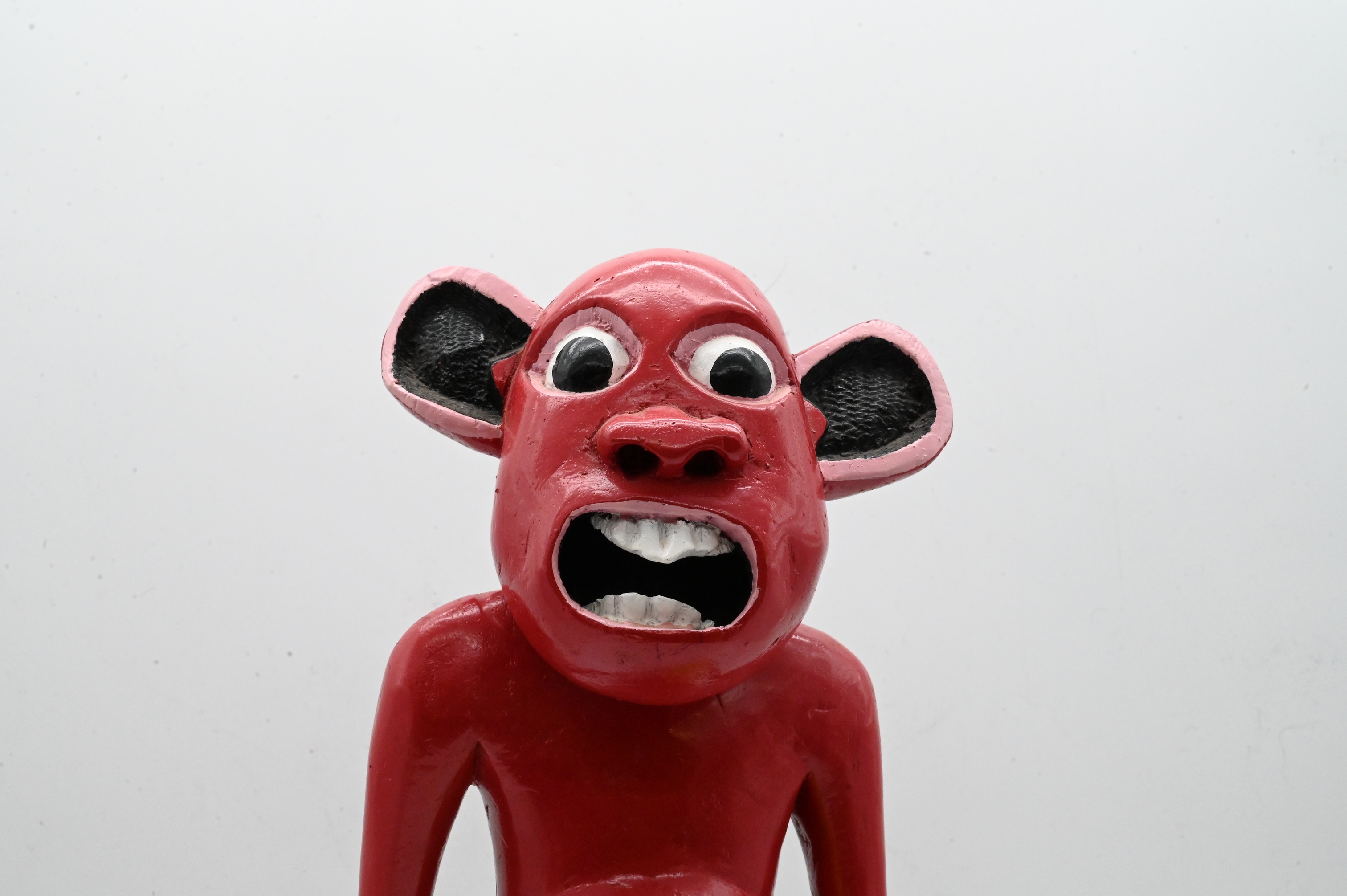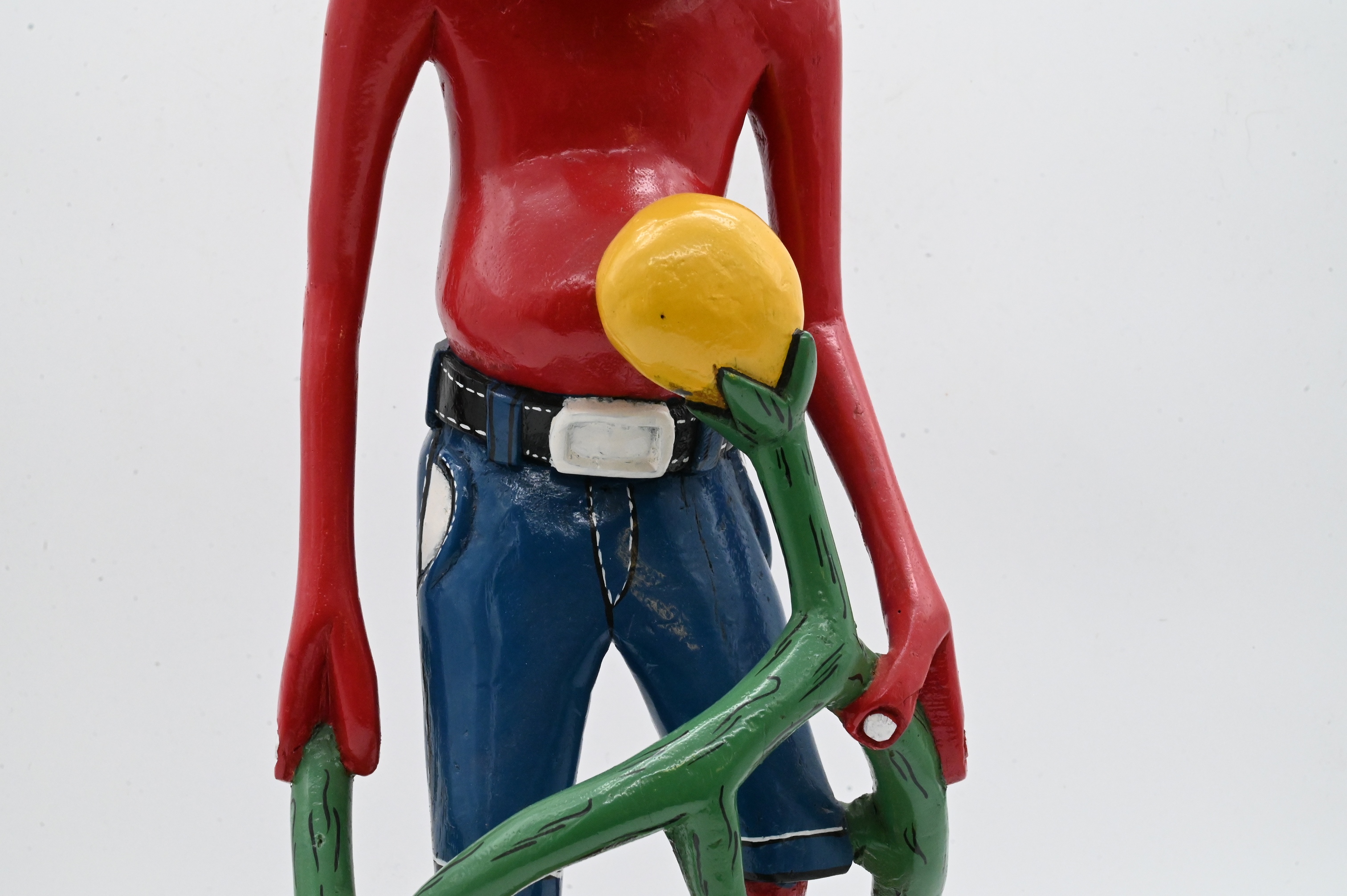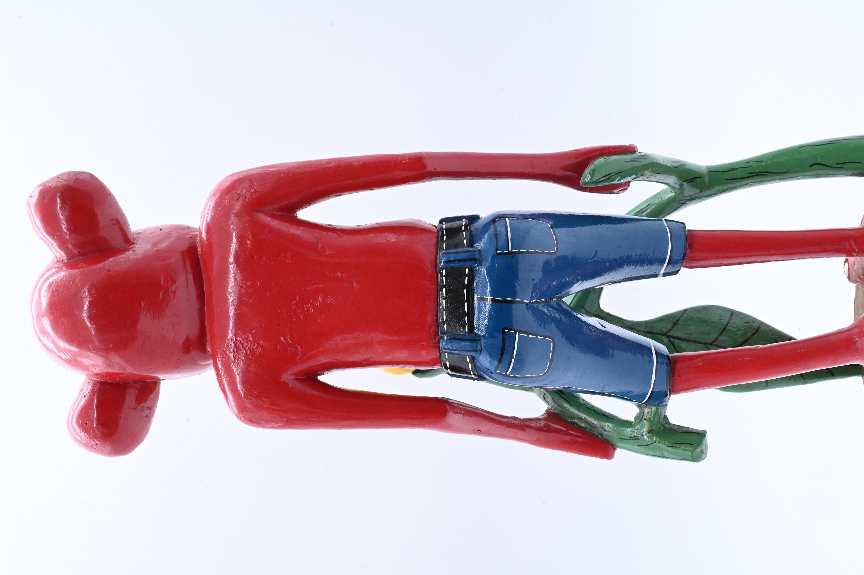 Red Figure in Jean Shorts Hold a Plant