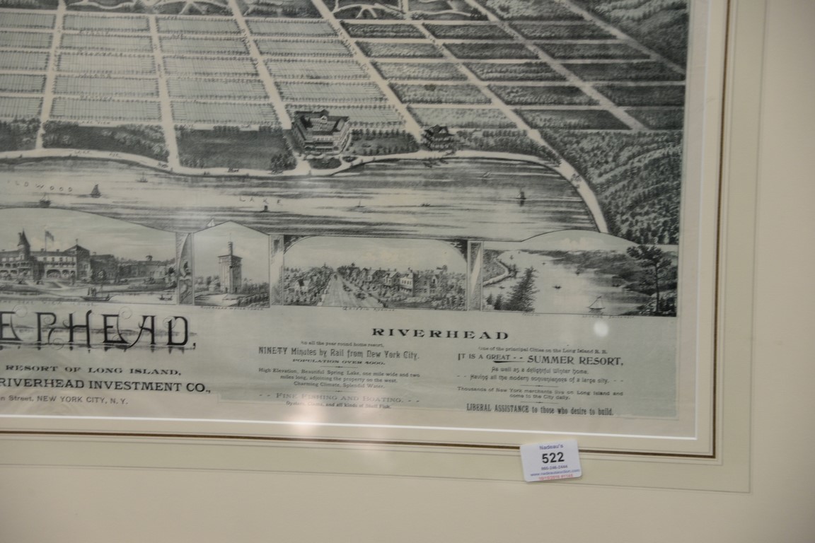 Lot 522: Survey map lithograph, Riverhead, The Home Resort of Long Island, Property of the Riverhead Investment Co., map showing sixteen Vign…