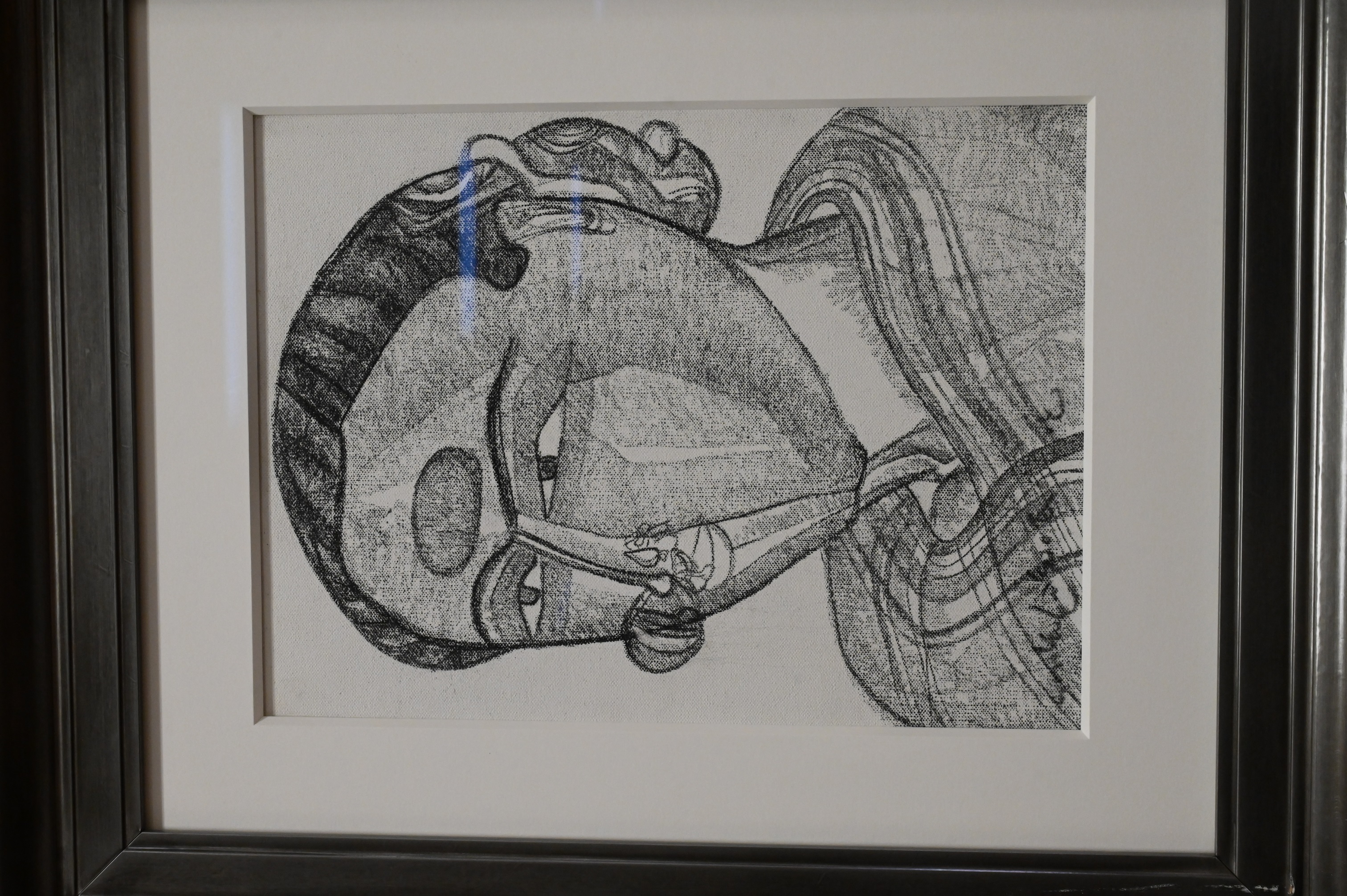 Charcoal on paper portrait of a woman’s head, signed illegibly lower left