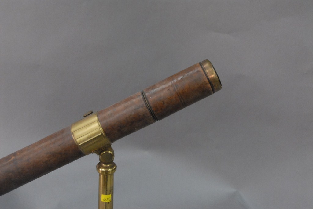 Lot 523: Brass two draw tripod telescope with leather covering tapering outer body tube signed Thomas Jones 1816-1850 62 Charing Cross Lond…