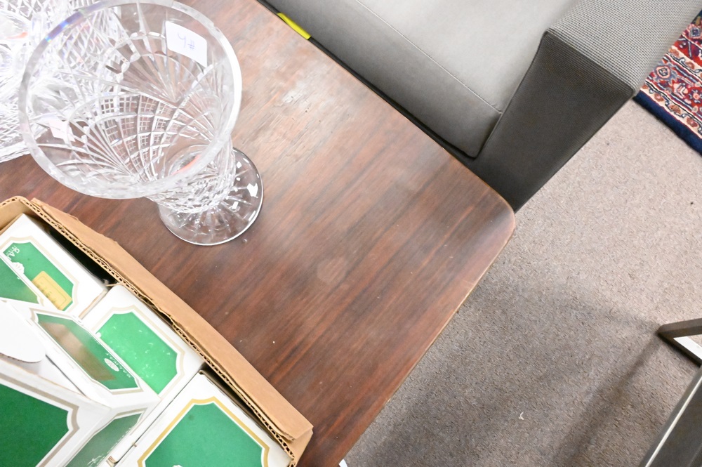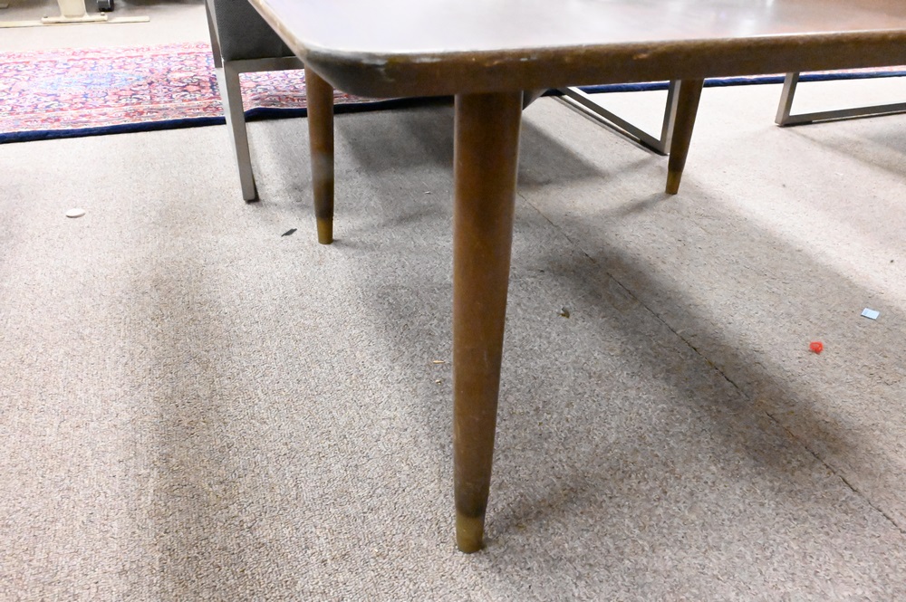Lot 523: Danish Teak Coffee Table, designed by George Tanier Selection, (in need of a cleaning, glueing and clamping), height 17 inches, length 30 inches, width 30 inches.