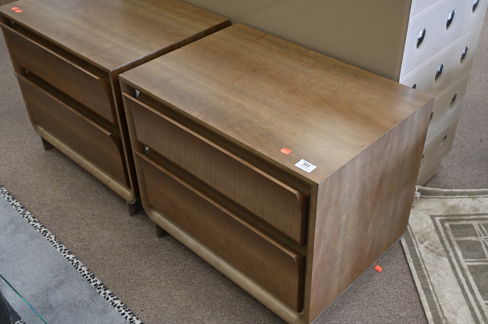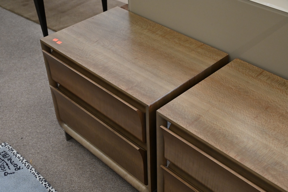 Lot 523: Pair of Donghia Contemporary Two Drawer Night Tables, height 22 inches, width 26 inches.