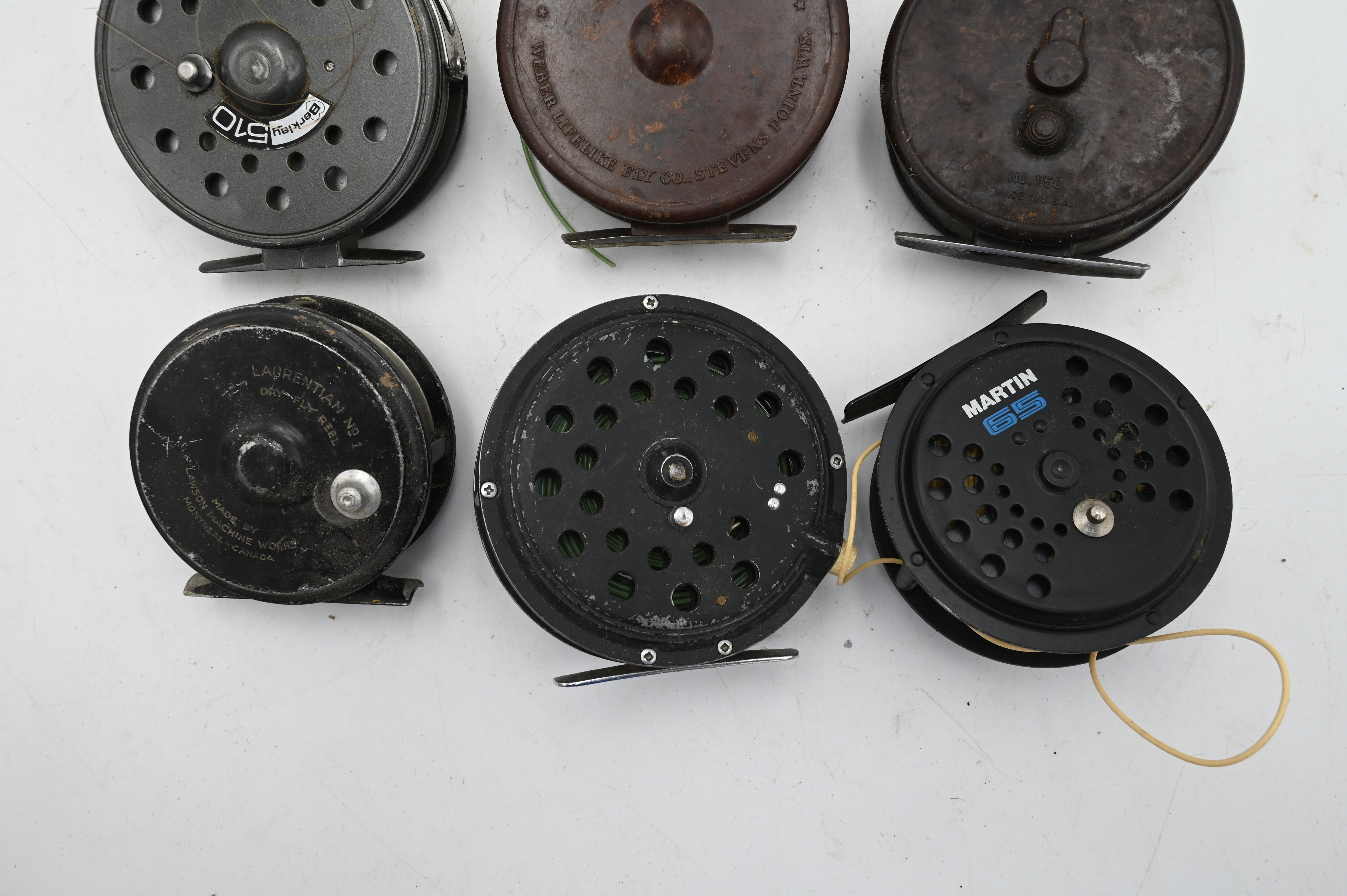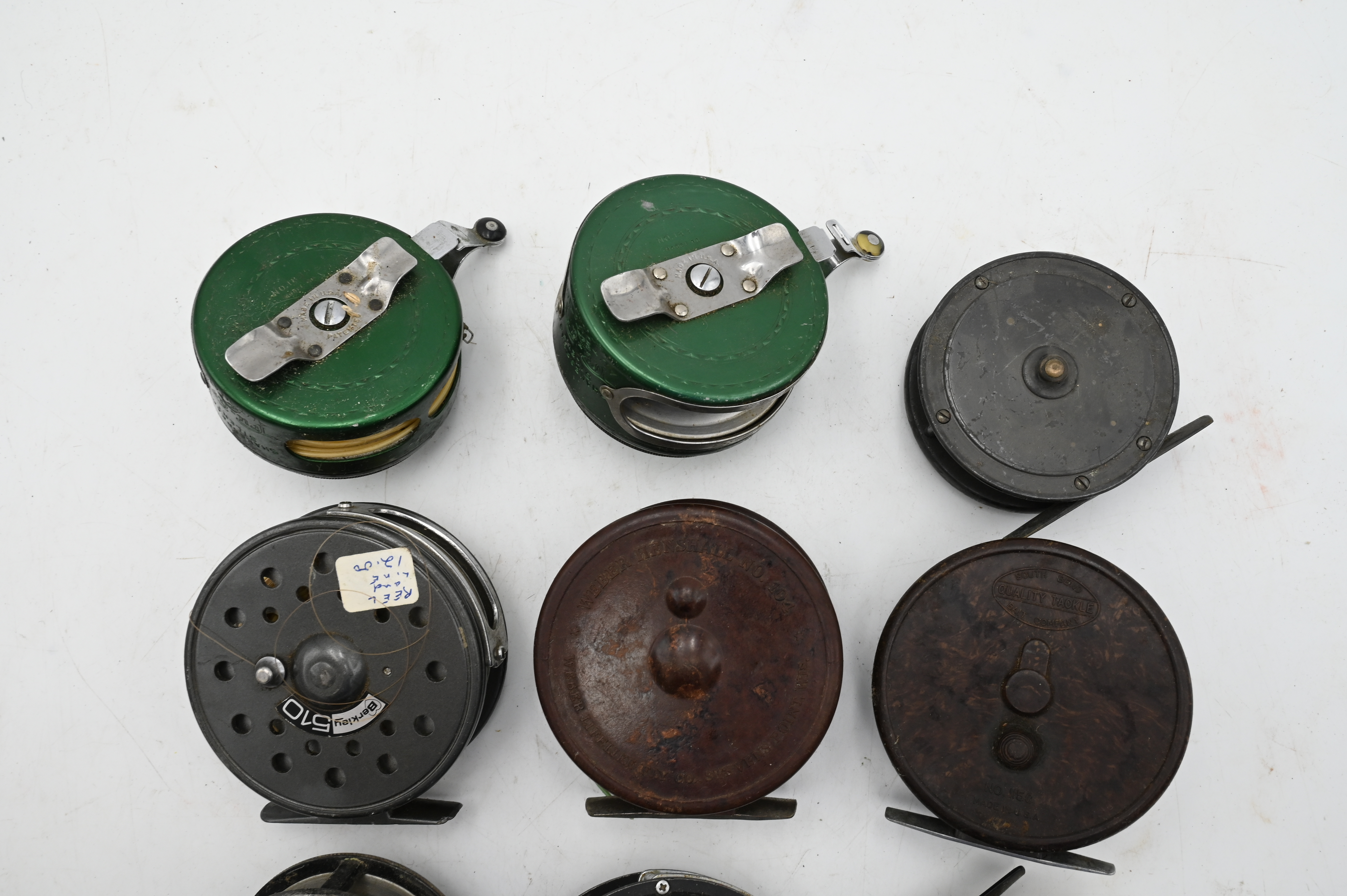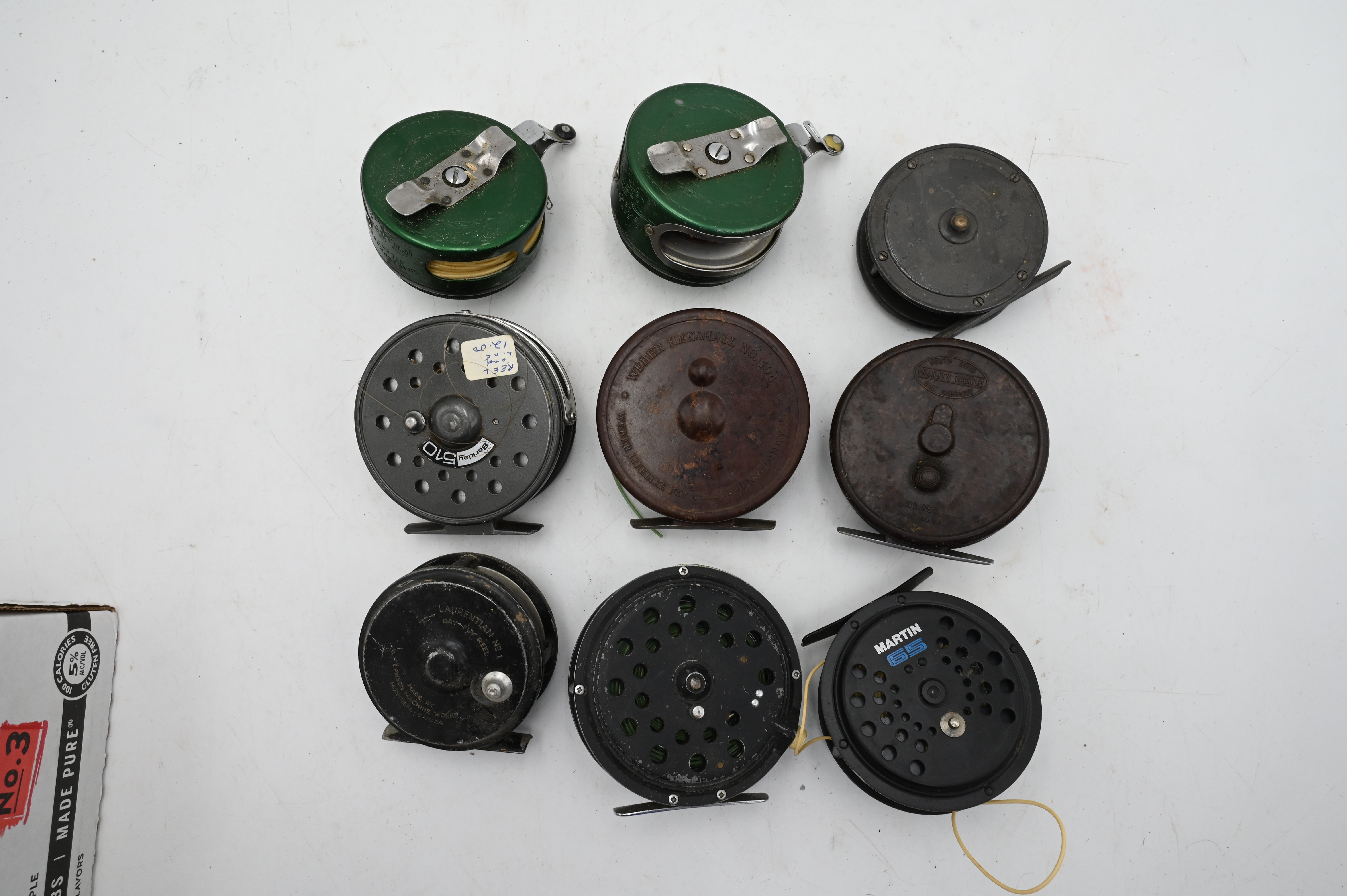 Tray Lot of Nine Fly Reels, to include two automatic, two Bakelite.