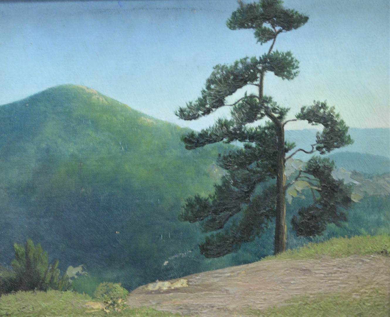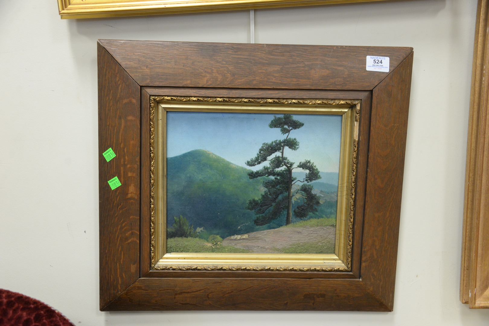 Lot 524: Edward Bradstreet (American, 1878 – 1921), From a Hilltop in the White Mountains, oil on canvas board, signed and titled on a label adhered to the reverse “E.D. Bradstreet”, height 10 inches, width 12 inches.