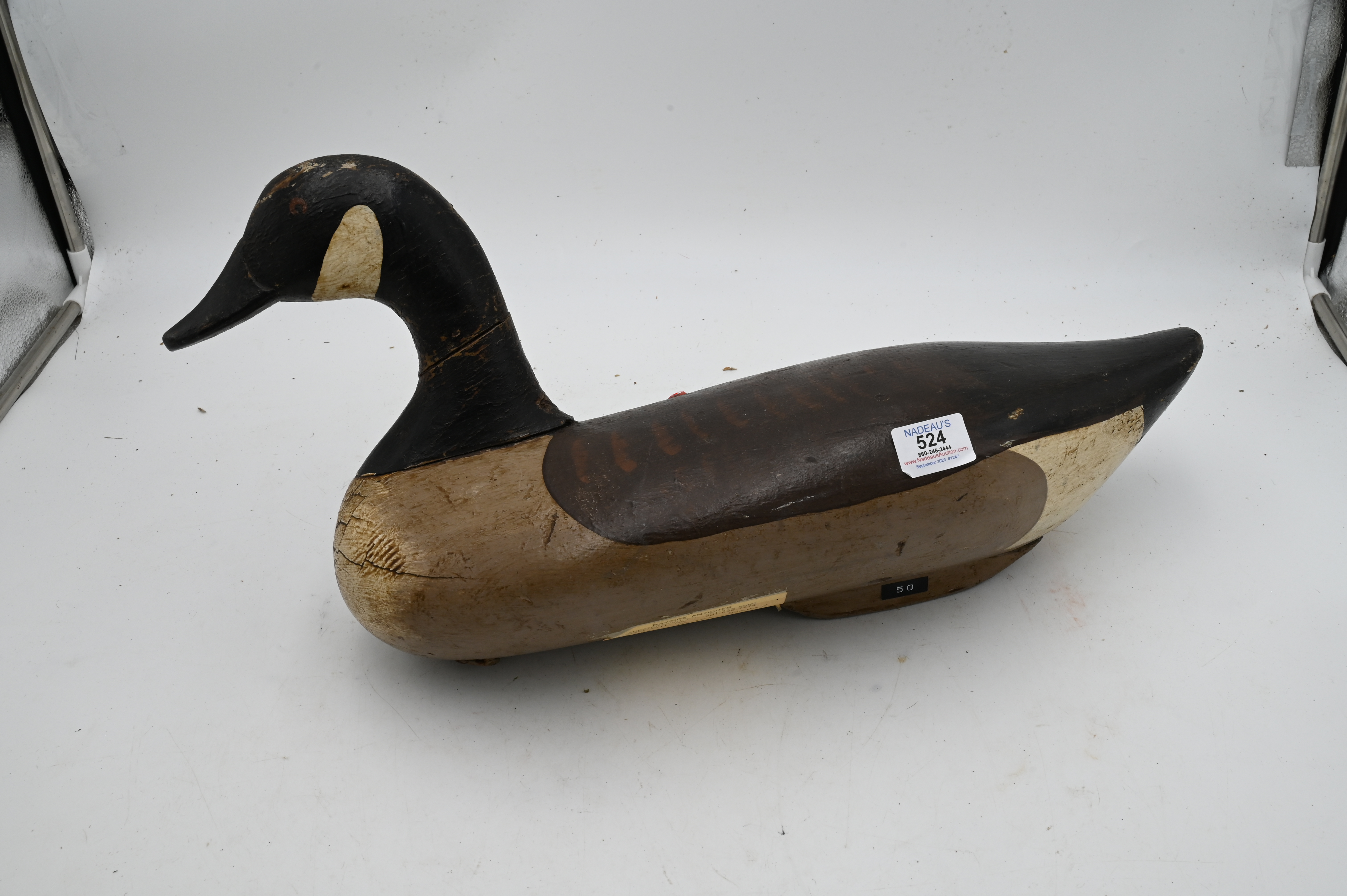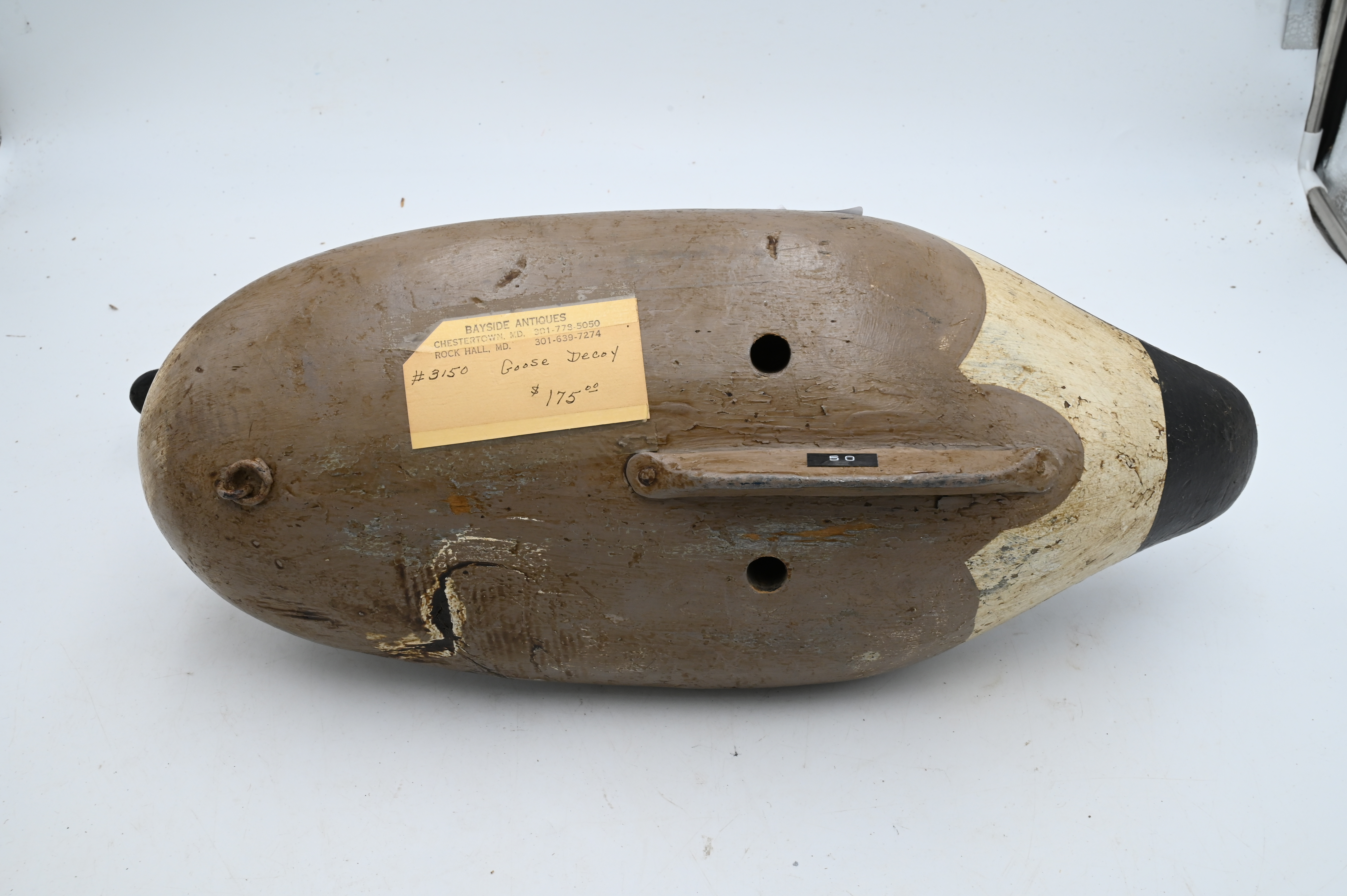 Working Goose Decoy, in old paint, sold by Bayside Antiques, length 22 inches.