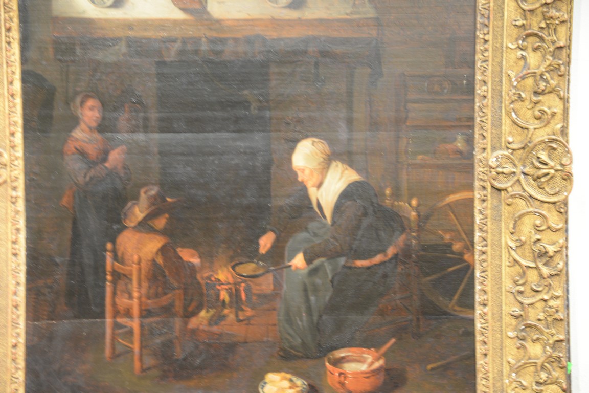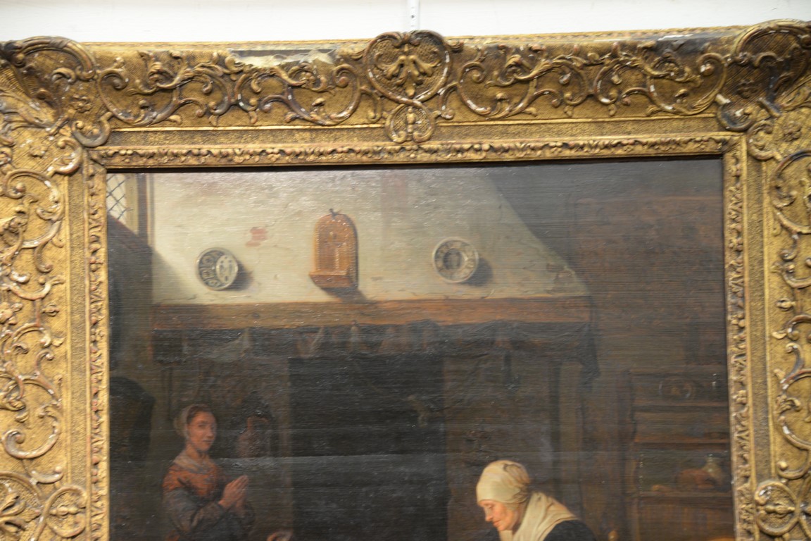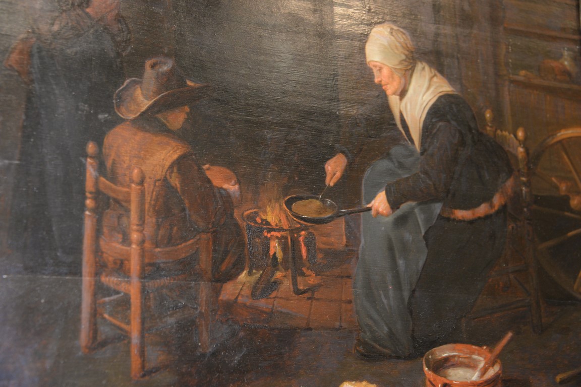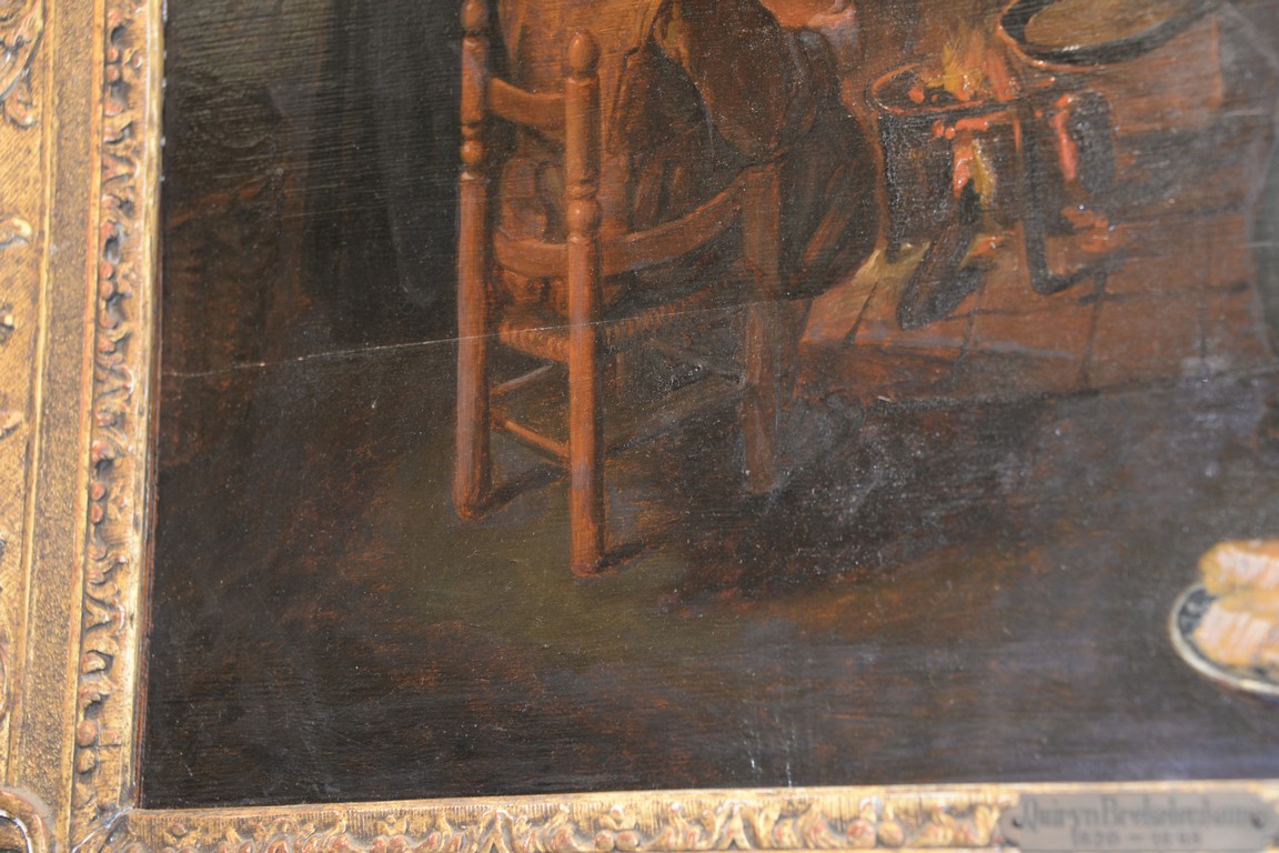 Lot 525: Attributed to Quiringh Gerritsz van Brekelenkam 1622-1668 oil panel Interior Woman Cooking Sotheby’s label on reverse …