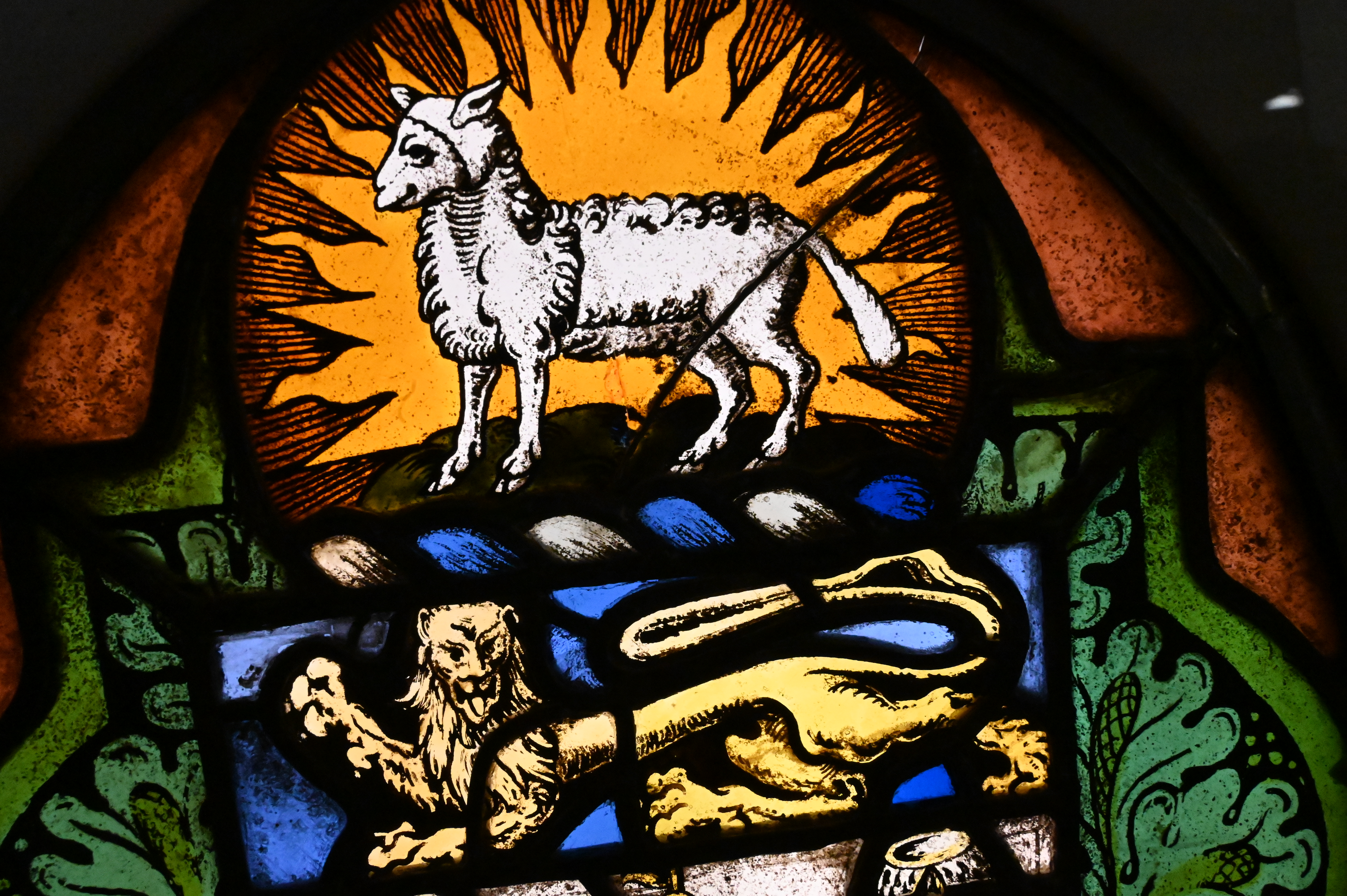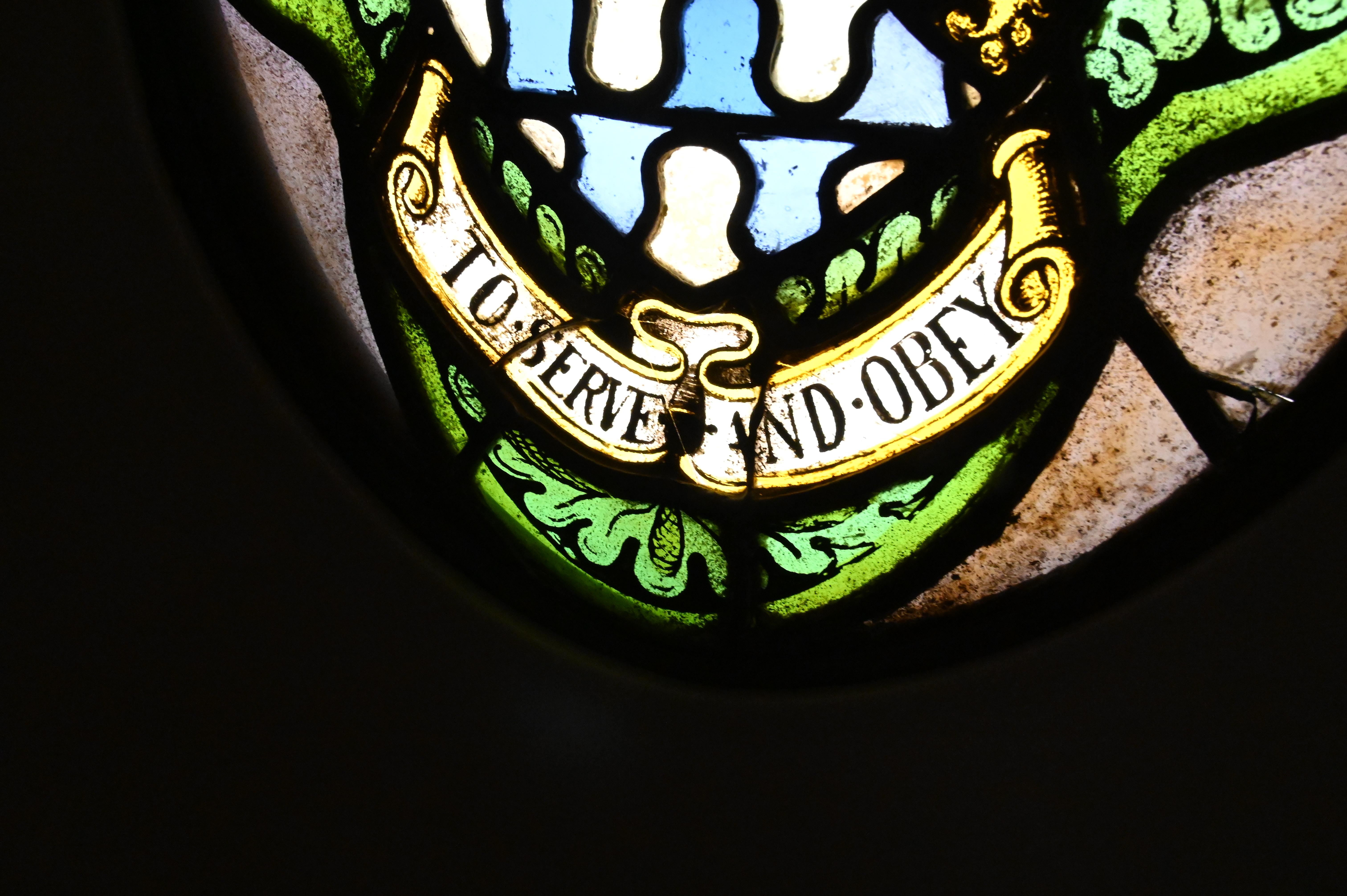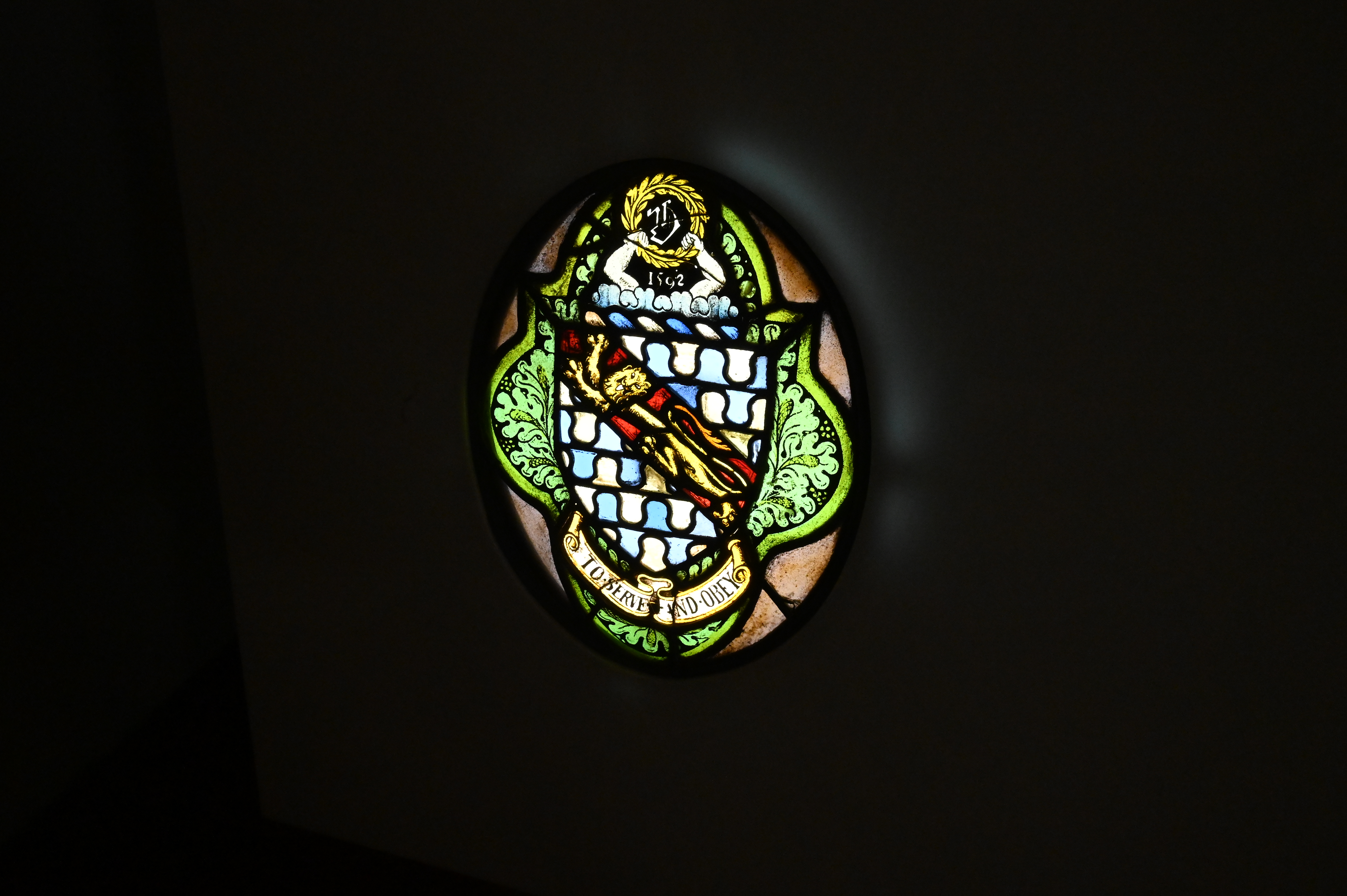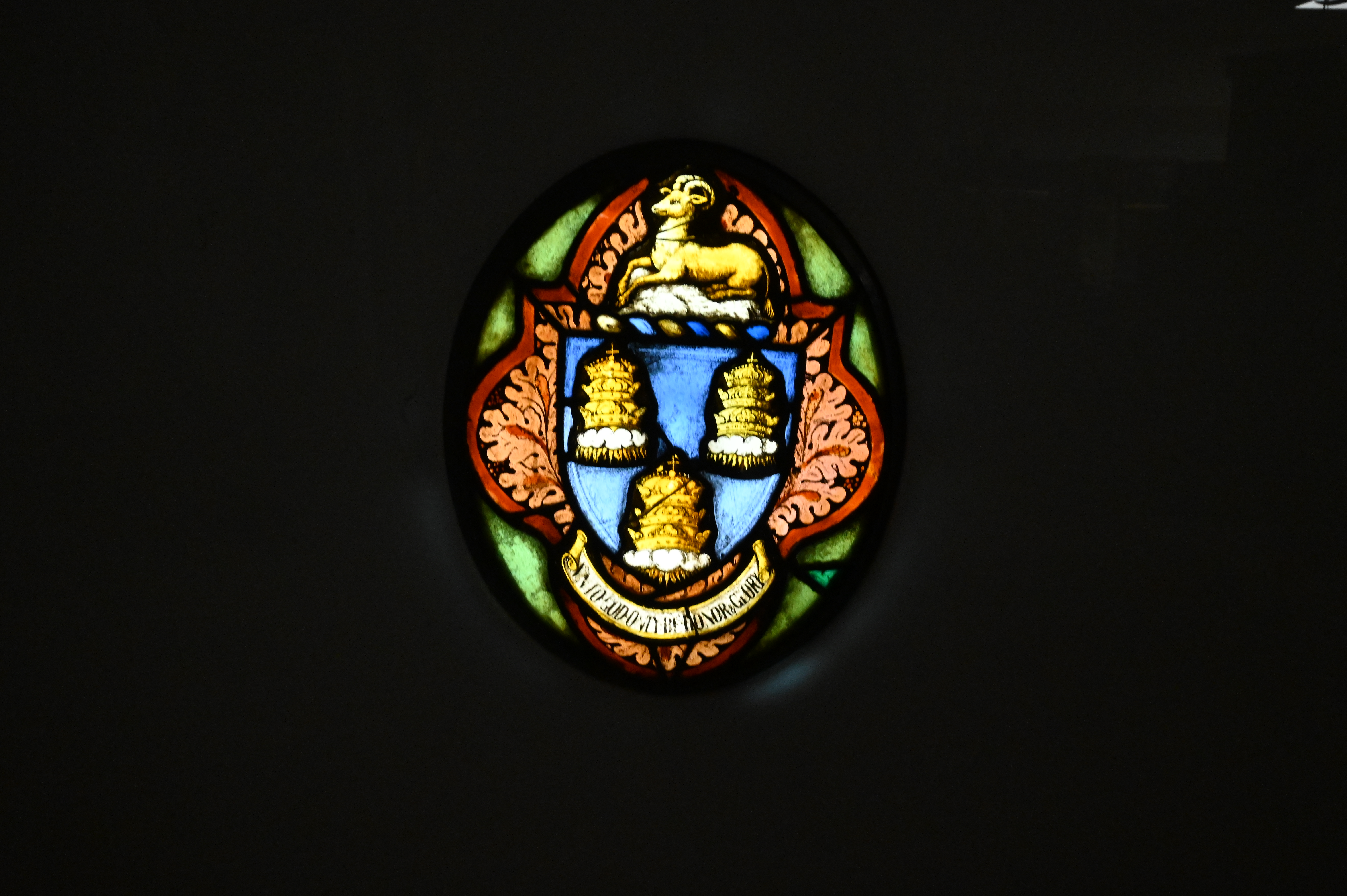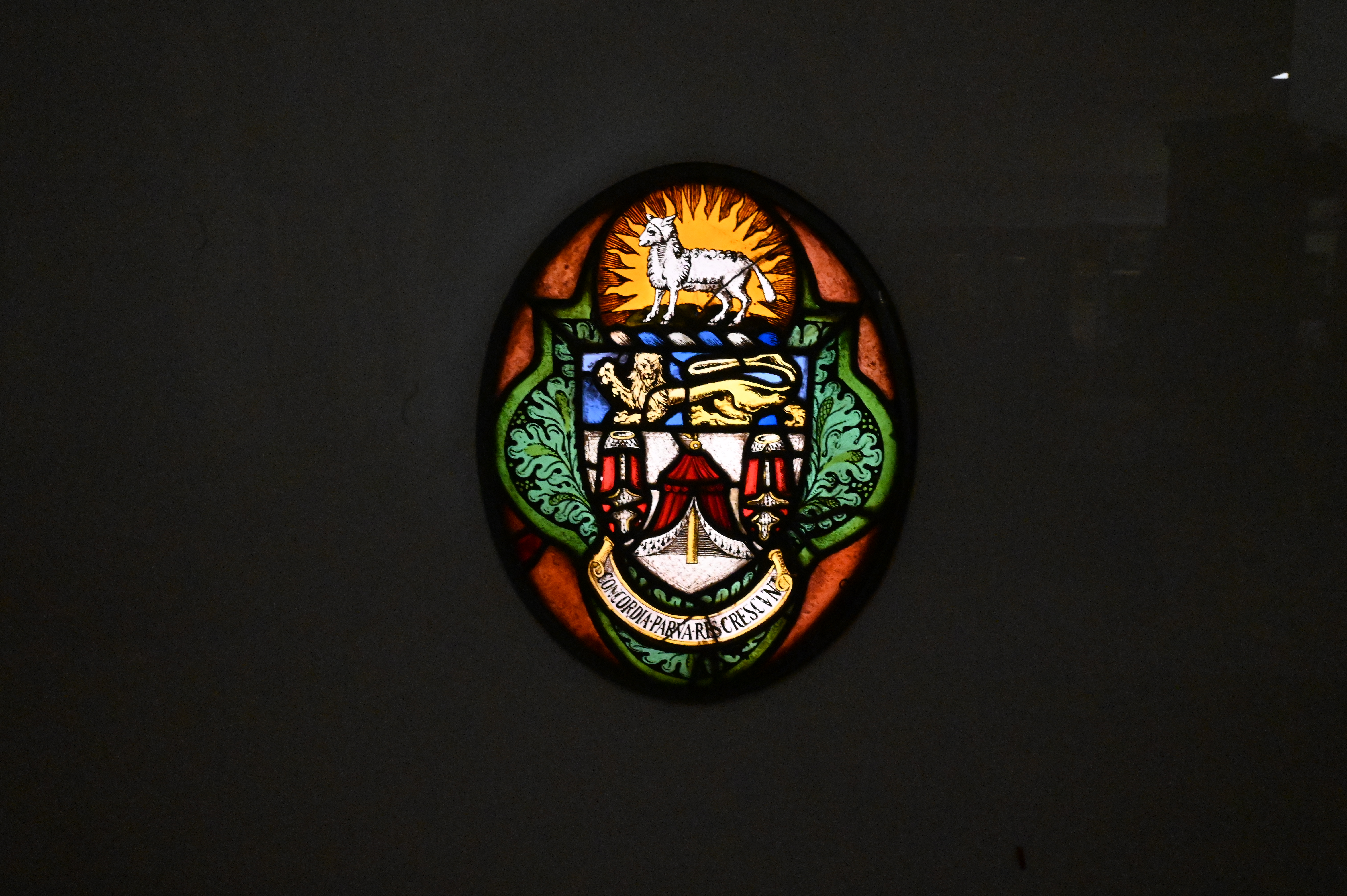 Lot 525: Set of Four Oval Stained-Glass Heraldic Roundel Panels