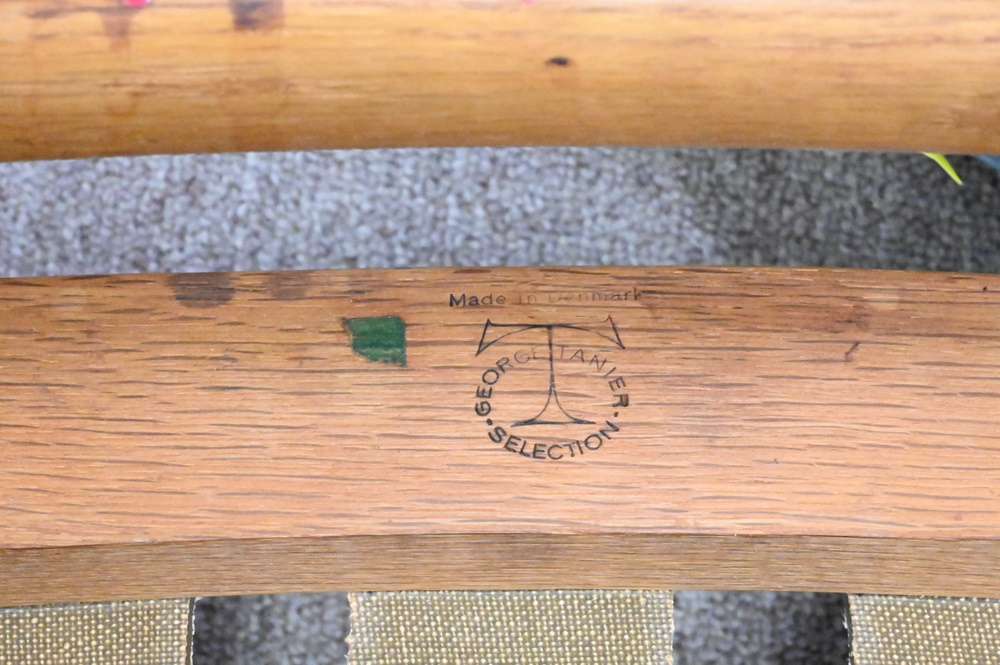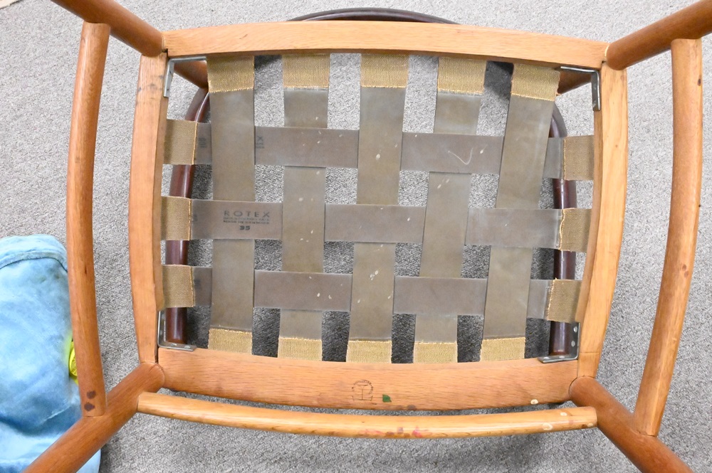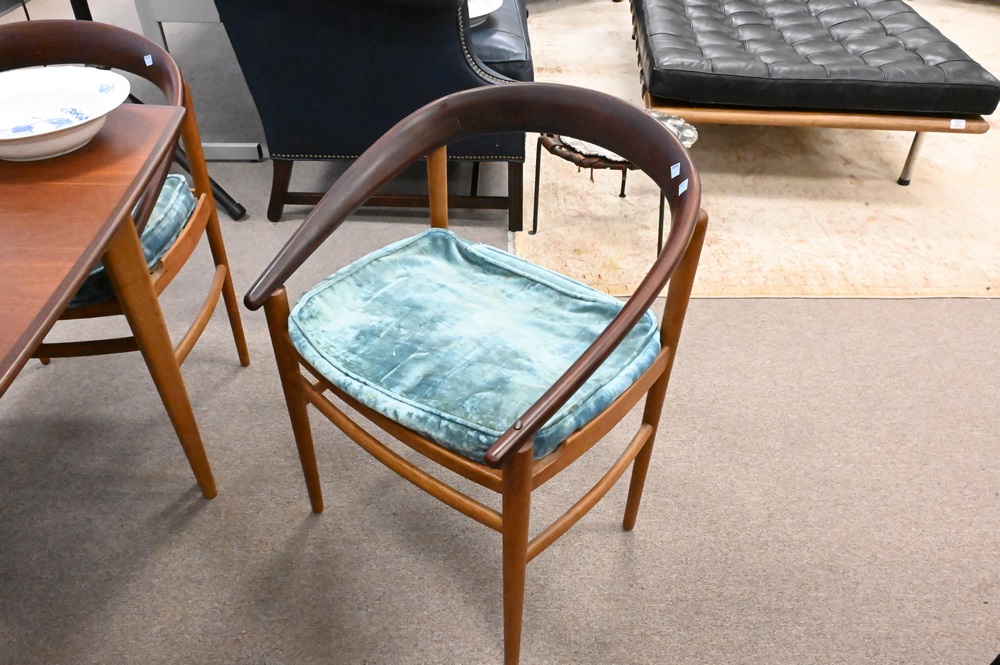 Lot 525: Set of Six George Tanier’s Shop Teak Chairs, in Brockmann-Peterson design, height 28 1/4 inches, width 20 inches, depth 21 1/2 inches.
