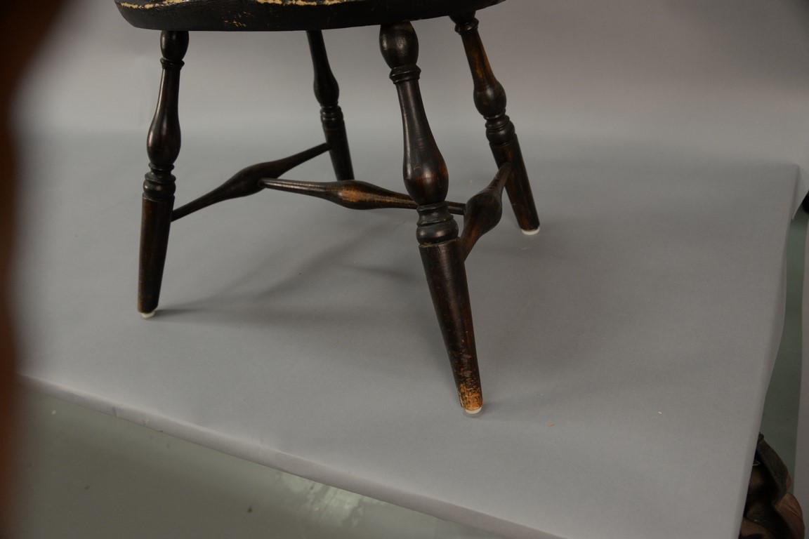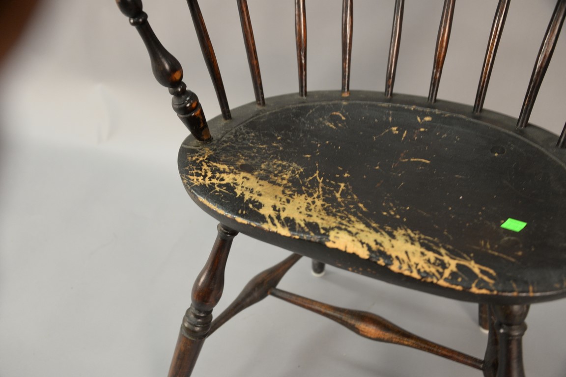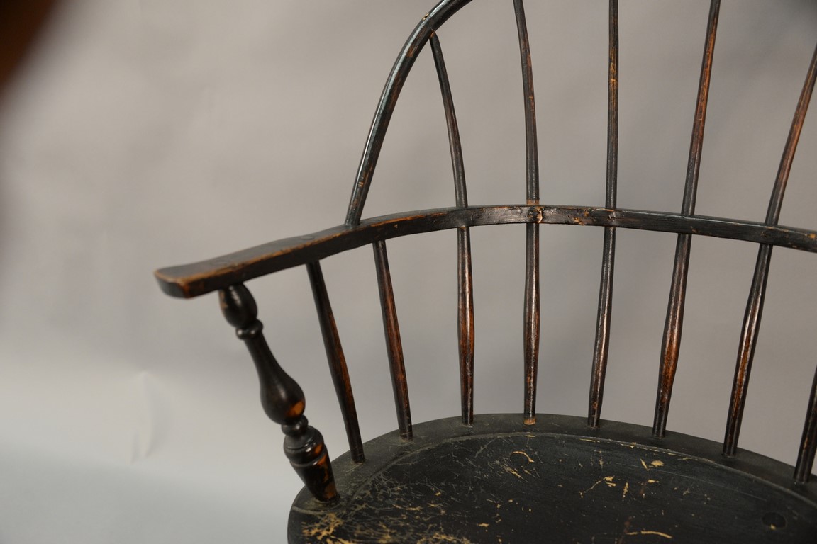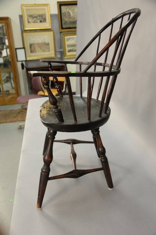 Windsor sack back armchair on bold turned legs, 18th century. ht. 36in., seat ht. 17 1/2in.