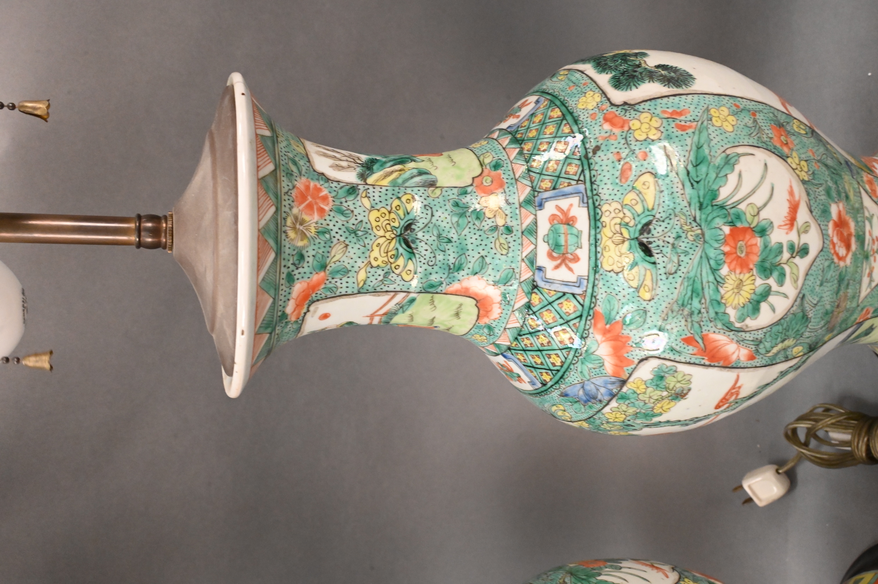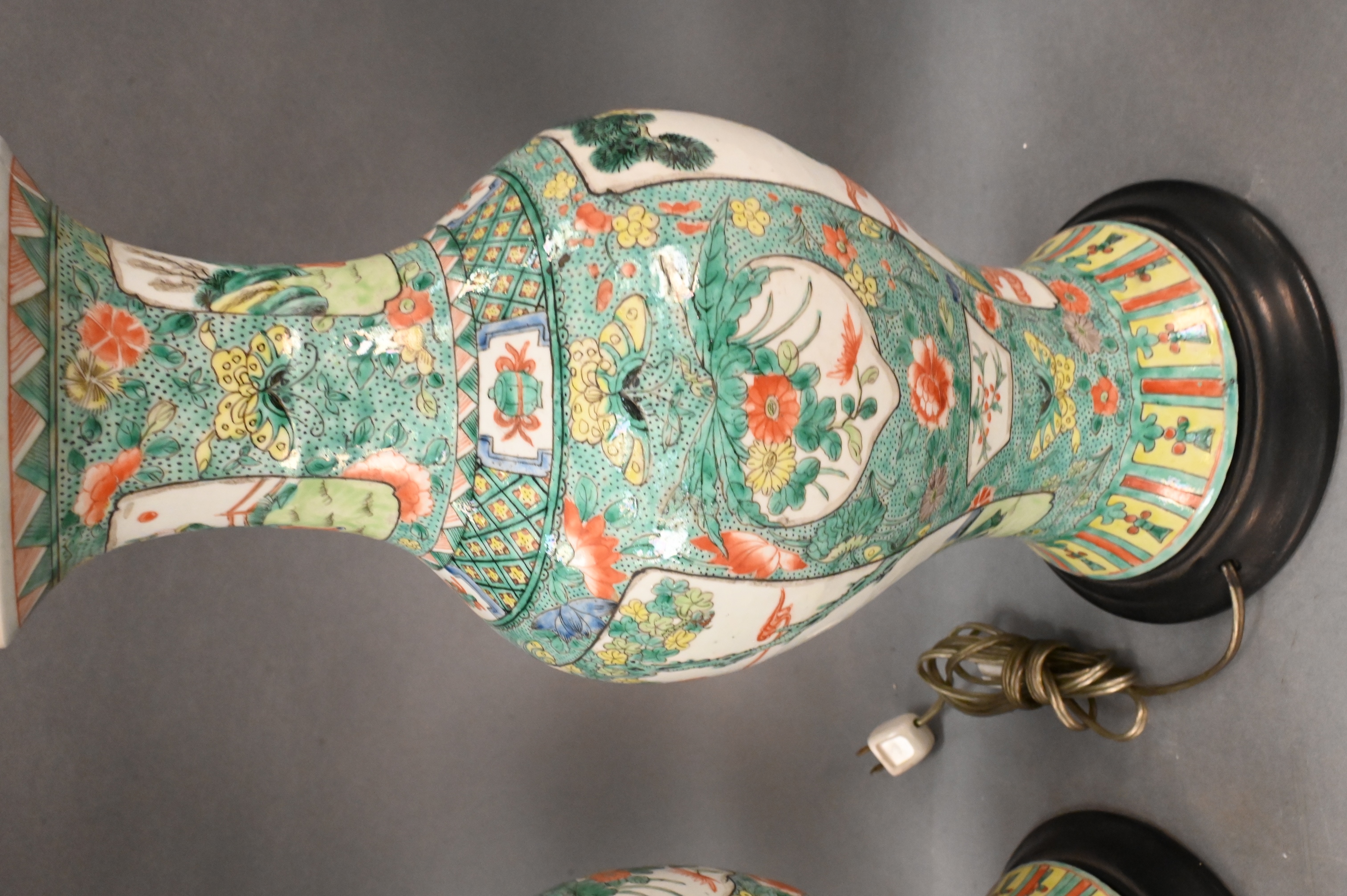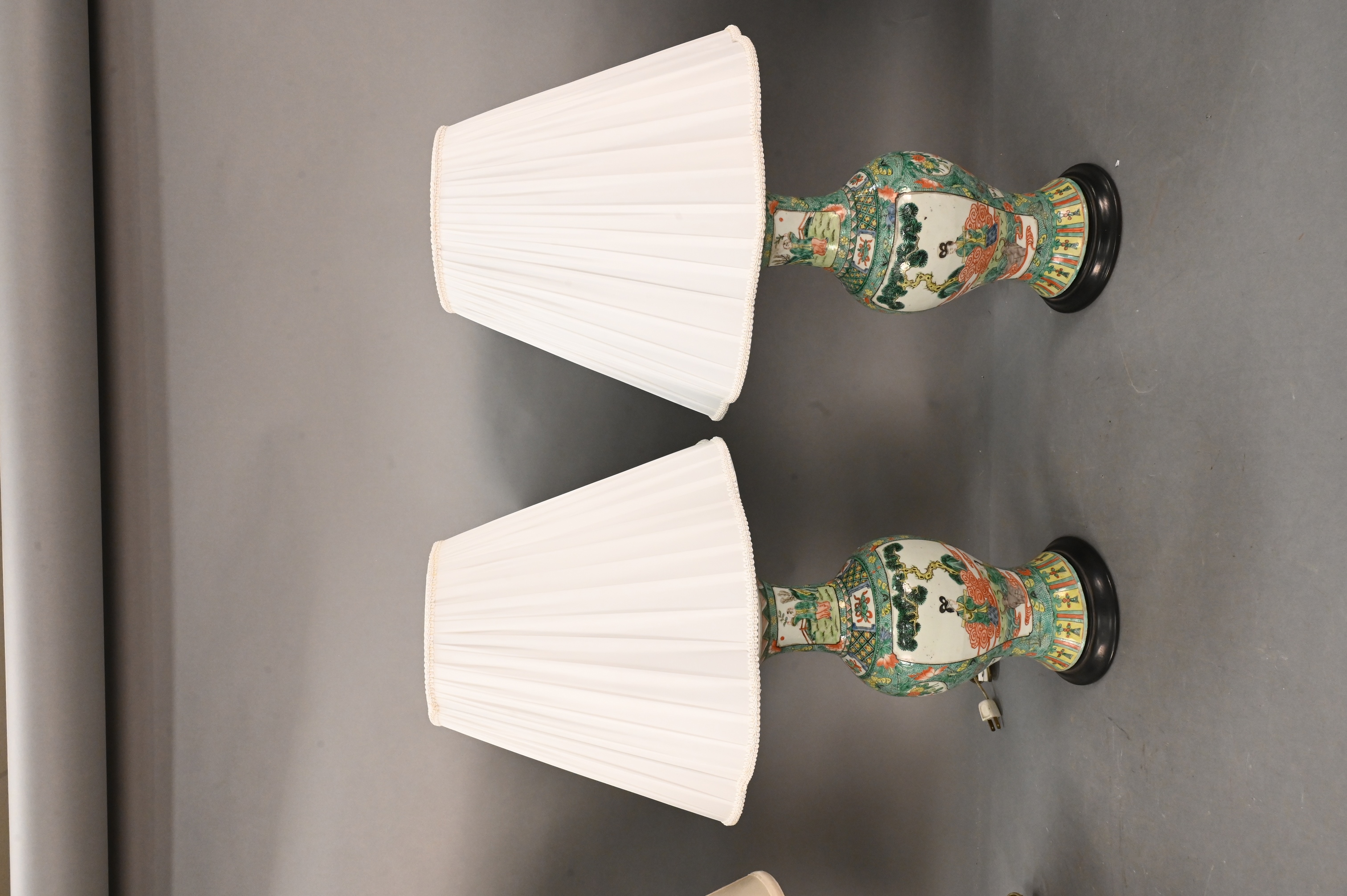 Lot 526: Pair of Chinese Famille Verte Baluster Vases