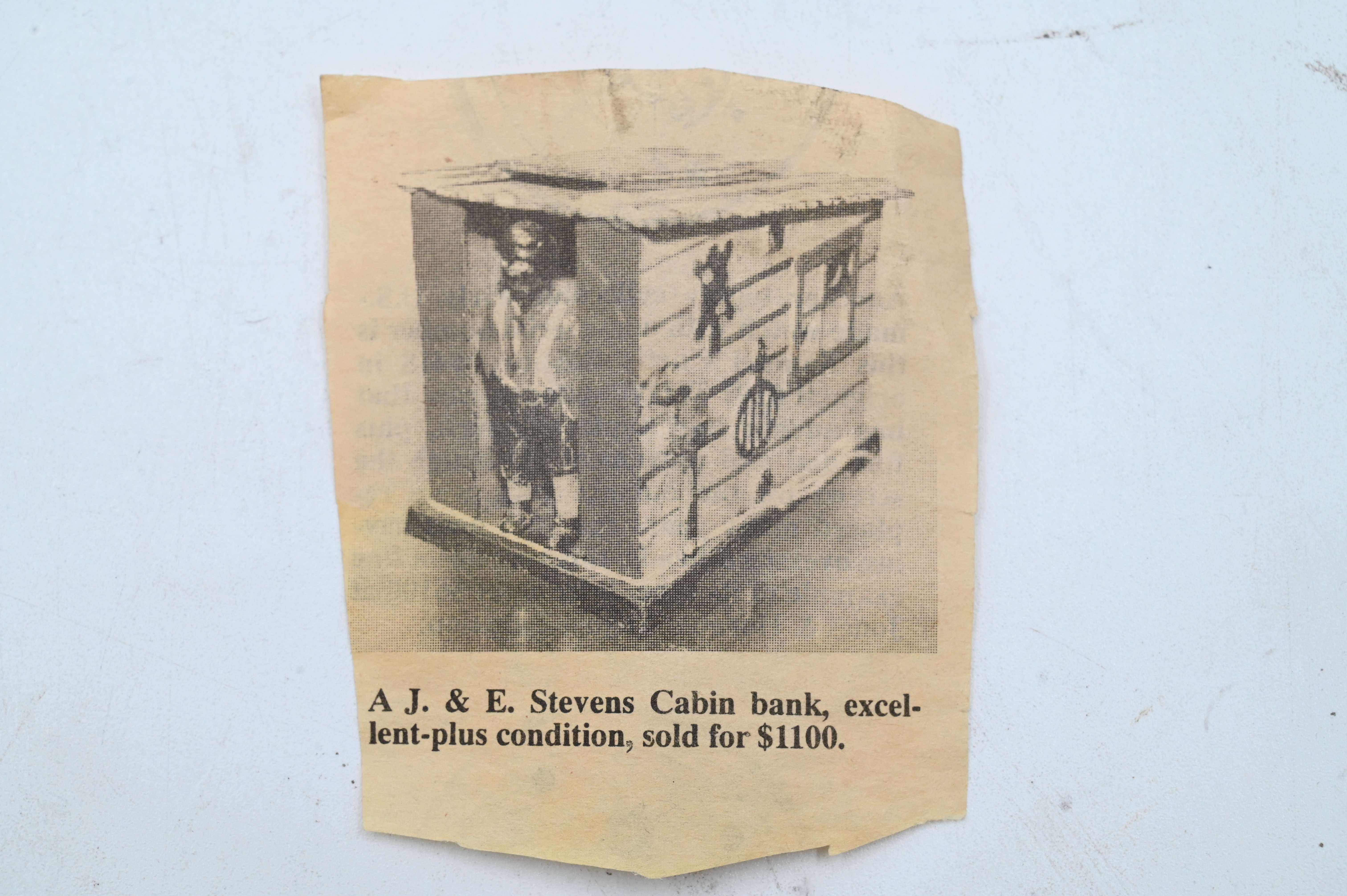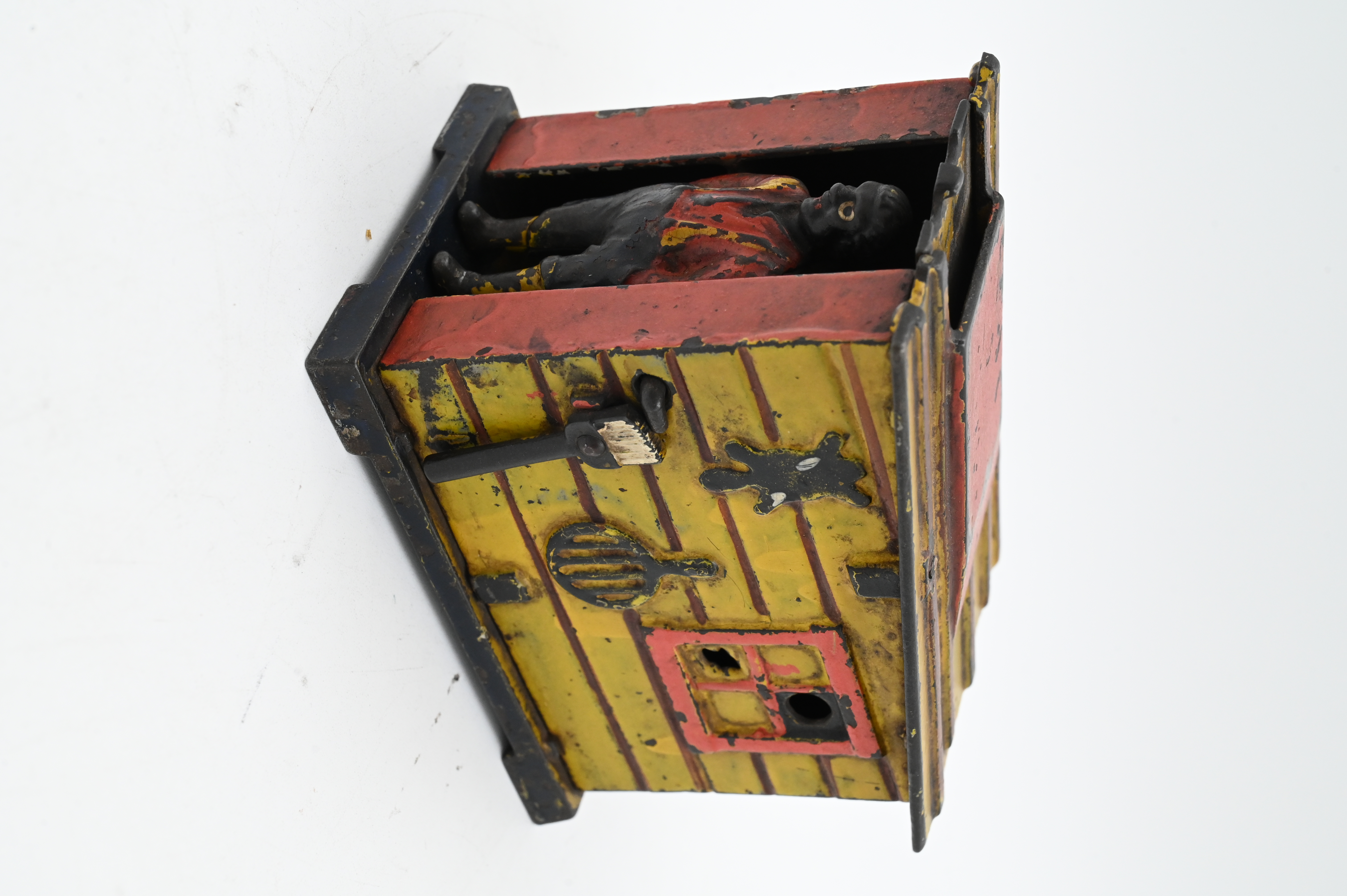 Lot 526A: J & E Stevens Cast Iron Cabin Mechanical Bank