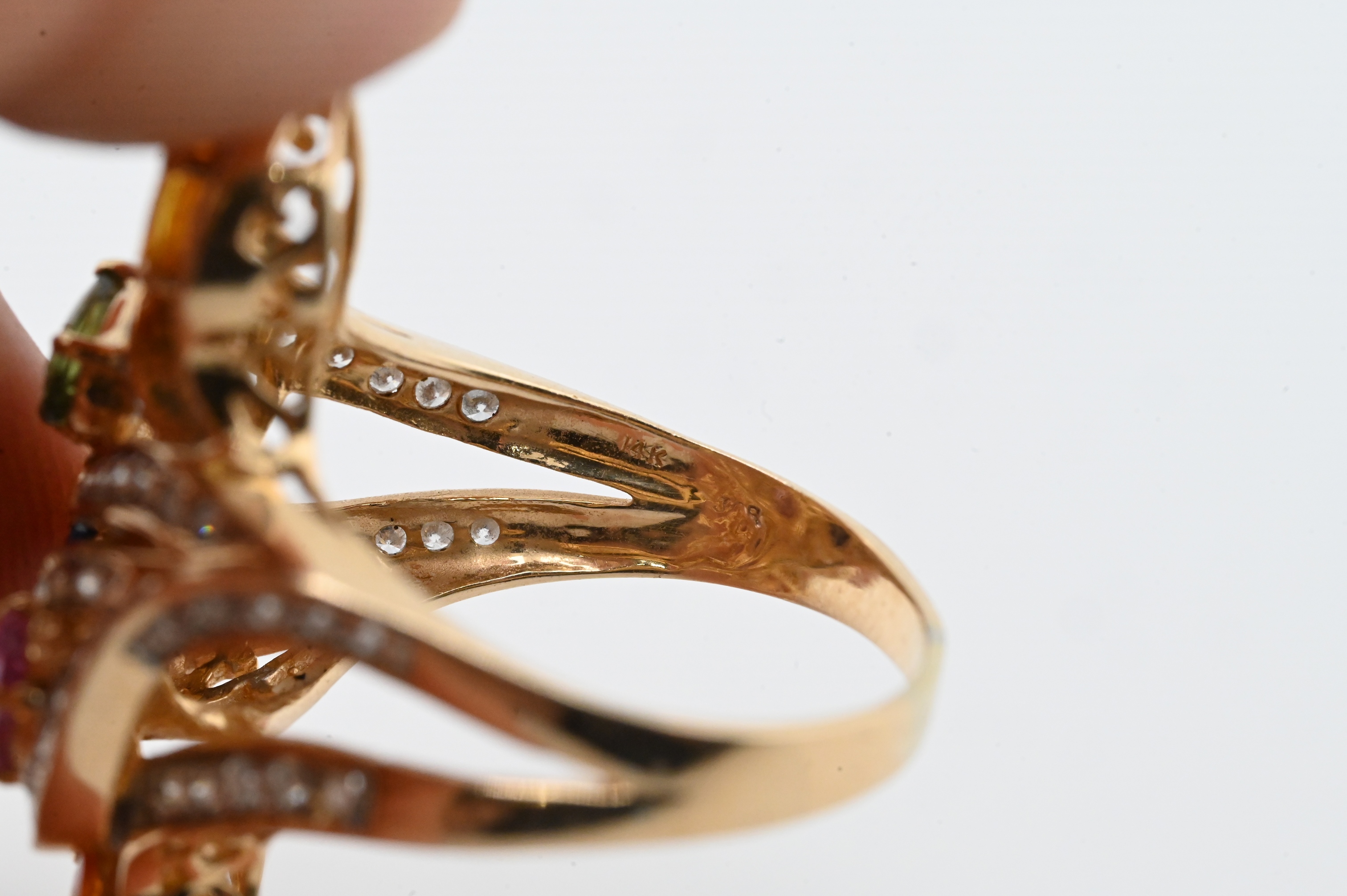 14K Gold Multi-Gemstone and Diamond Ring