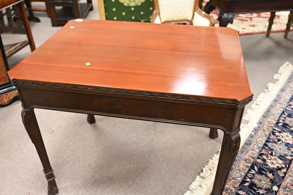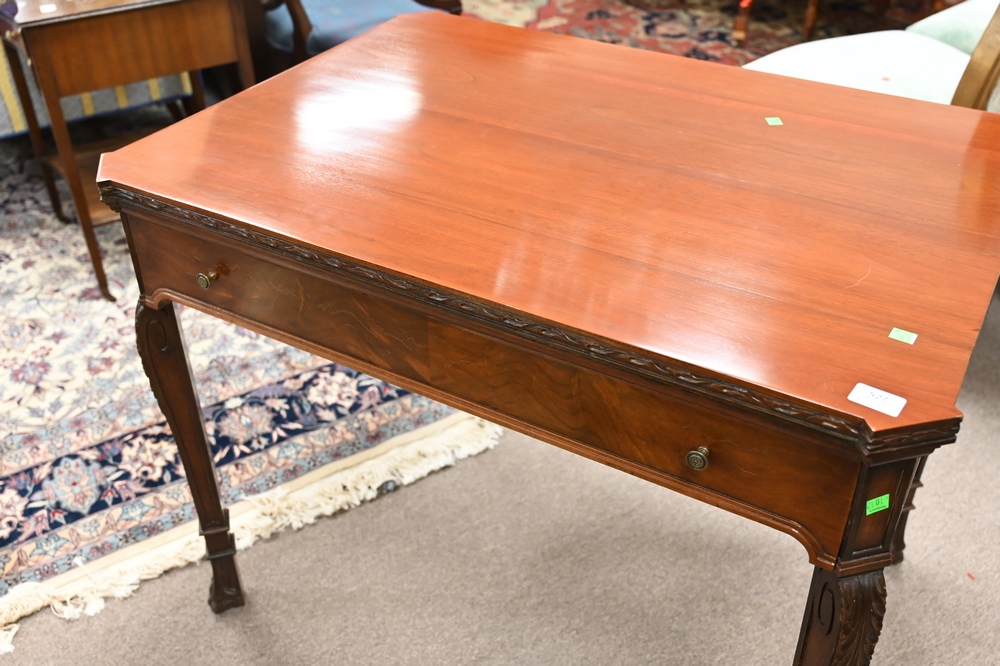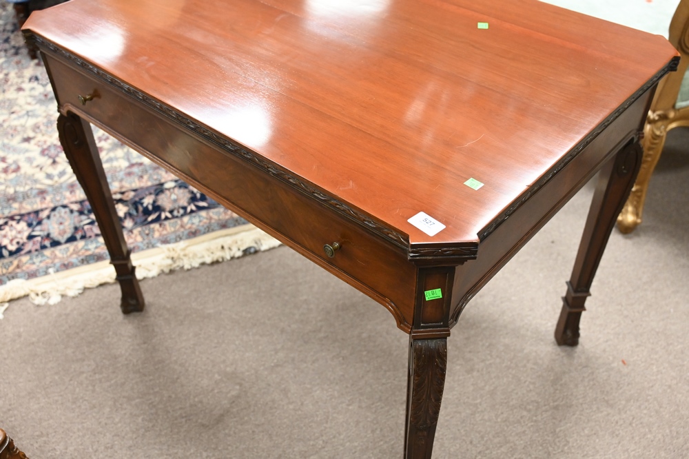 Continental Style Mahogany Writing Table, having one drawer, height 30 1/4 inches, top 27 1/2″ x 37 1/2″.