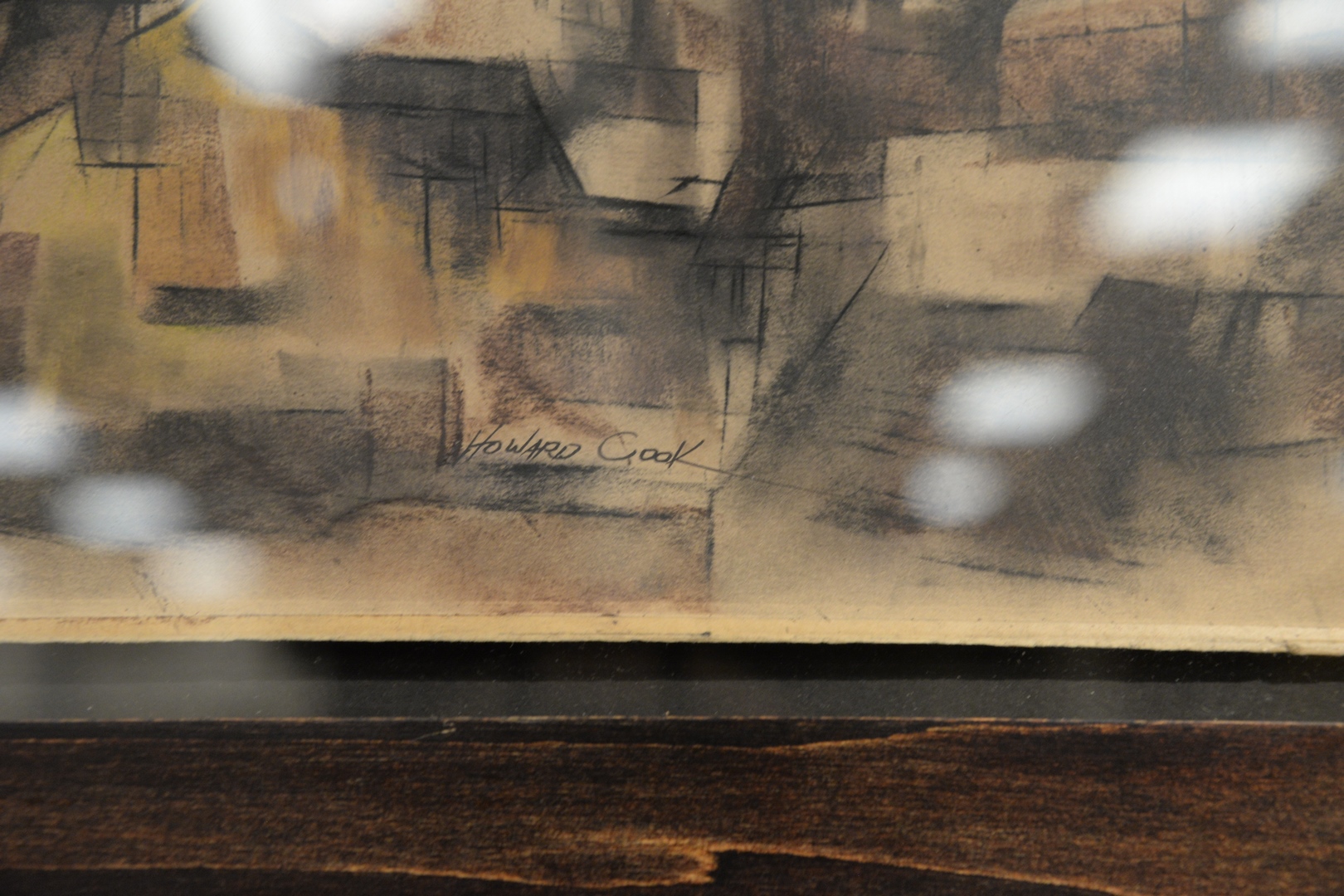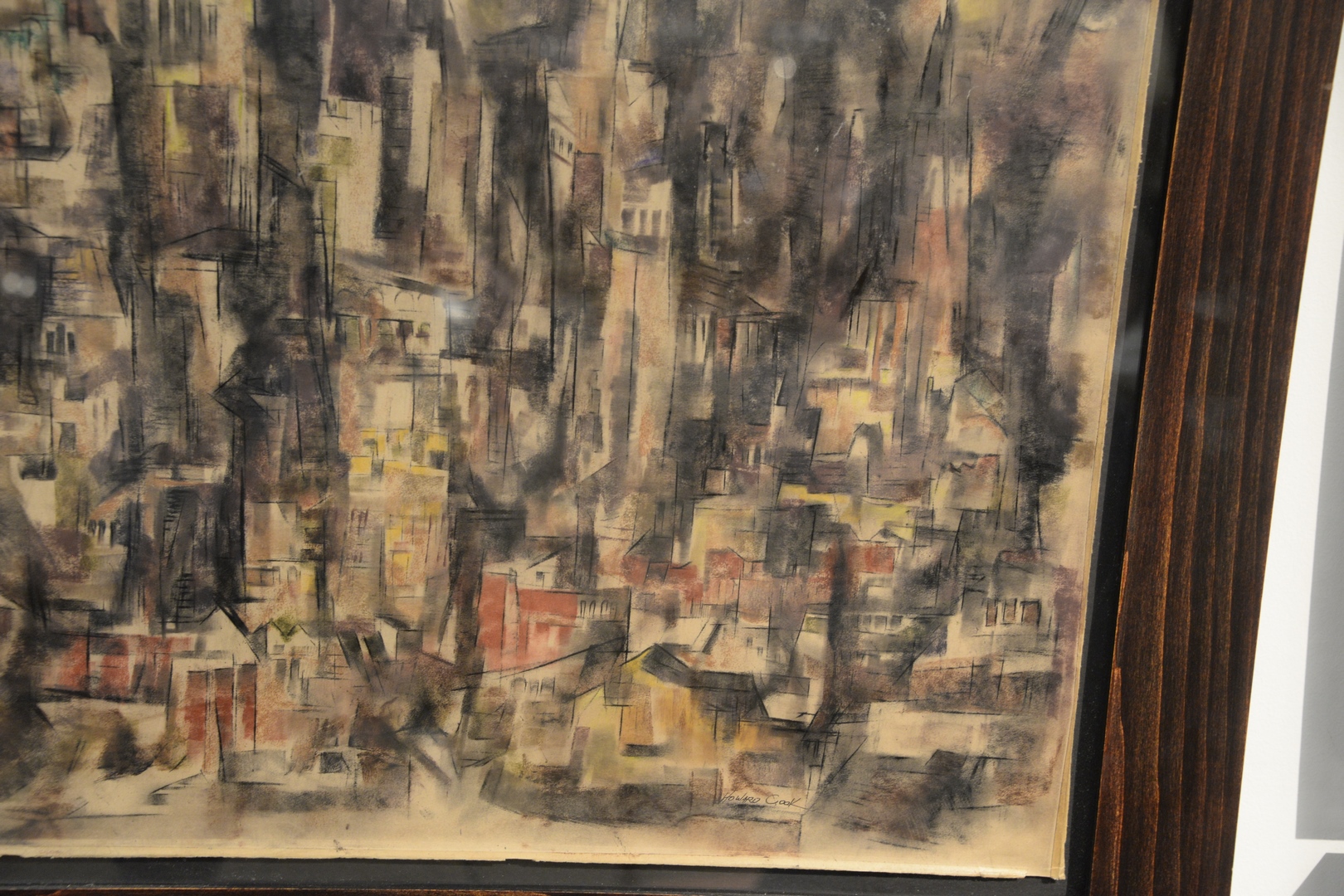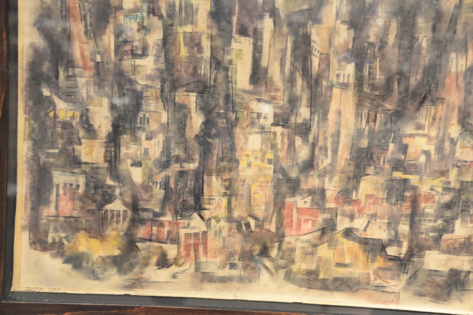 Lot 527: Howard Norton Cook 1901 – 1980 Dark City mixed media signed Howard Cook lower right and titled top right and lower left Mayans G…