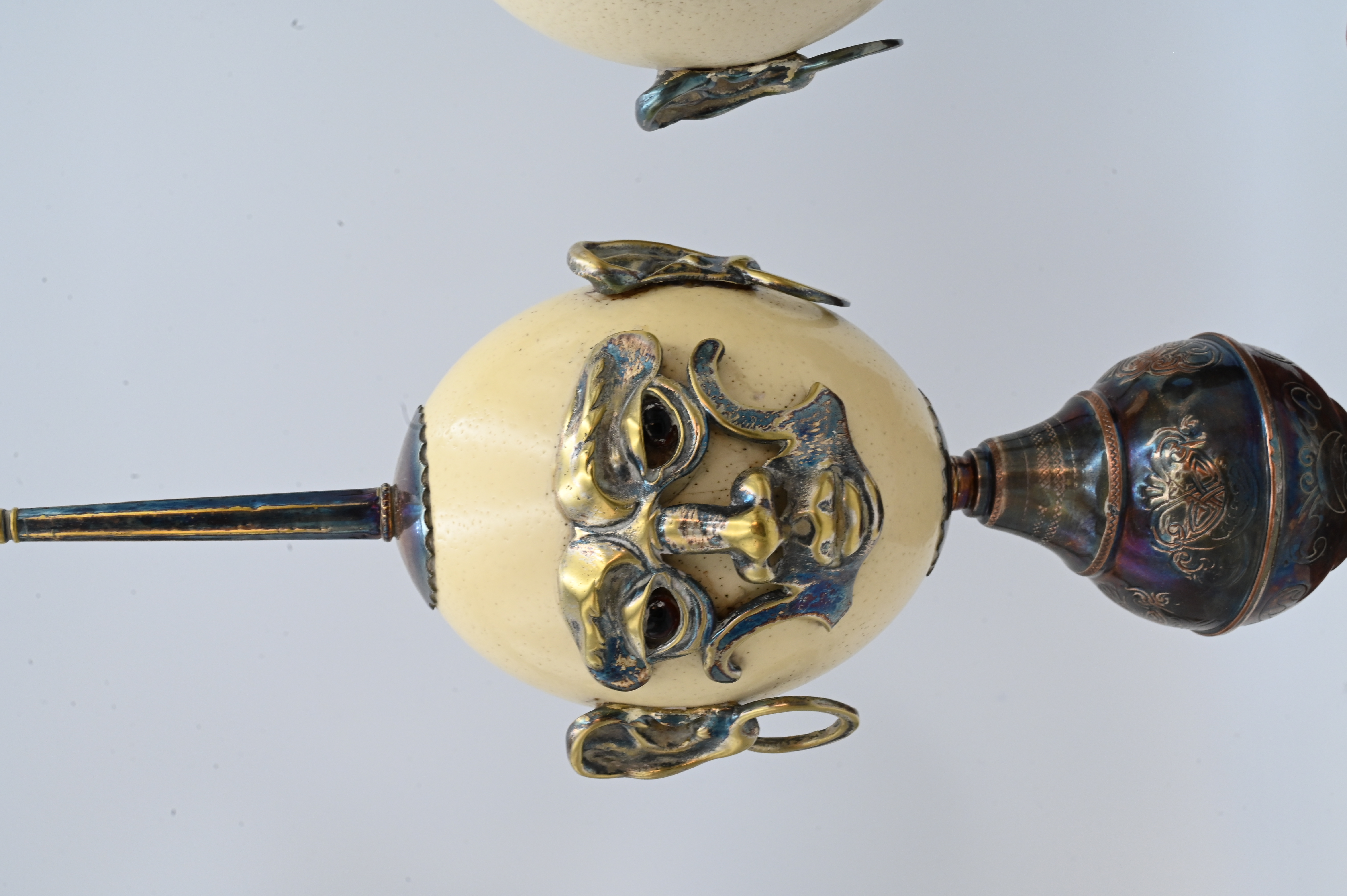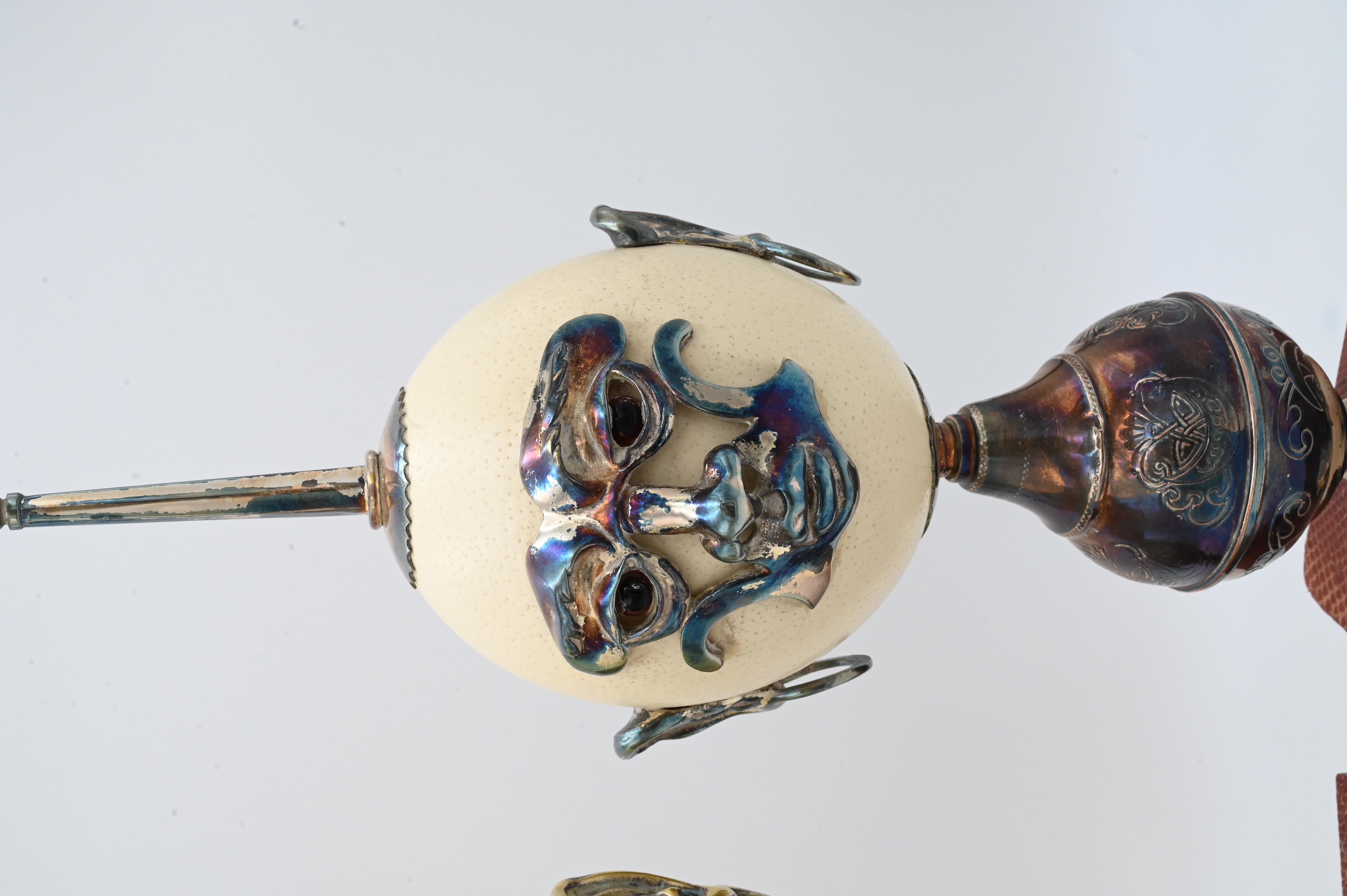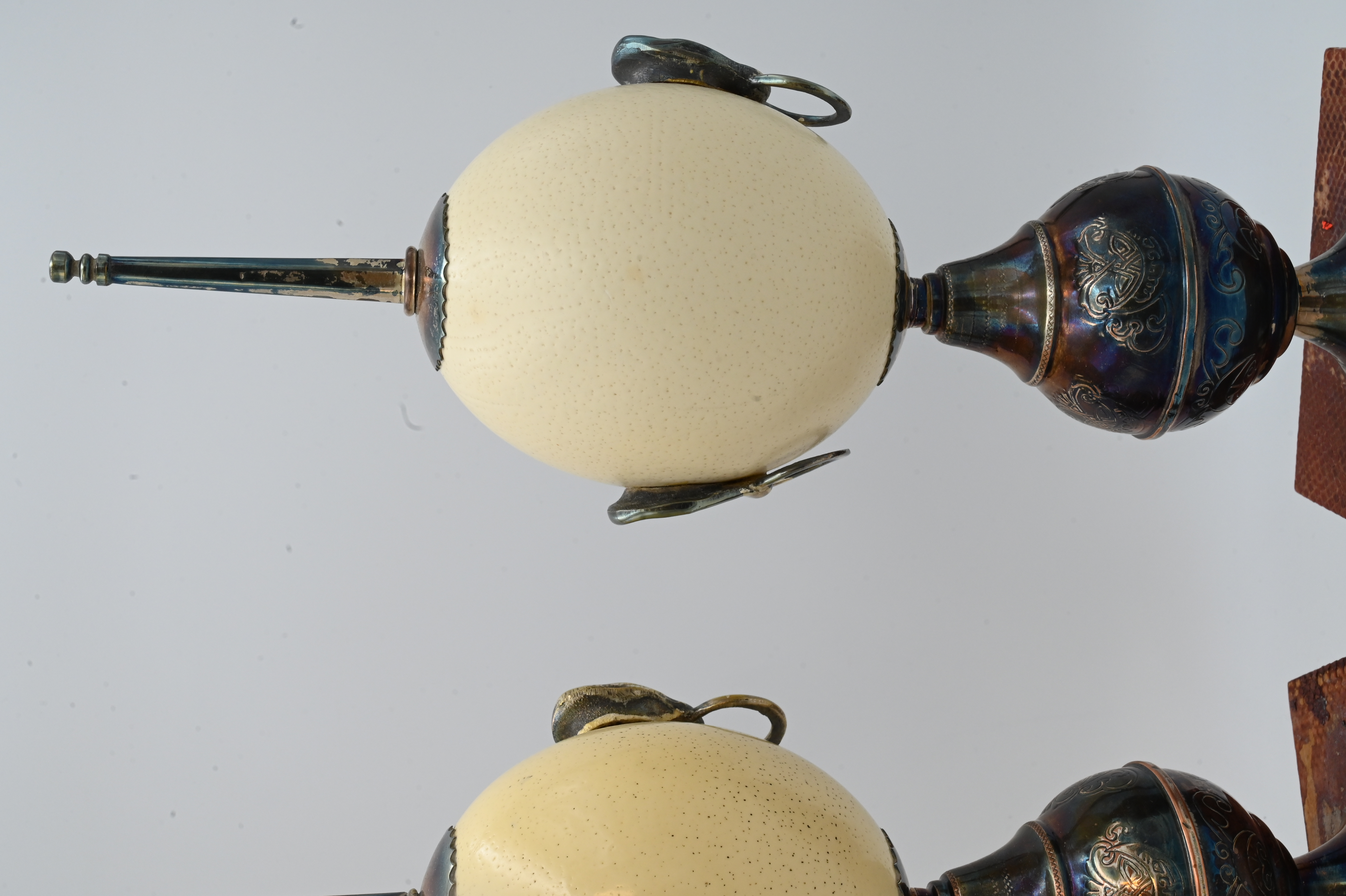 Lot 528: A Pair of Anthony Redmile Metal-Mounted Ostrich Egg Ornaments