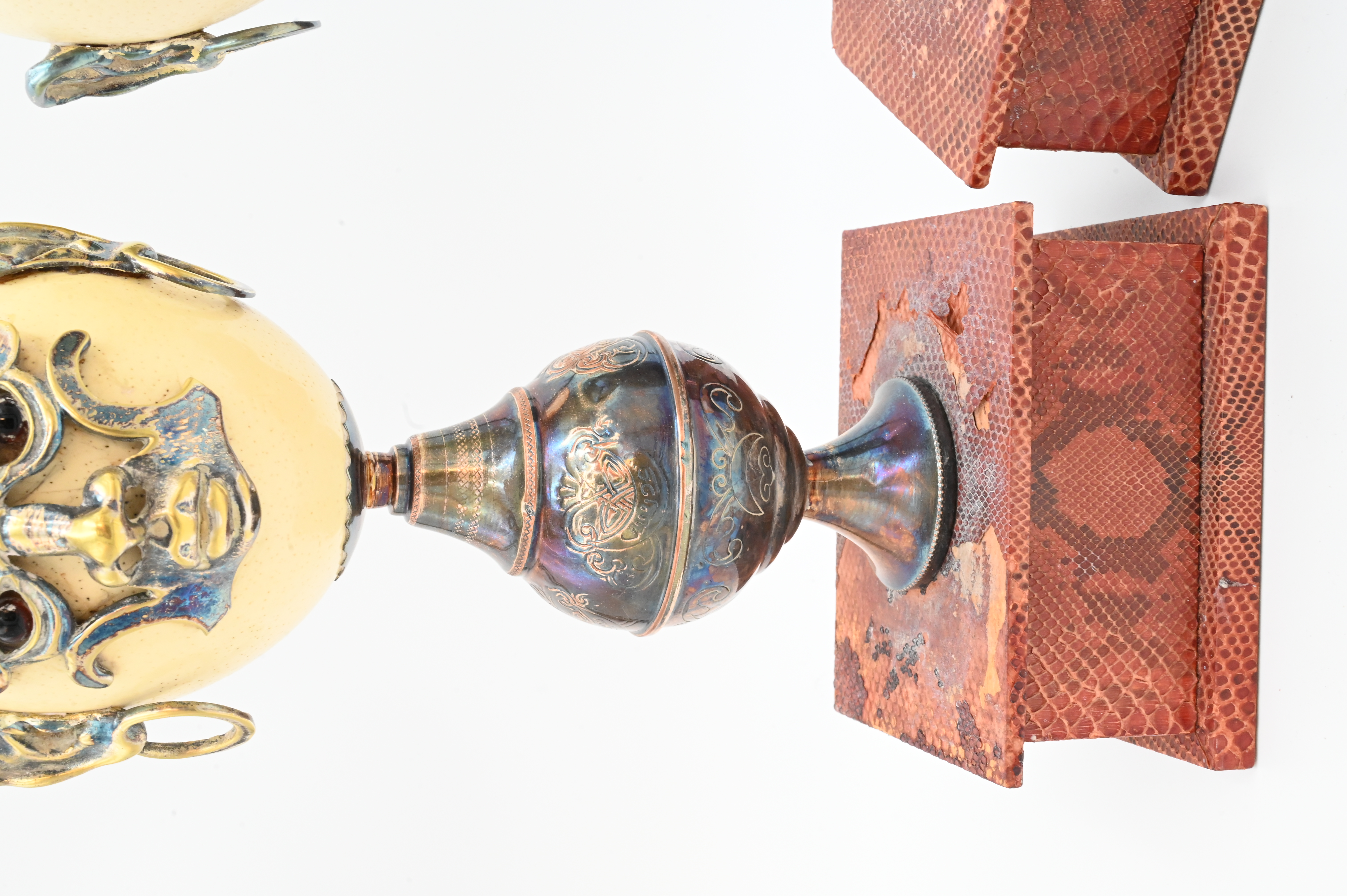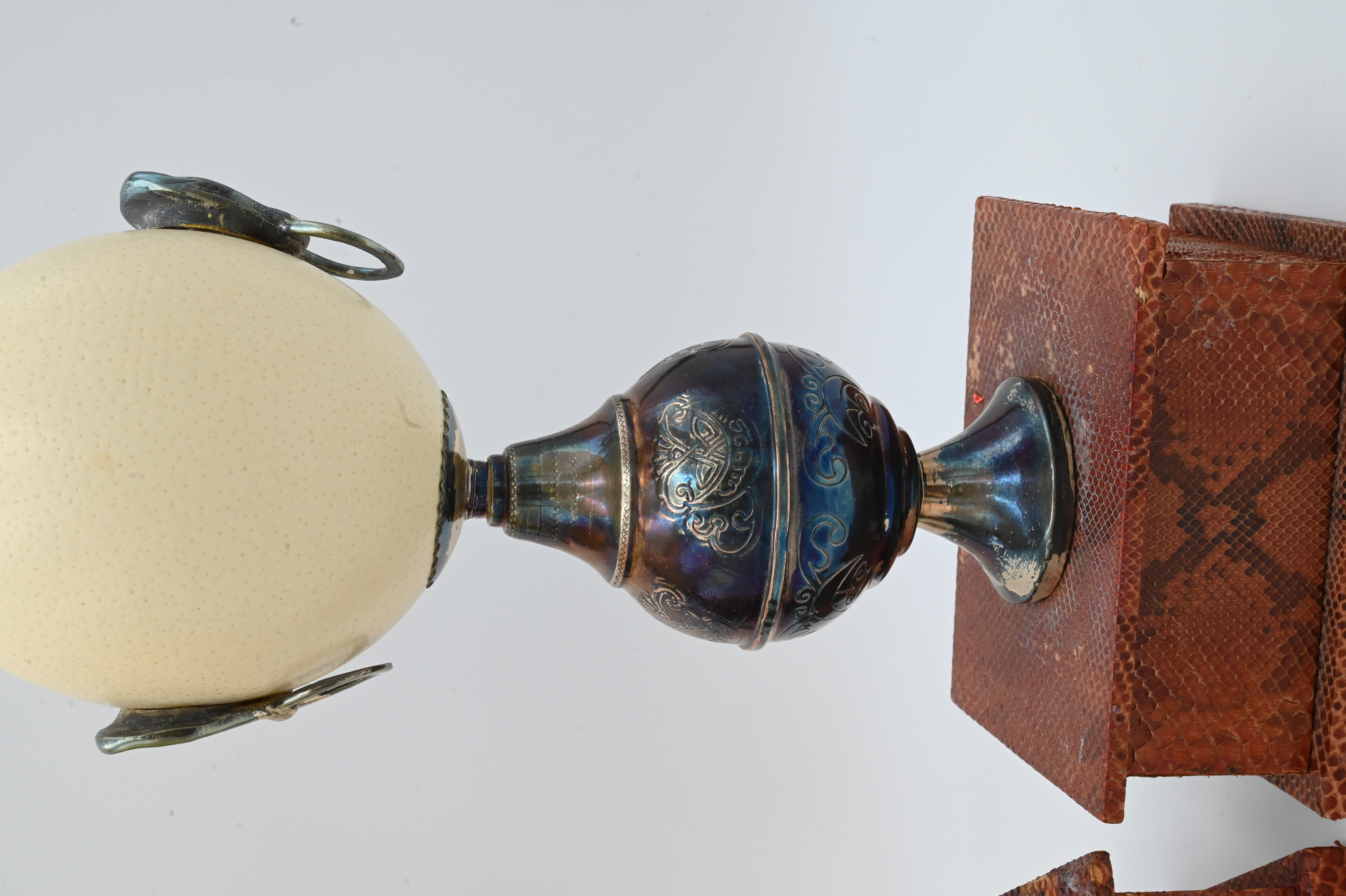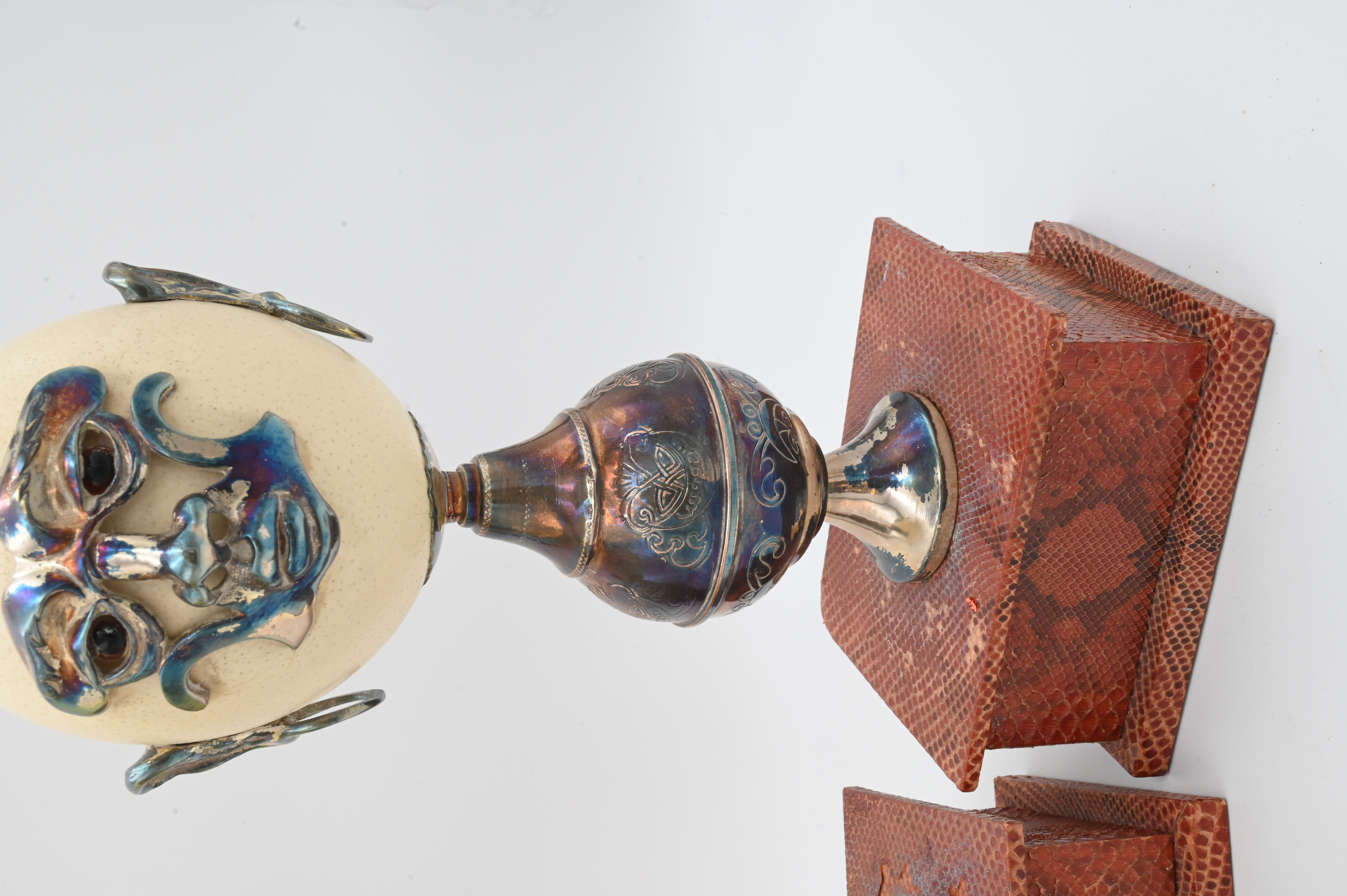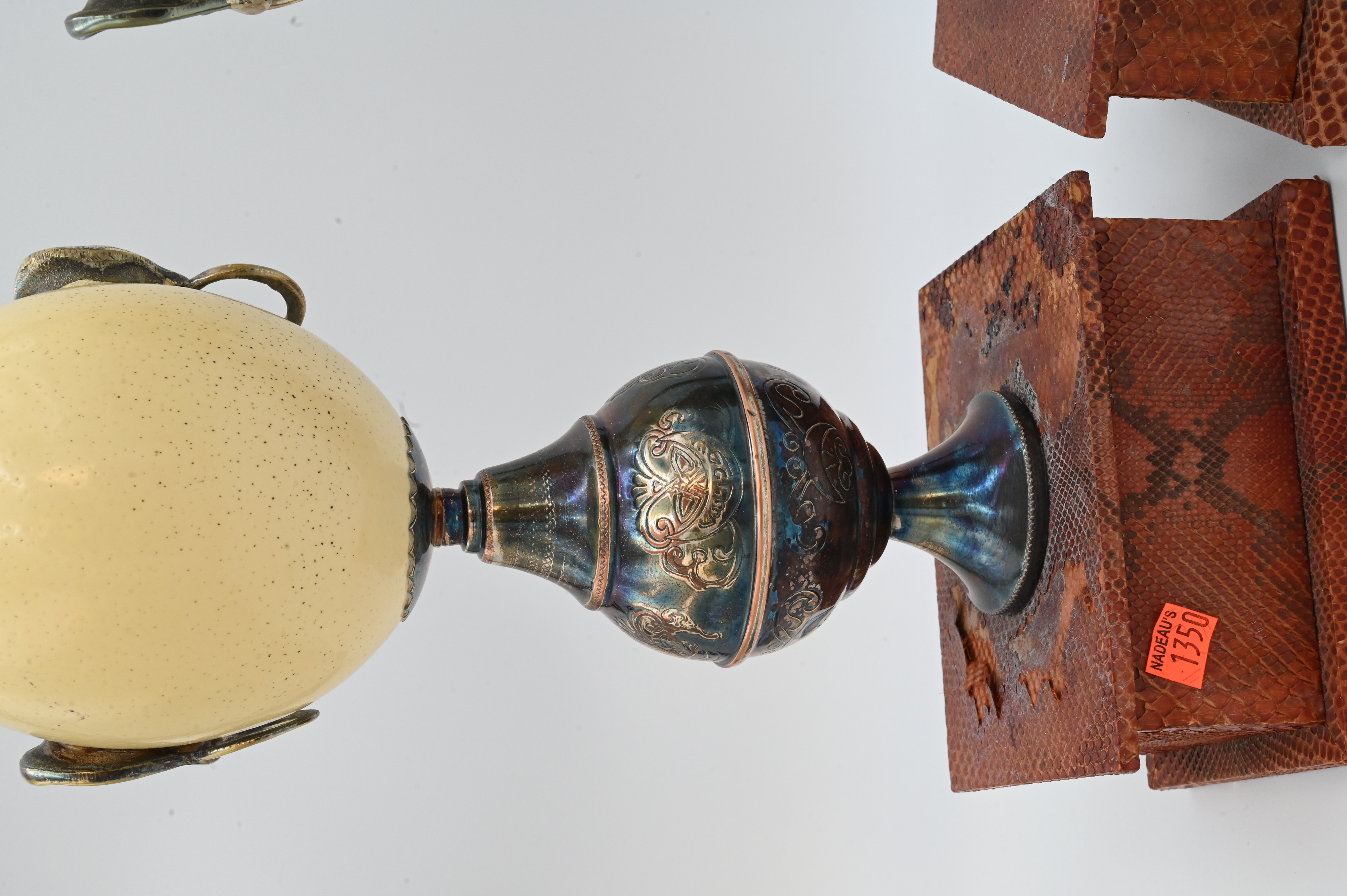 Lot 528: A Pair of Anthony Redmile Metal-Mounted Ostrich Egg Ornaments
