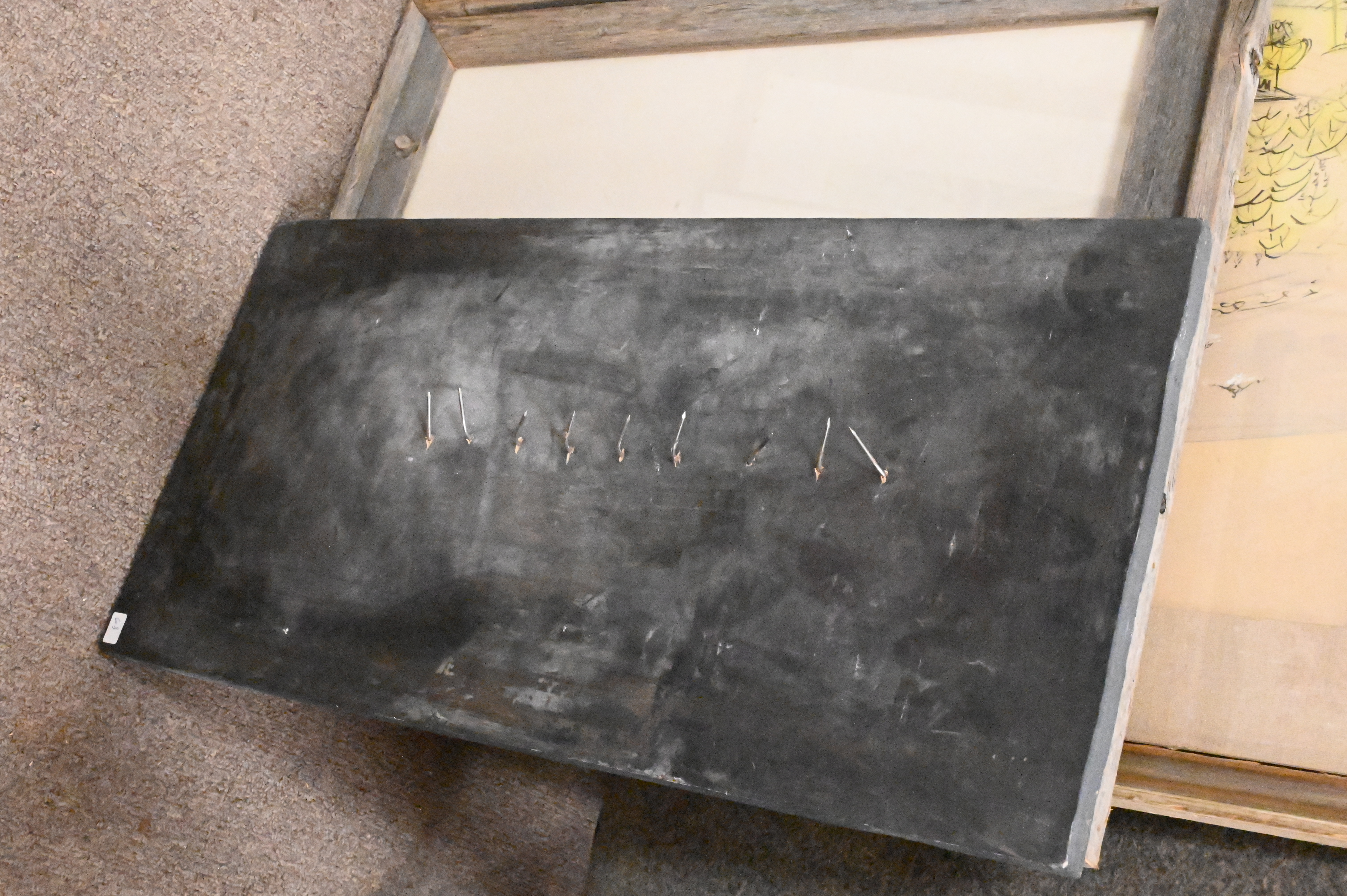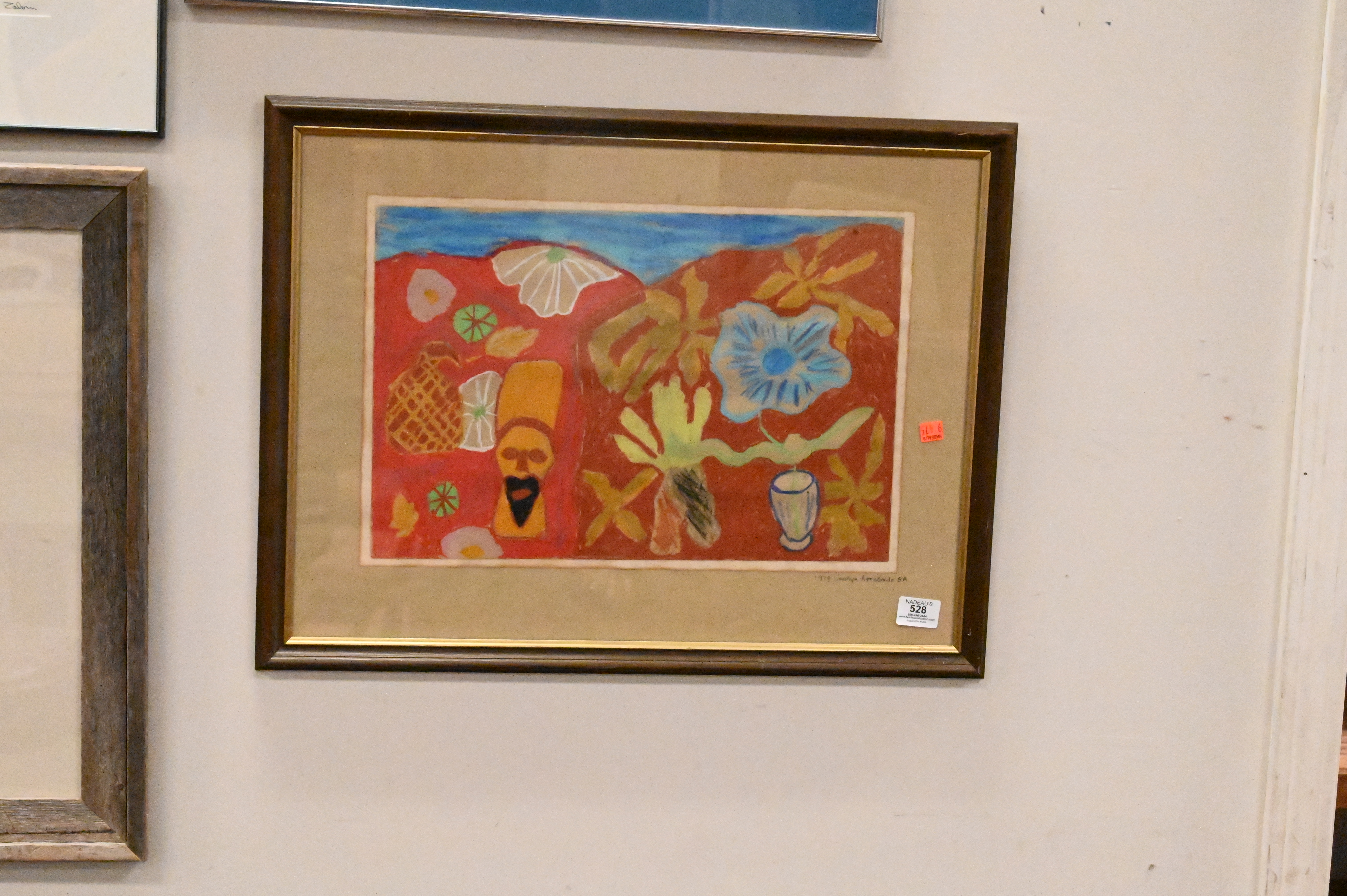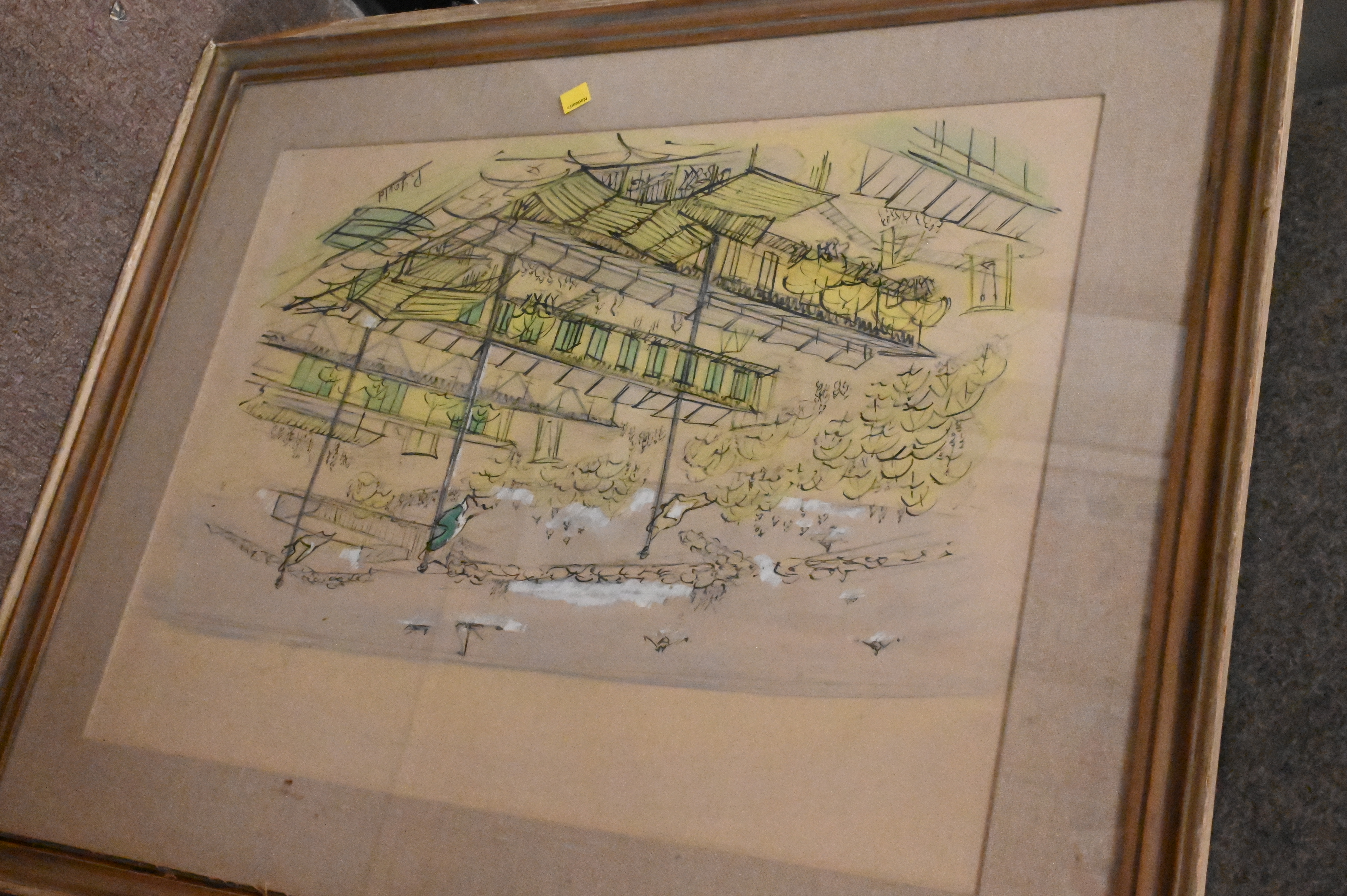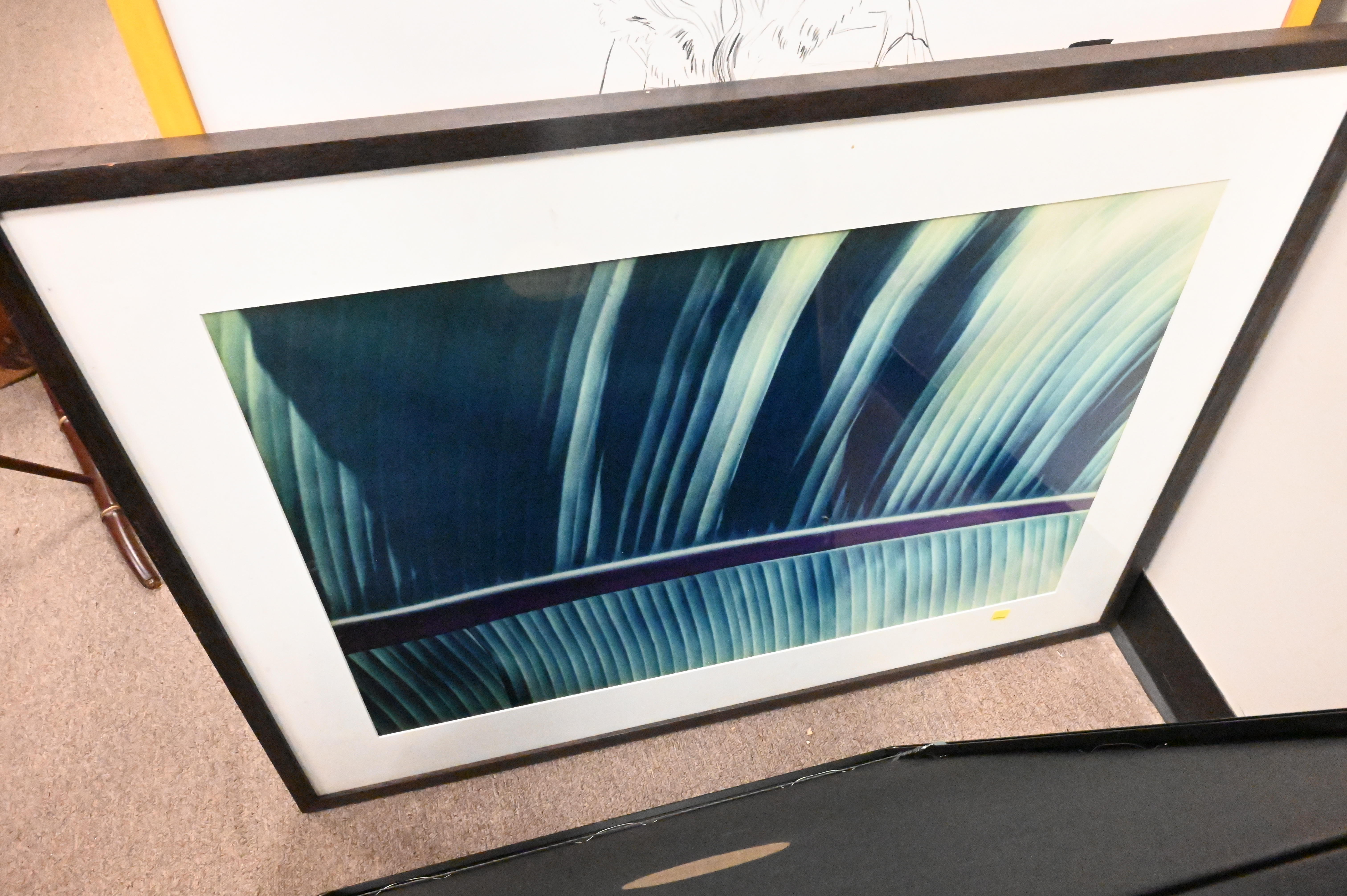 to include vintage cigarette poster, Tarla Kusu poster, Little Red Riding Hood or Snow White, print of a leaf, acrylic on paper of a dog, signed illegibly dated 1992, Joe Eula (American 1925-2004) print signed lower right “Eula”, “Pebbles” (basketball) embossed lithograph artist proof signed lower right, “Caligo Uranus” butterfly print watercolor, two pieces signed illegibly lower right and dated 2002, watercolor of a beach scene signed lower right, etching of an arch EA 1972 signed illegibly lower right, two oil pastels signed Arredondo, etcetera