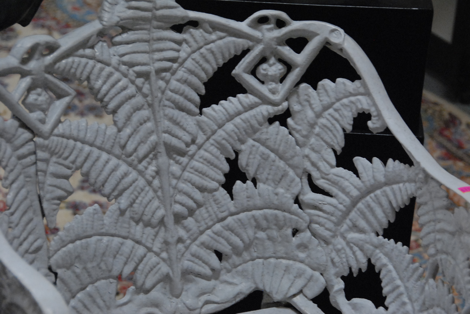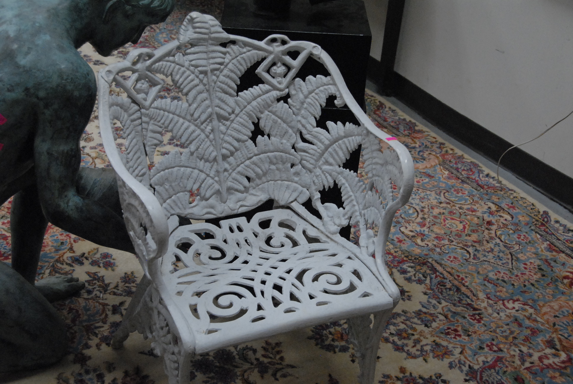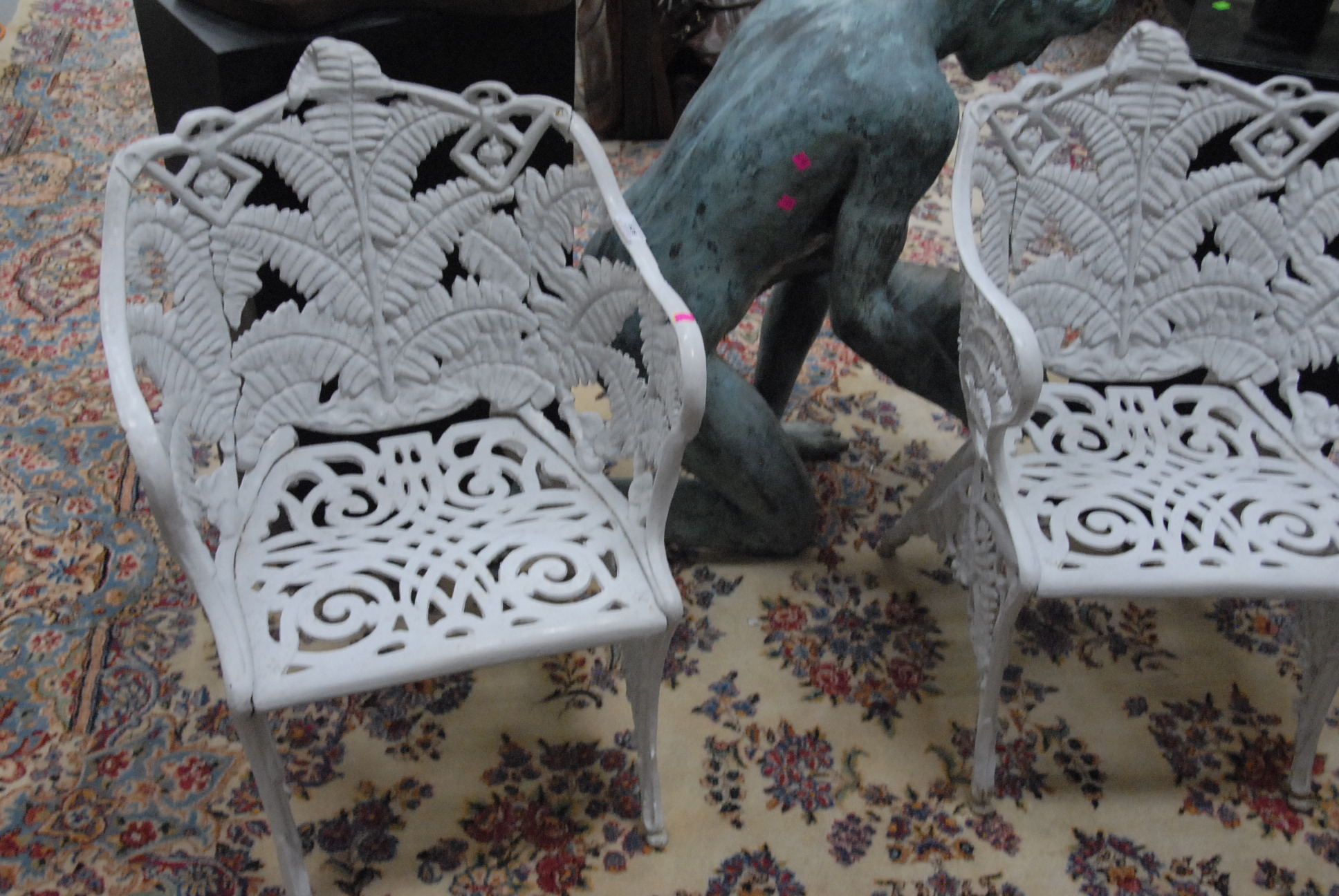Pair of Victorian iron outdoor armchairs with fern design backs.