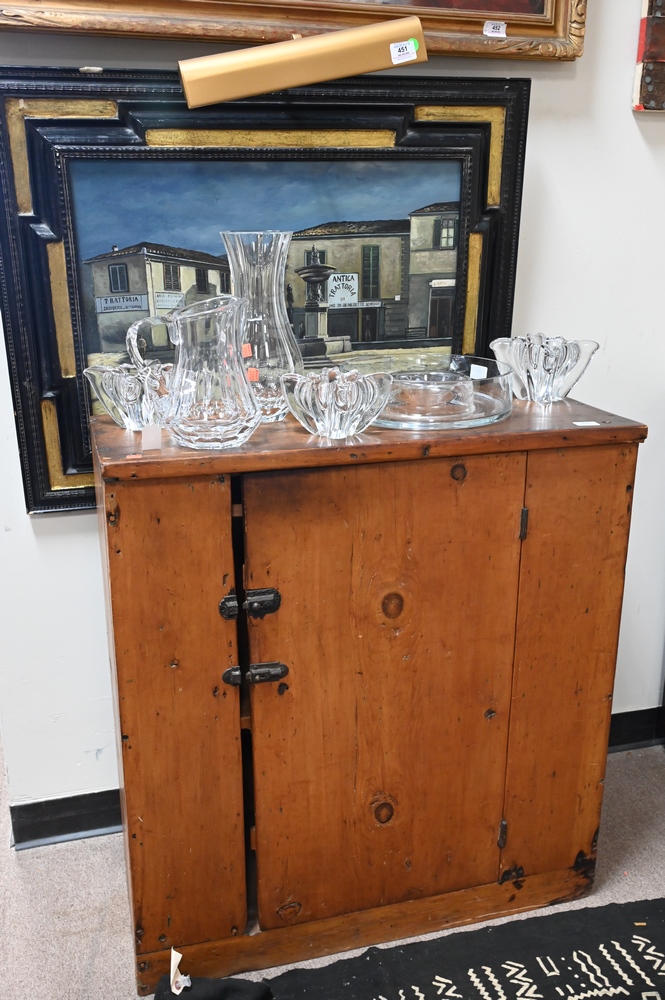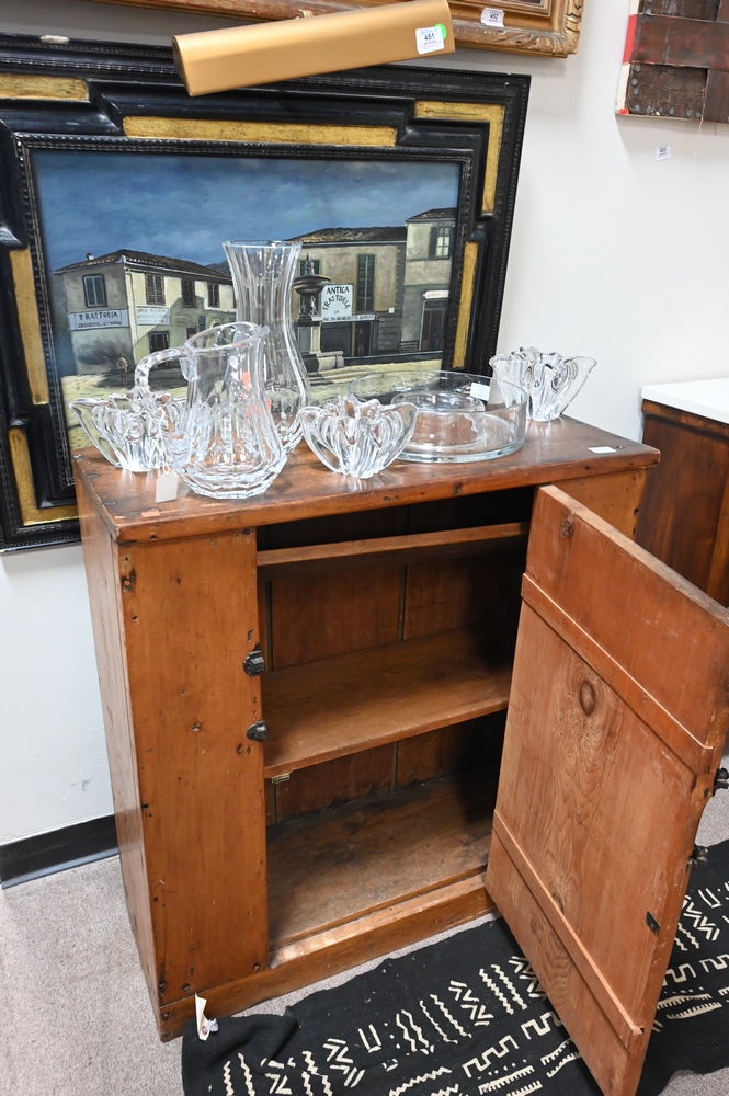 Primitive Pine Cupboard, having one door, height 37 inches, top 13 1/2″ x 34″.