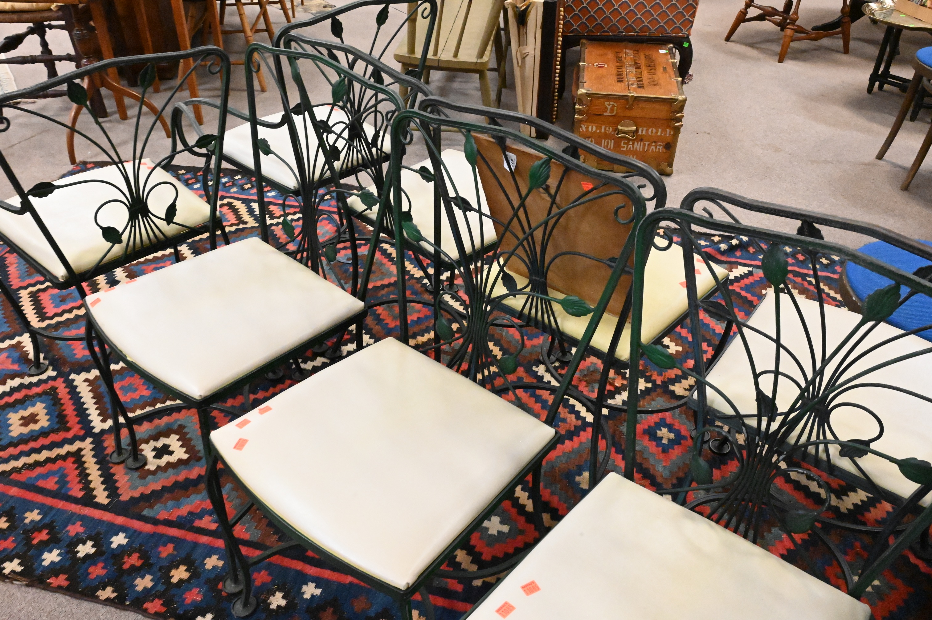 to include eight iron Meadowcraft chairs along with a chair and ottoman