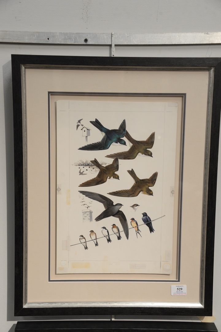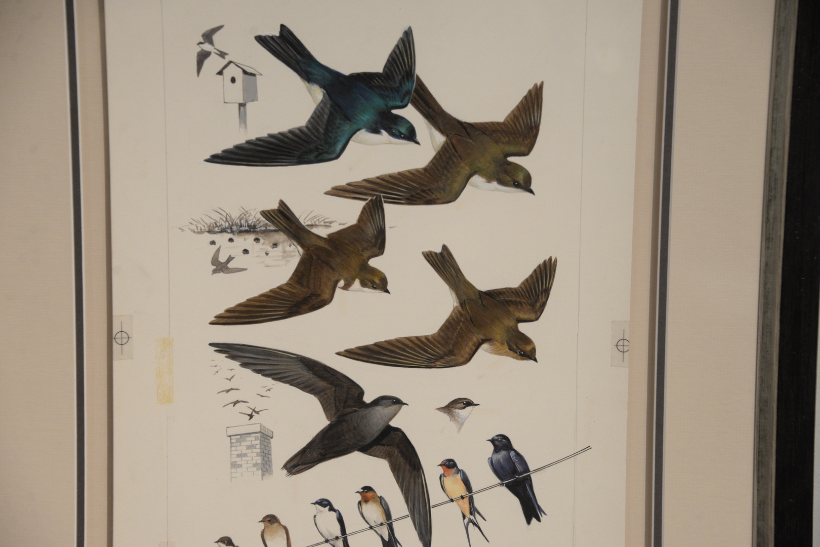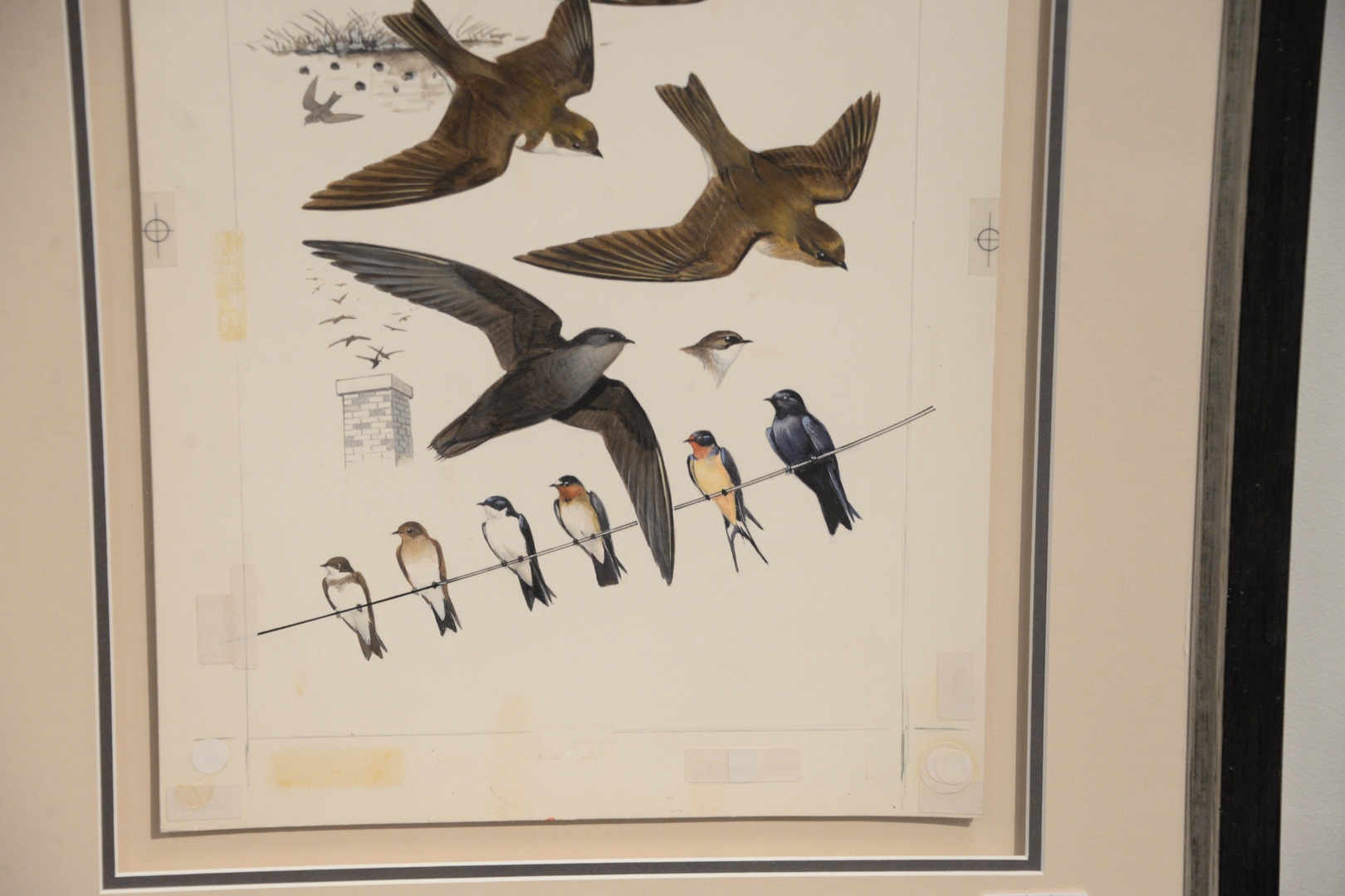 Lot 529: Roger Tory Peters American, 1908 – 1996 Swallows and Swifts gouache, watercolor, and pencil on board unsigned board: 17 x 11 1/2