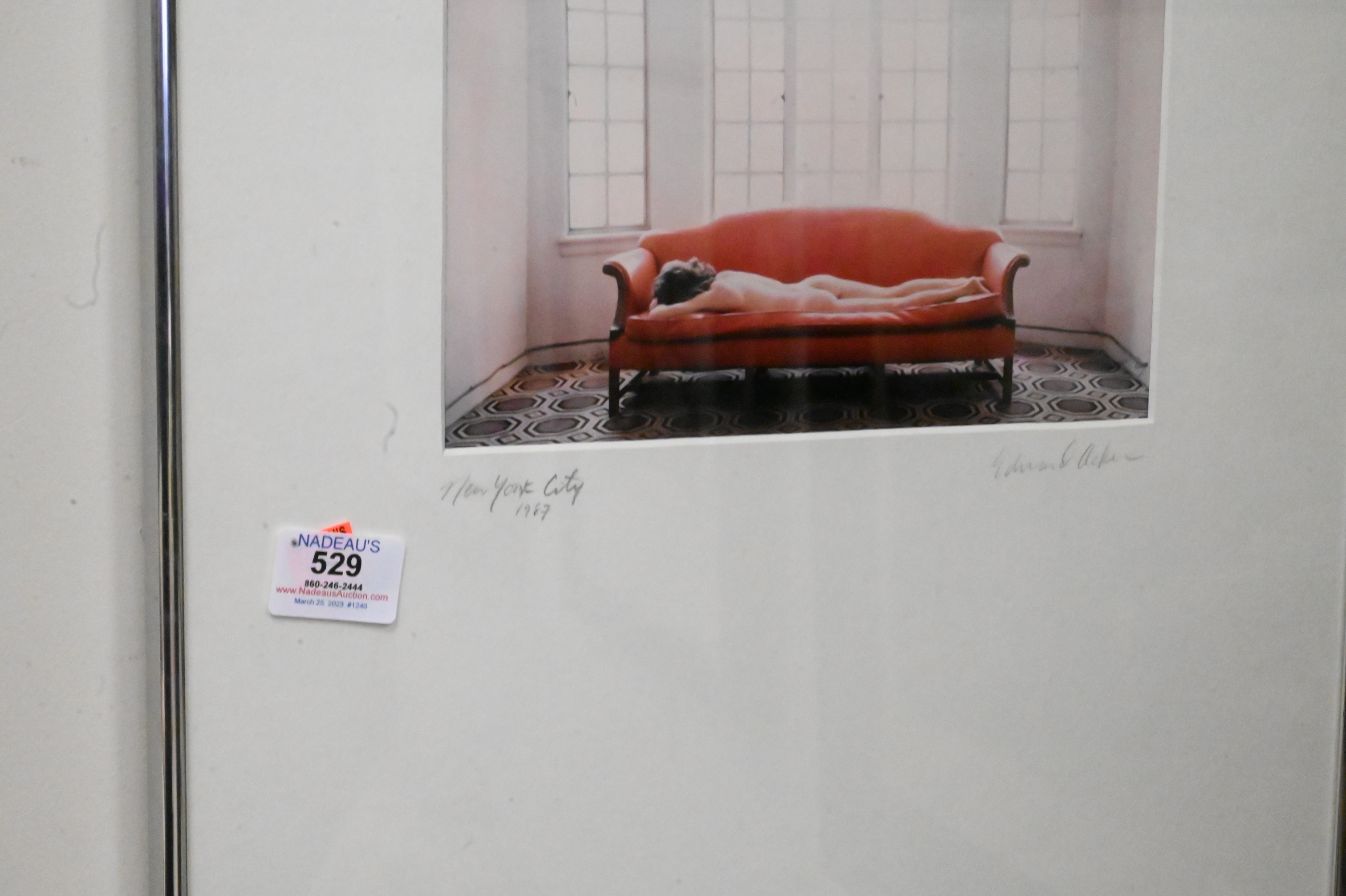 Six Piece Framed Art Lot, to include Linda Butler (American, b. 1947), “Looking at the Window”, silver print/photograph, signed and numbered 13/75 lower right; Edward Acker photography “New York City, 1987″, signed and dated in matting; a photograph of a hotdog, signed illegibly in matting, largest 18″ x 14 1/4″; along with three Linda Butler photography, additional unframed, on signed bottom right, 14 1/2″ x 18 1/4”.